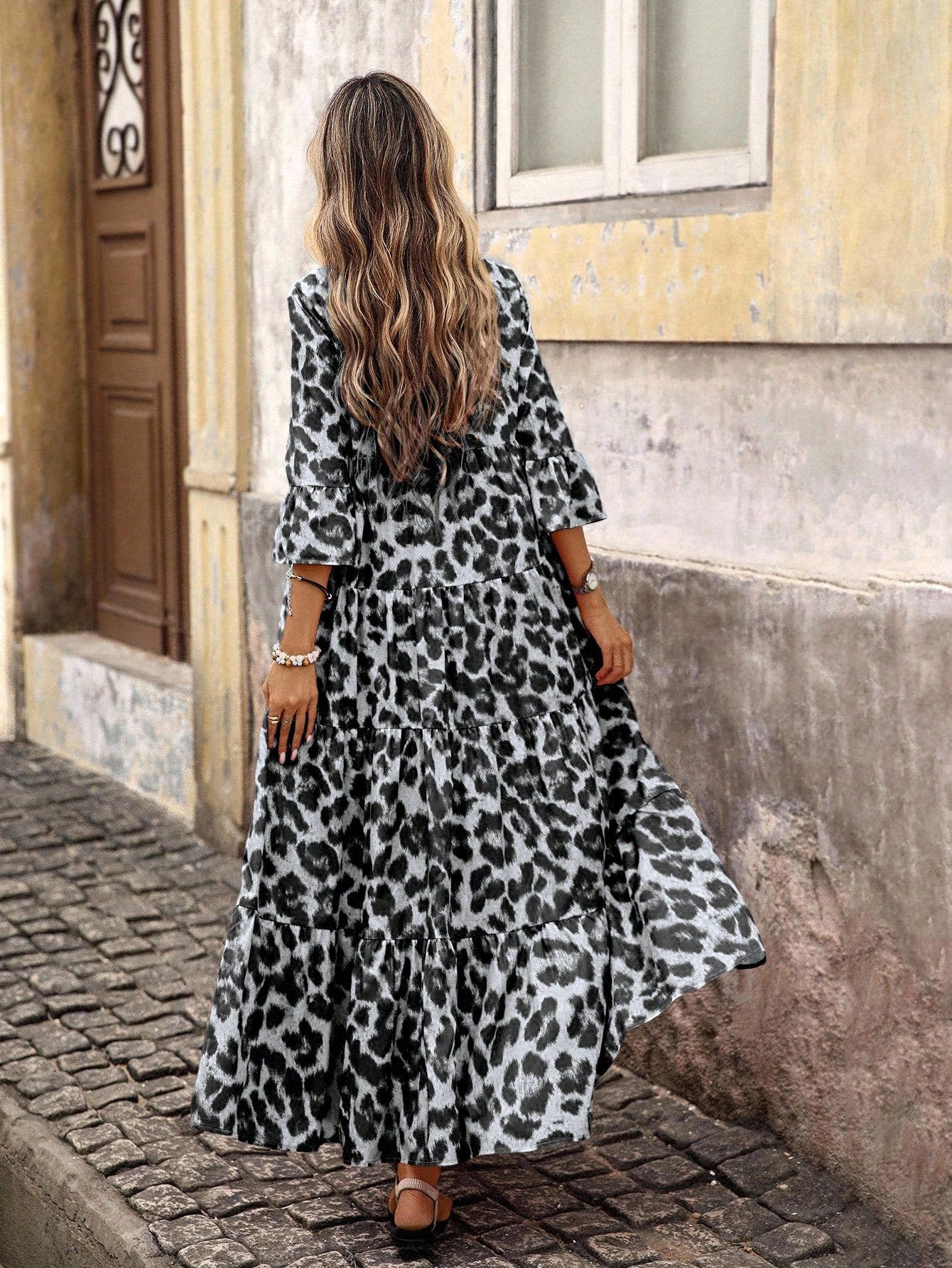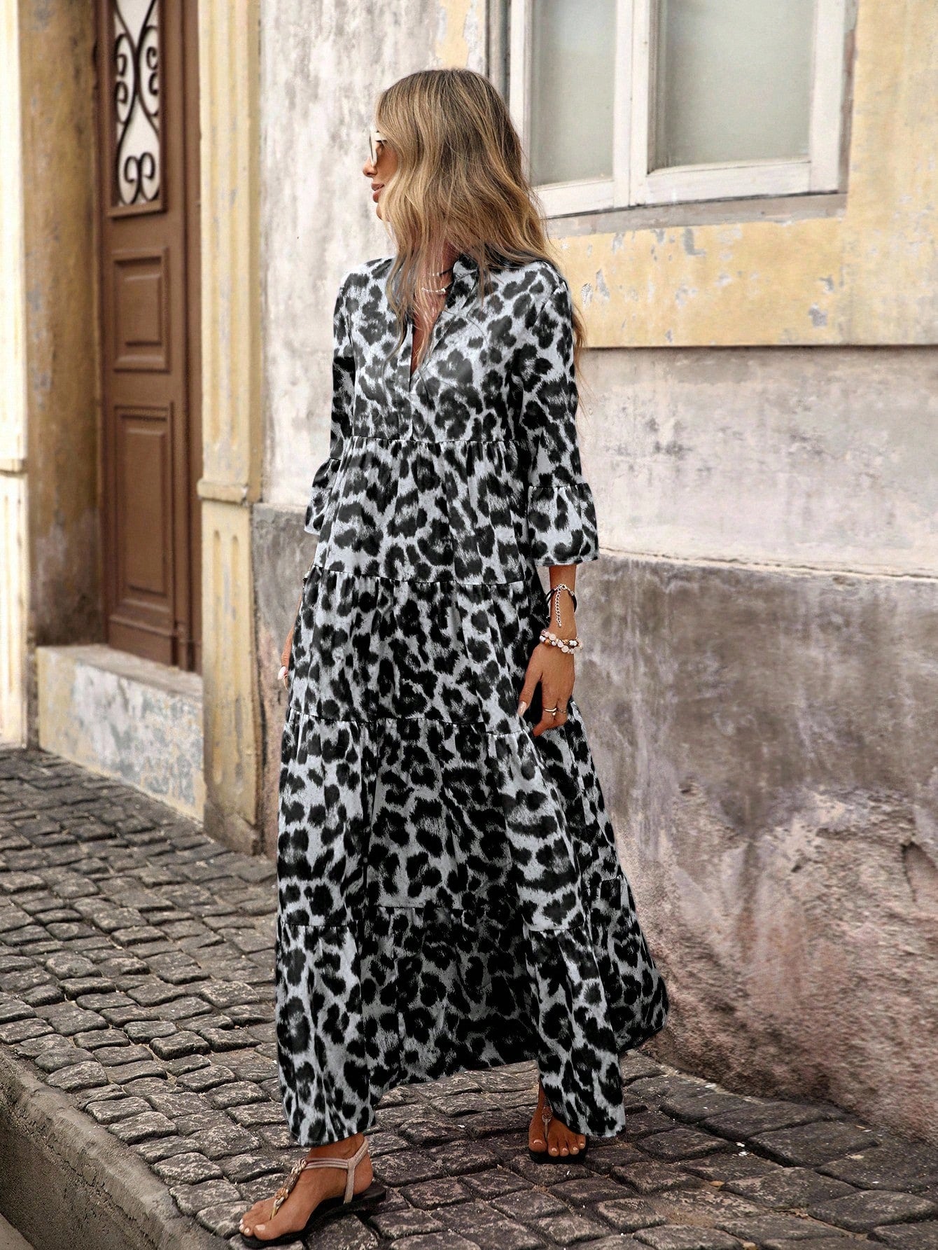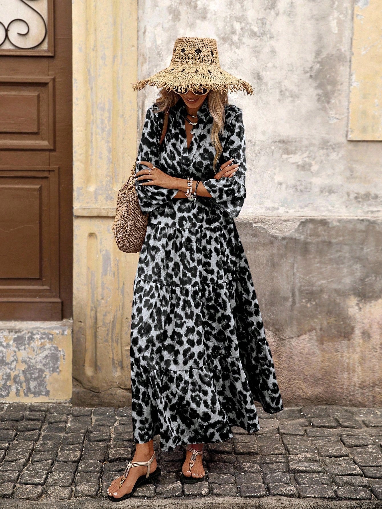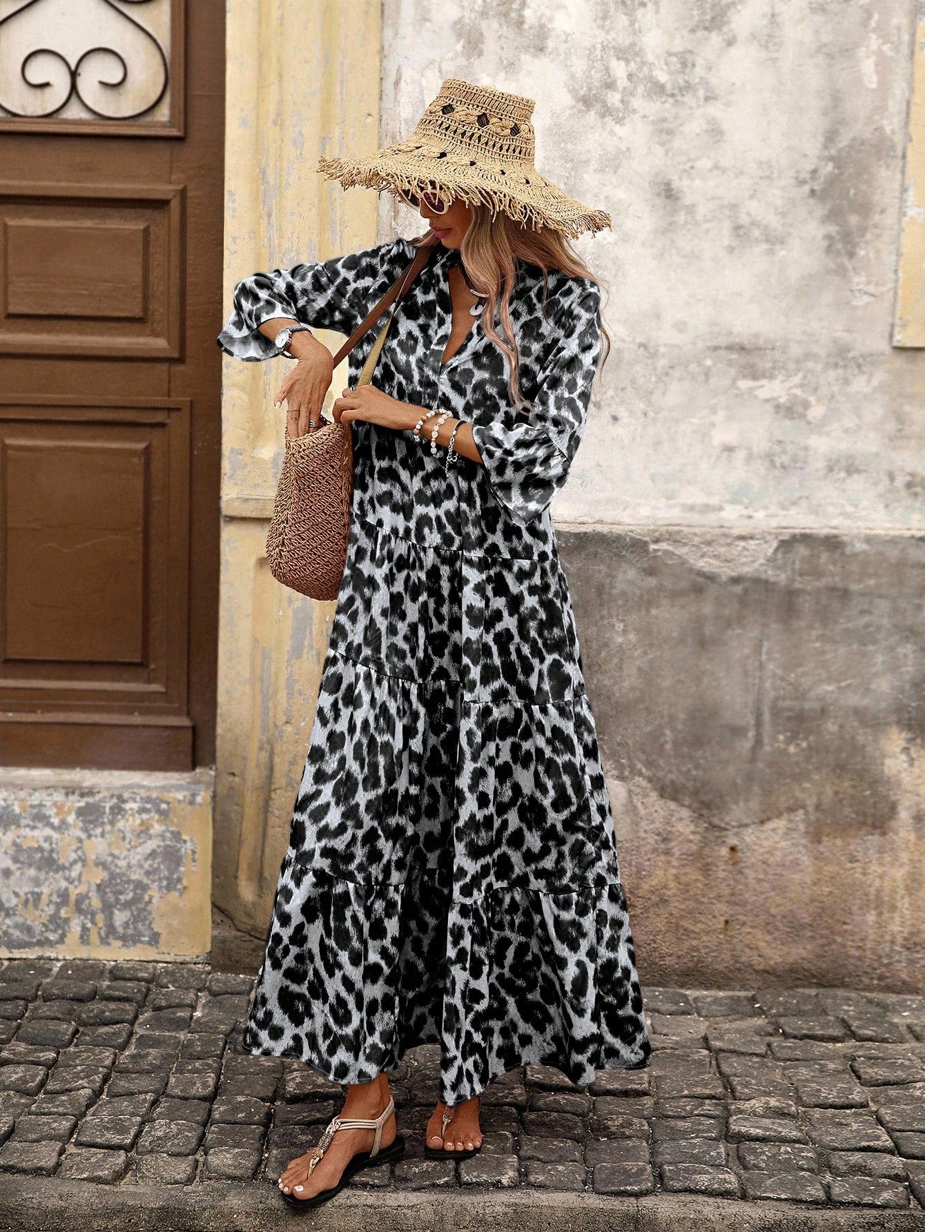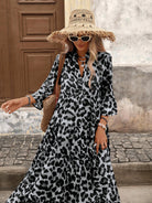 Brillora Woven Print Short Sleeve Long Dress For Women,Bohemian Clothes Vacation Dress