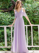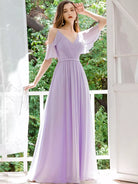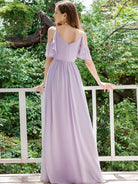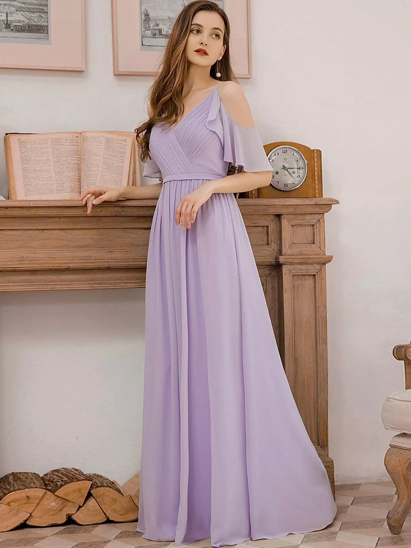 Cold Shoulder Pleated Detail Chiffon Prom Dress