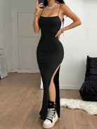 Coolane Women's Summer Streetwear Concert Date Night Vacation Outfits Y2K Woven Tape Split Long Dress