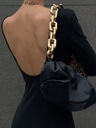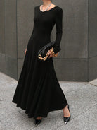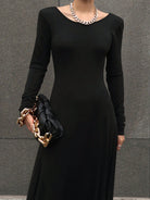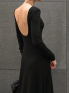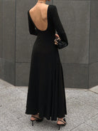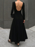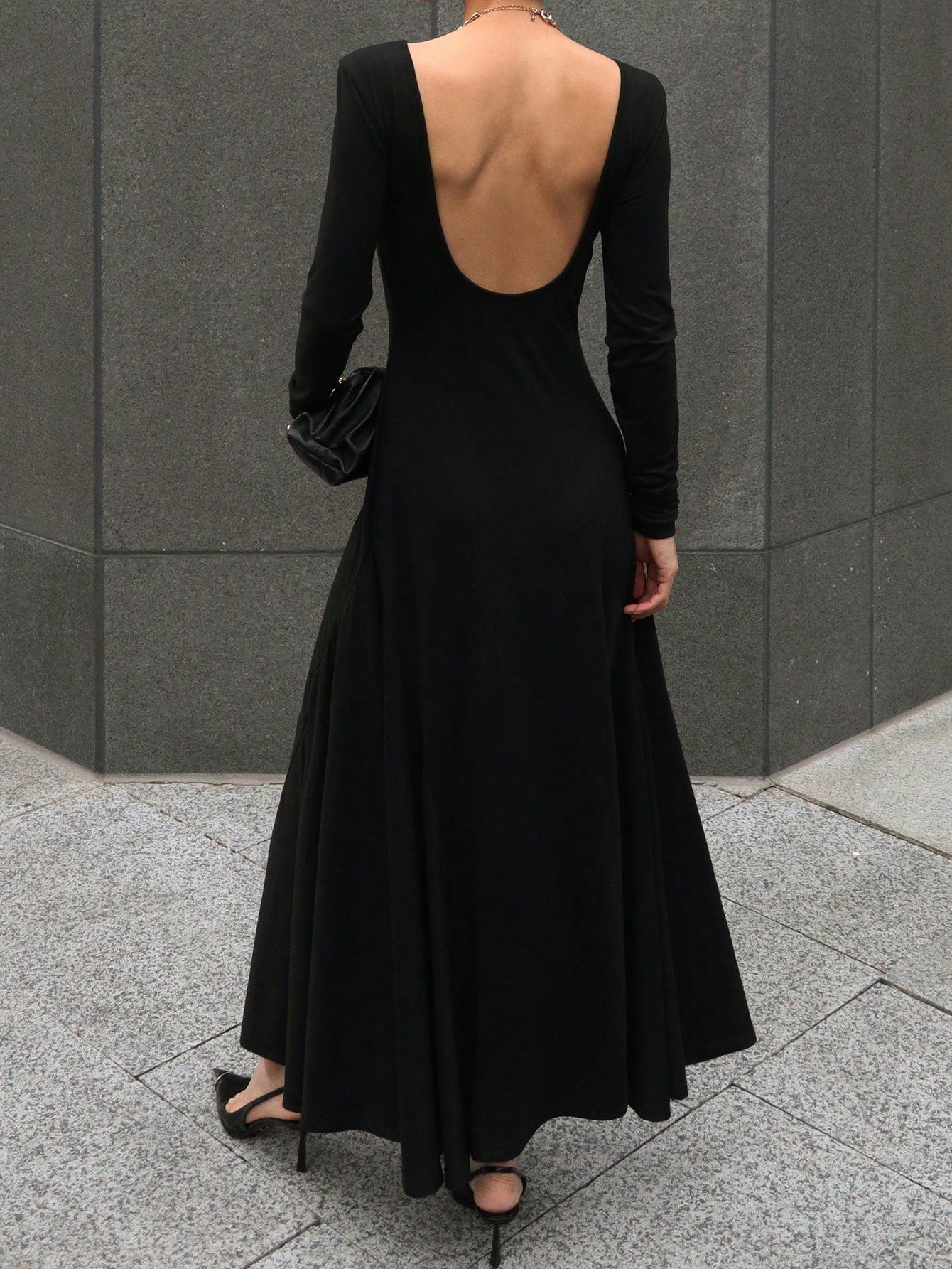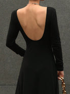 DAZY Black Long Sleeve Waisted A-Line Backless Dress For Women , Open Back Dress,Fall Clothes