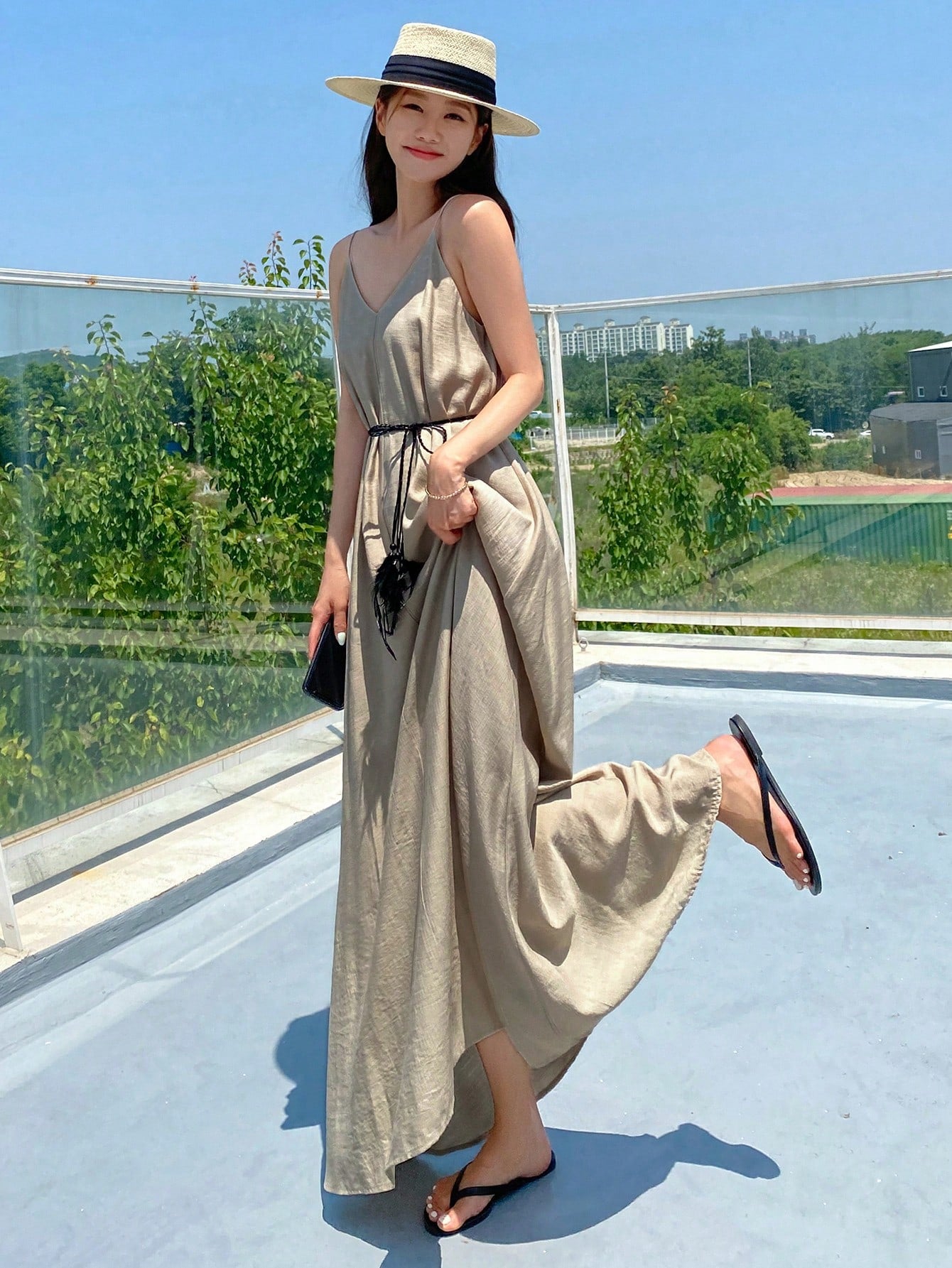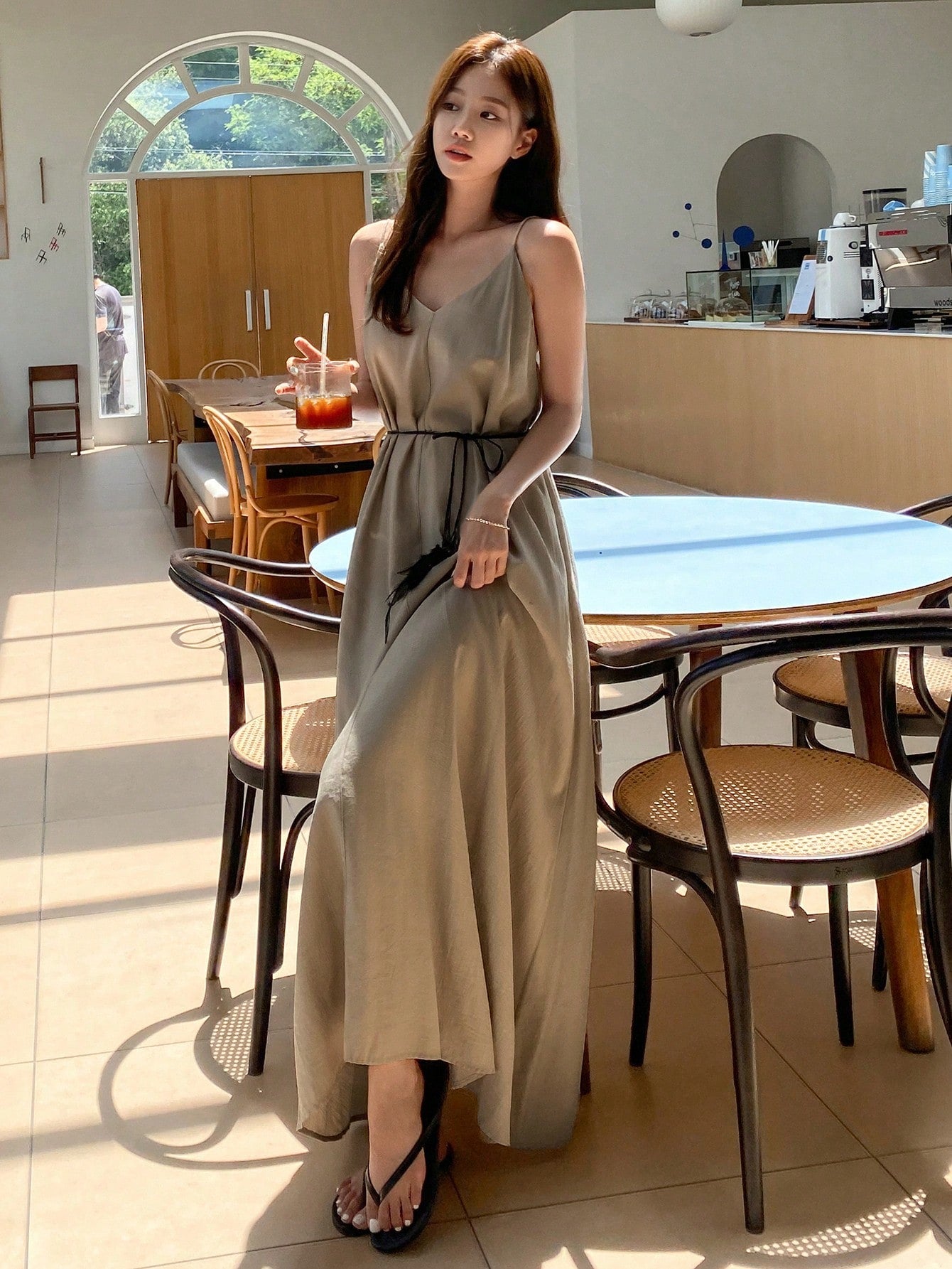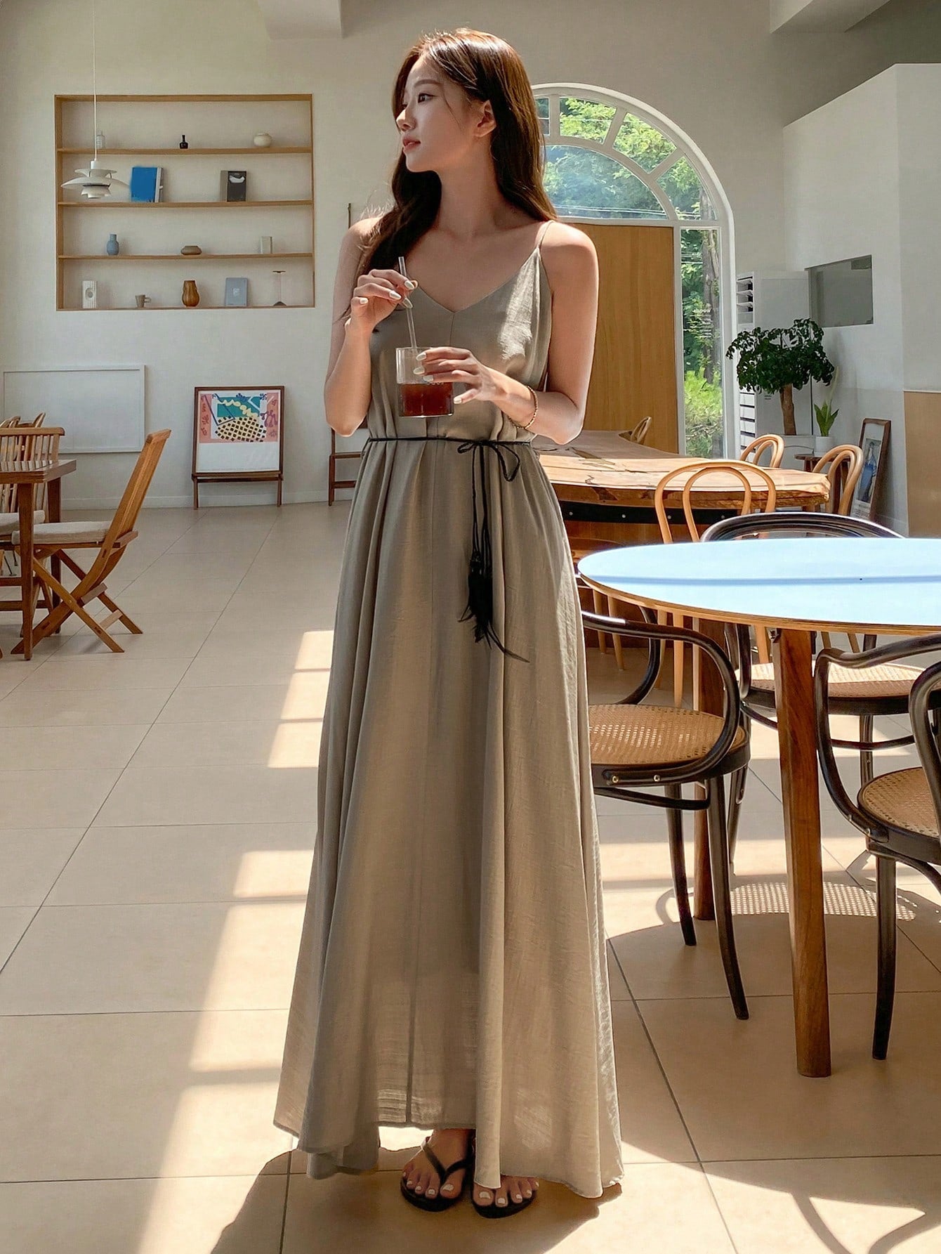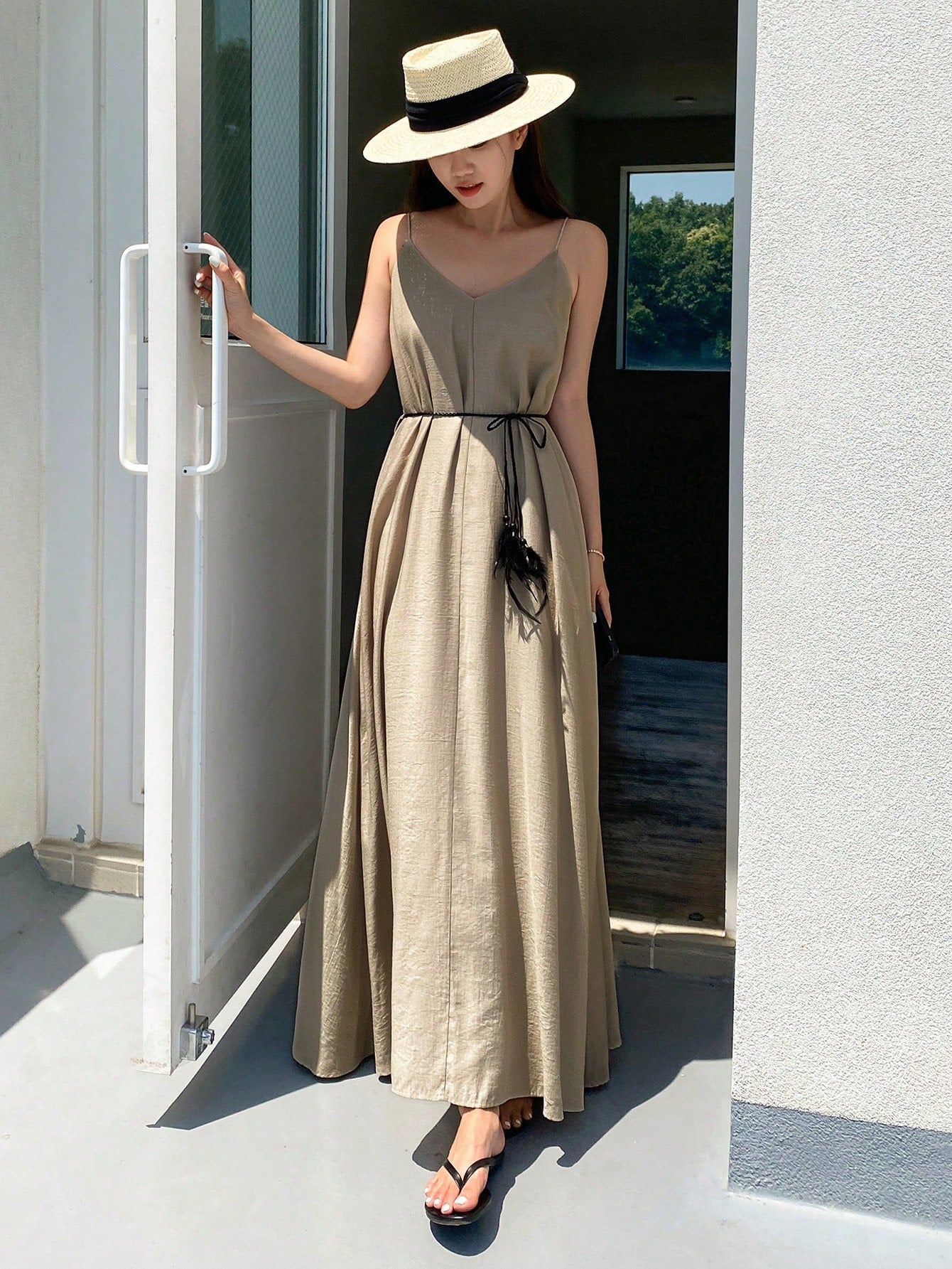 DAZY Solid Belted Cami Dress Sundress,Casual Women Dresses