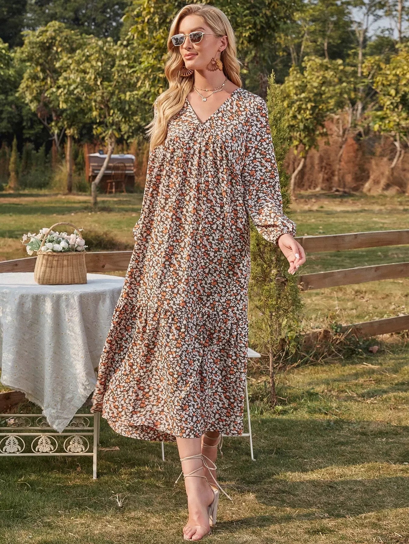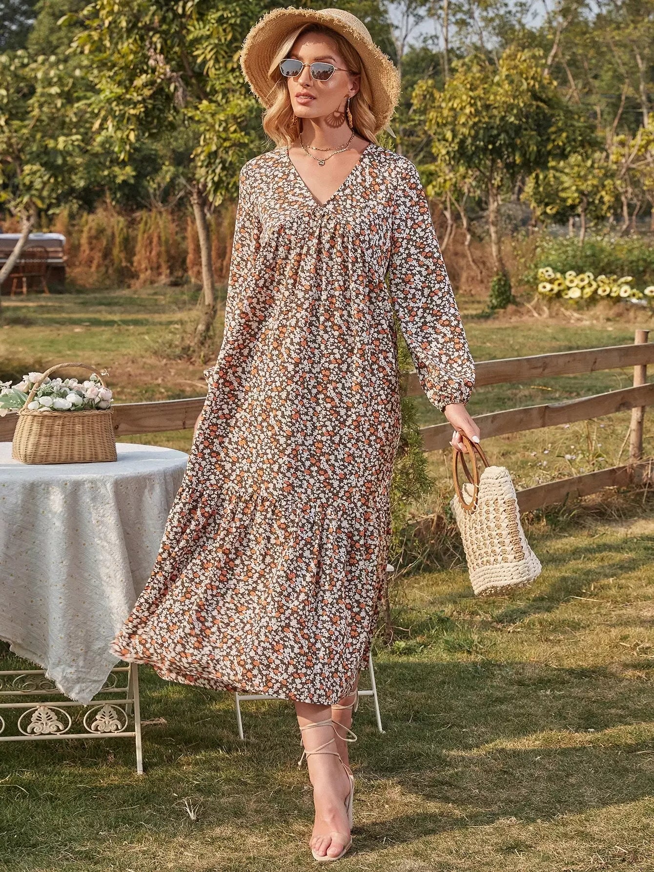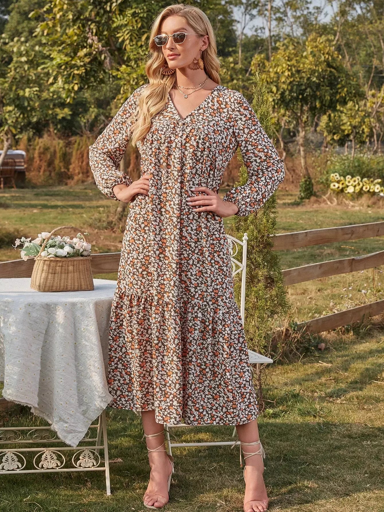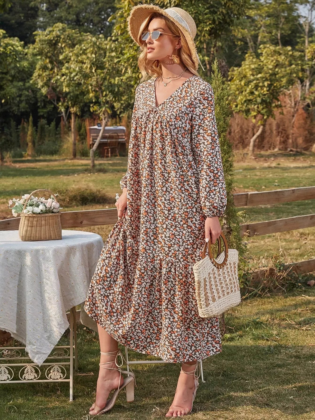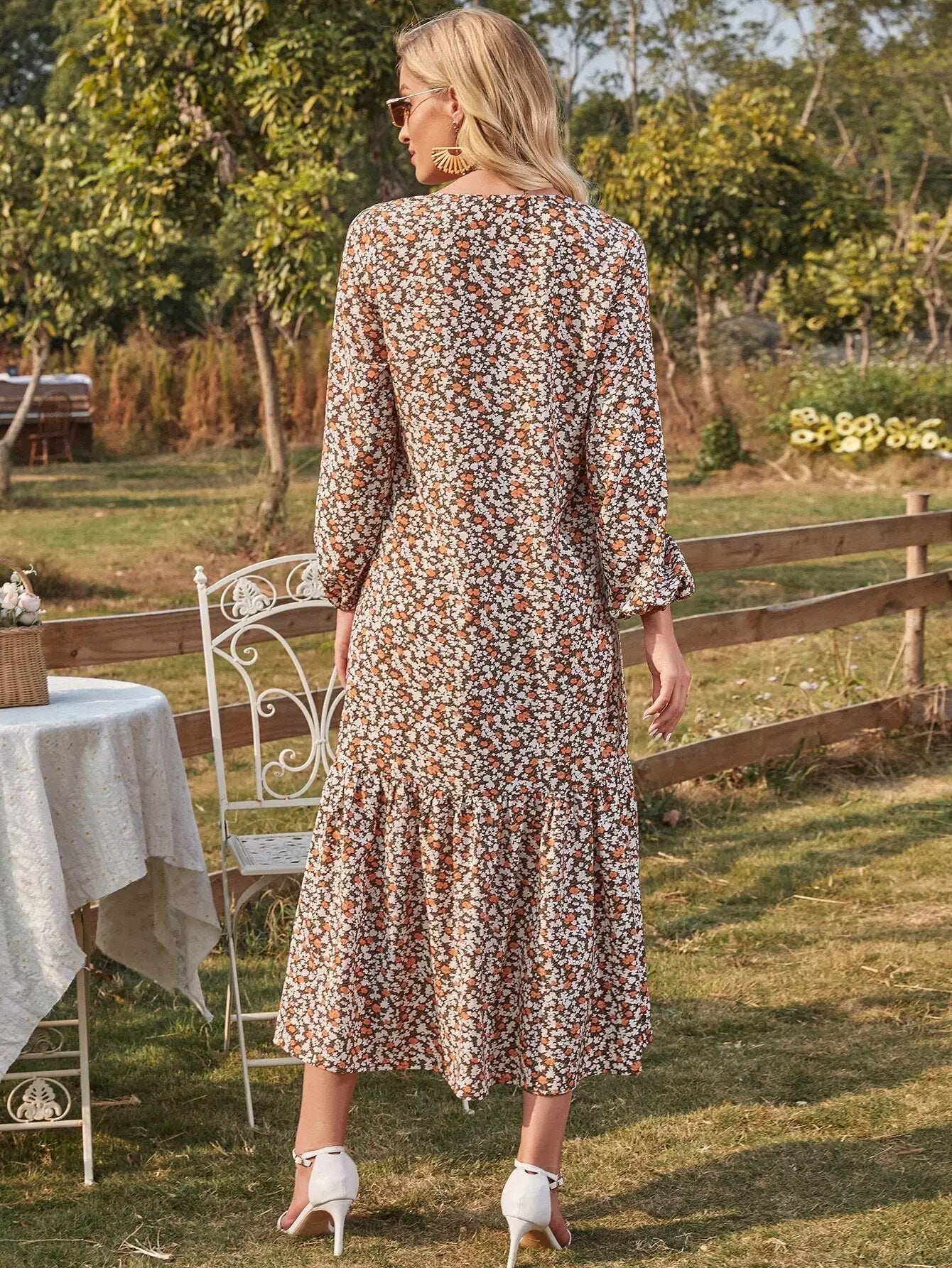 Ditsy Floral Bishop Sleeve Ruffle Hem Dress