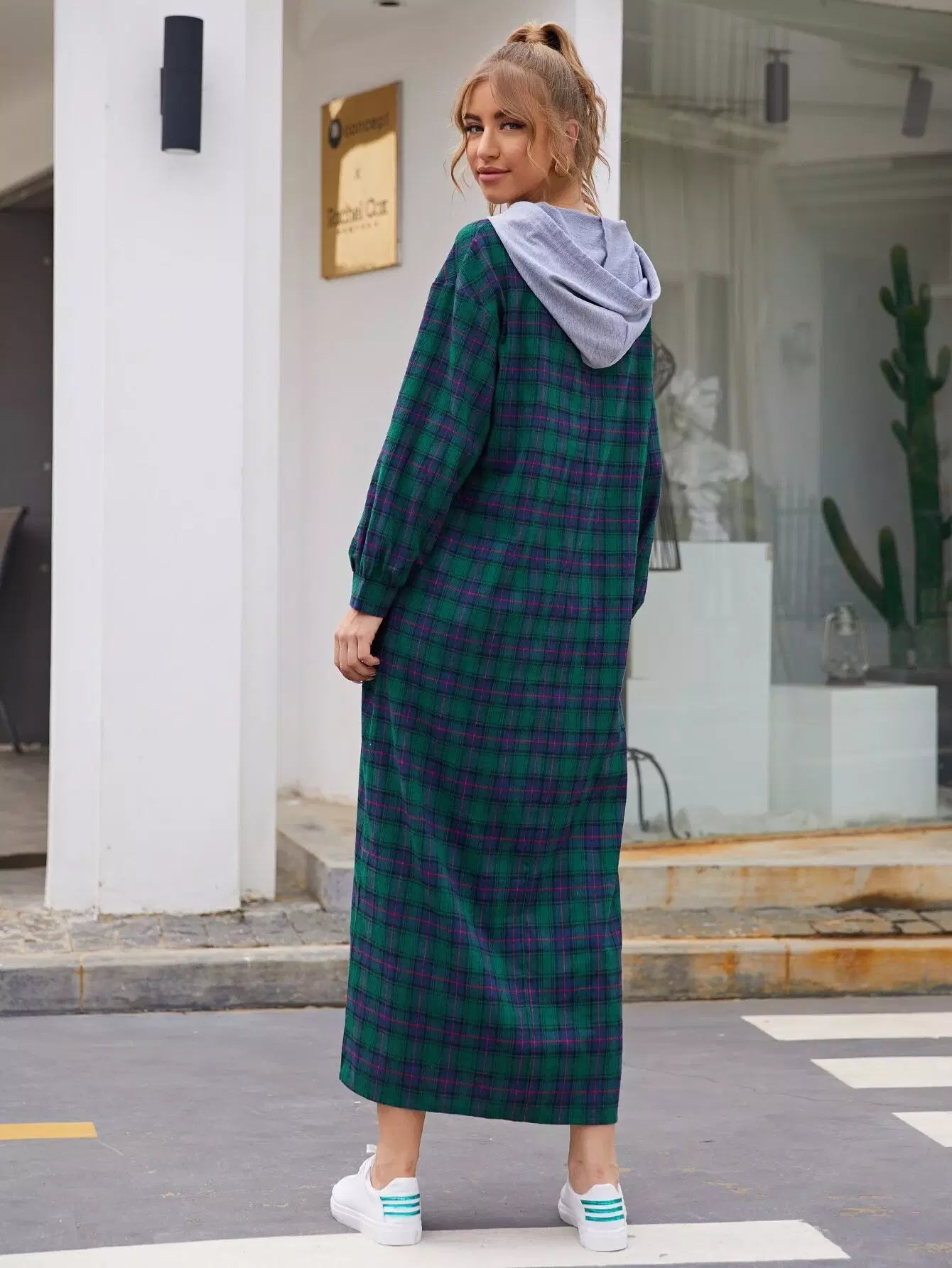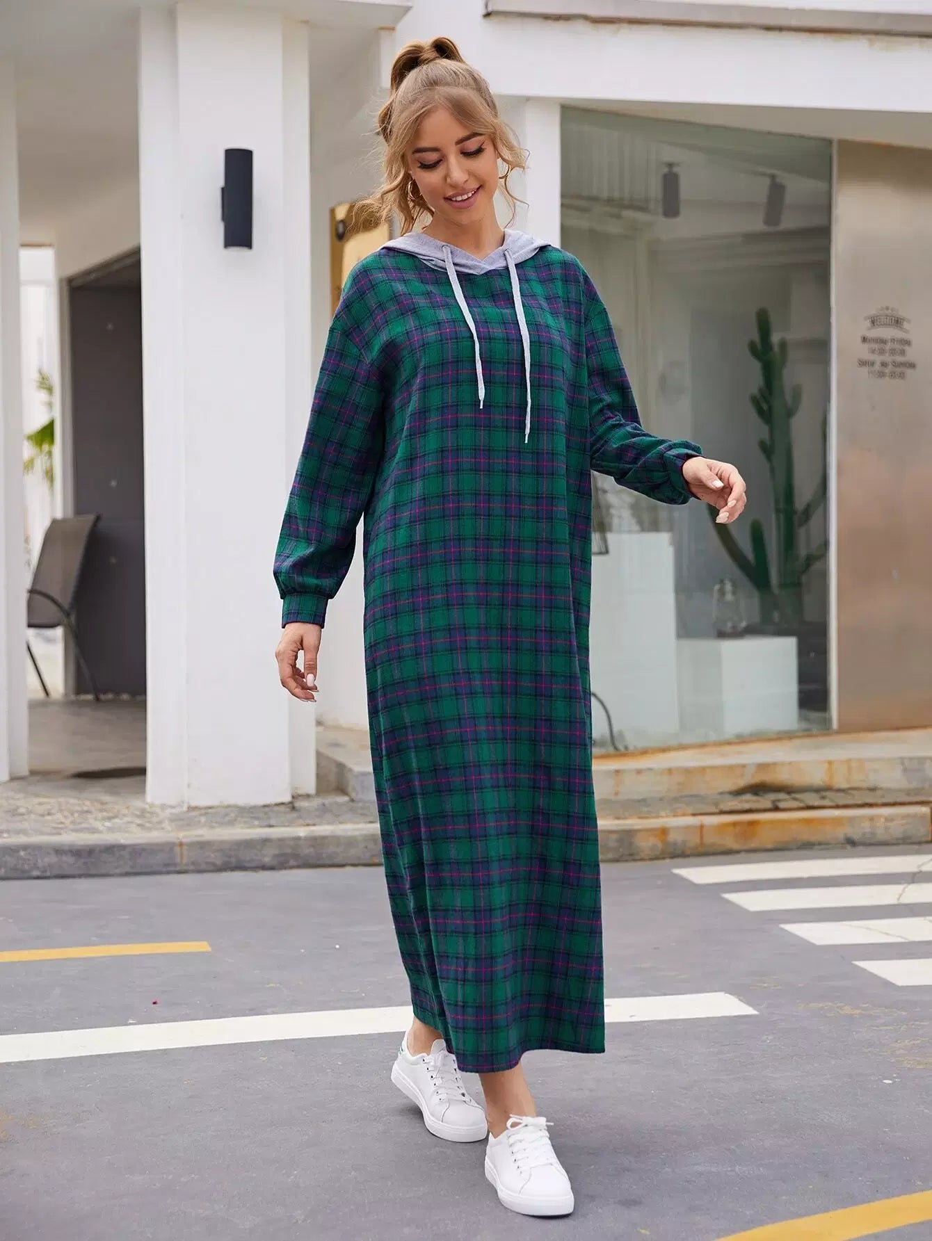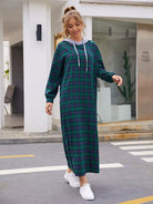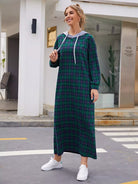 Drawstring Detail Tartan Hooded Dress