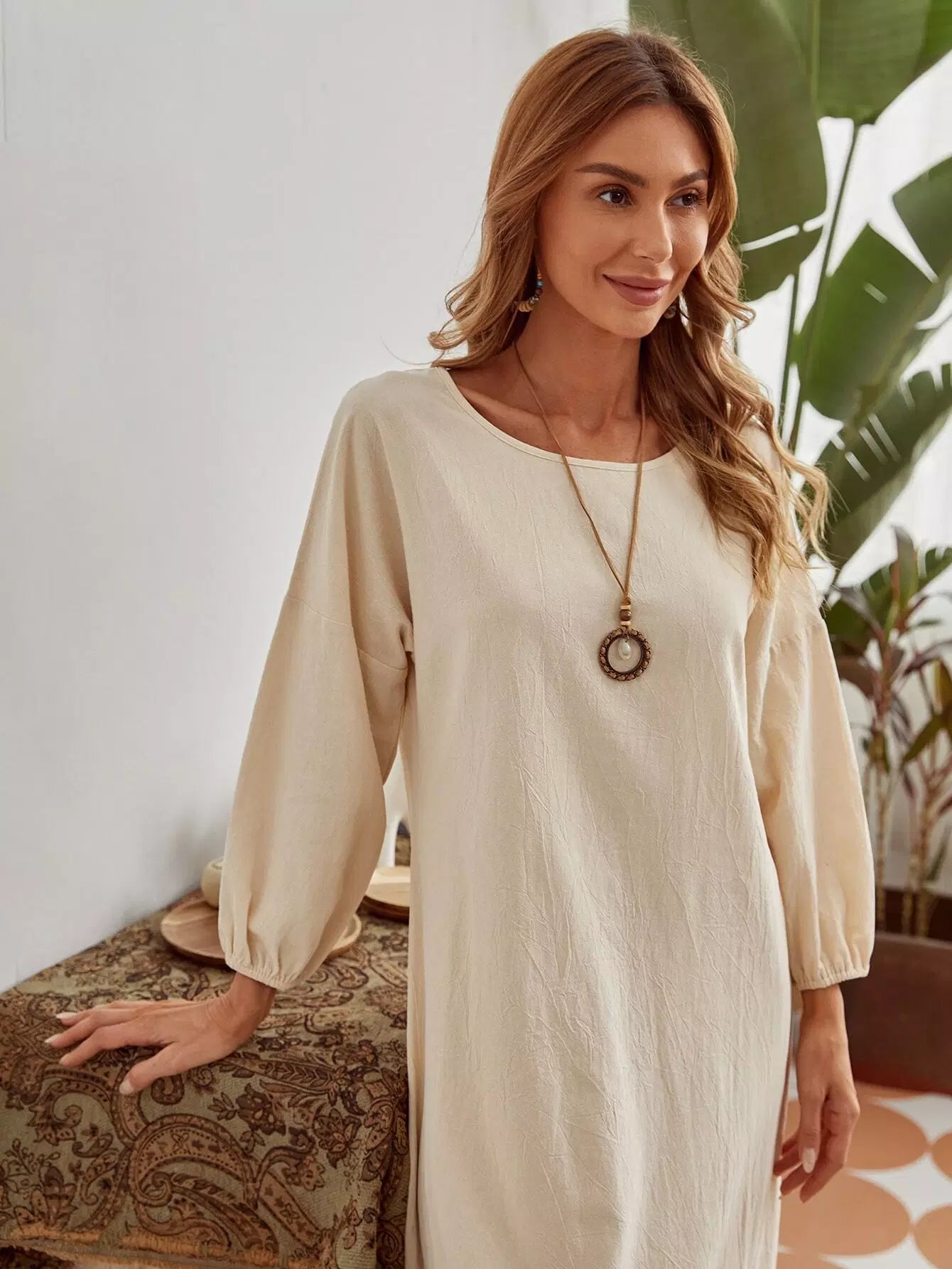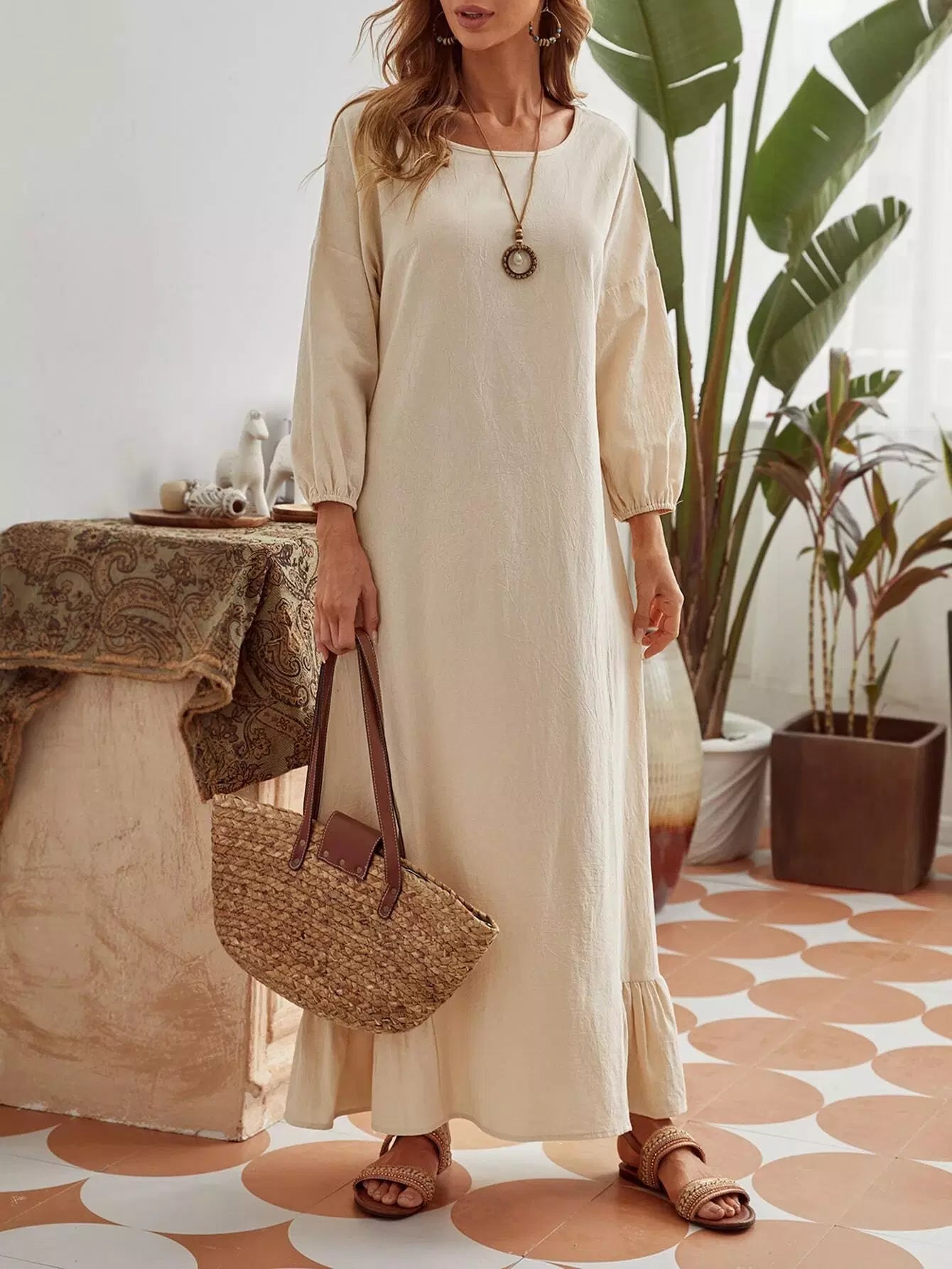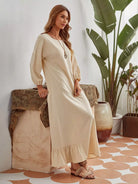 Drop Shoulder Ruffle Hem Maxi Tunic Dress