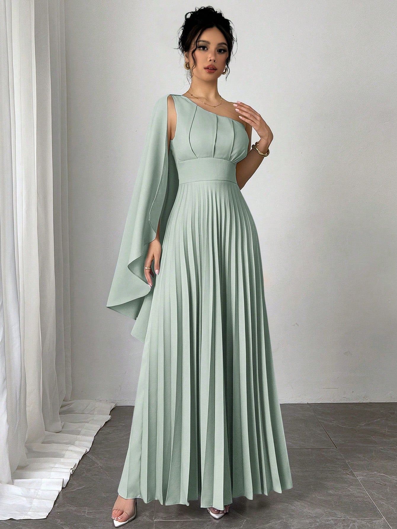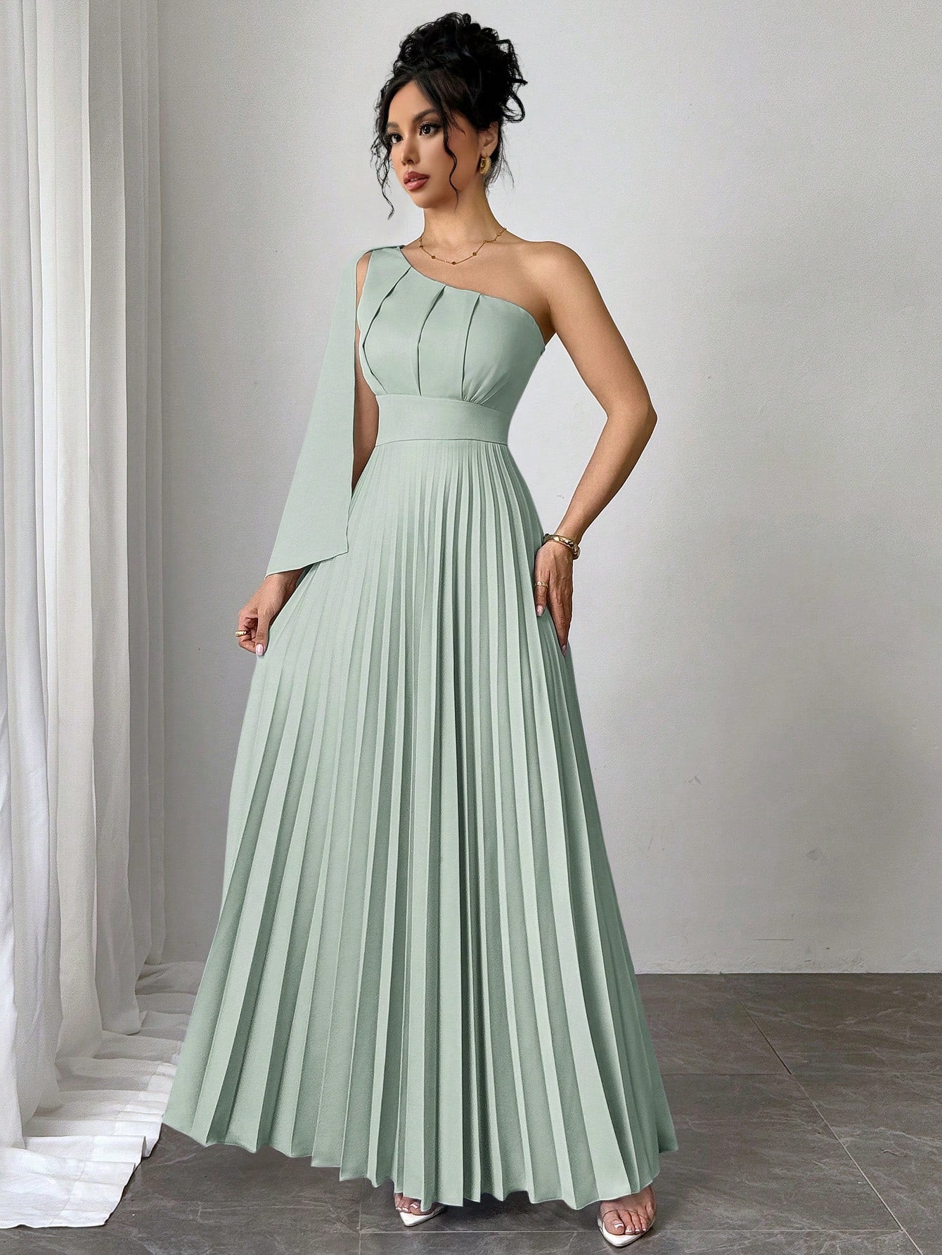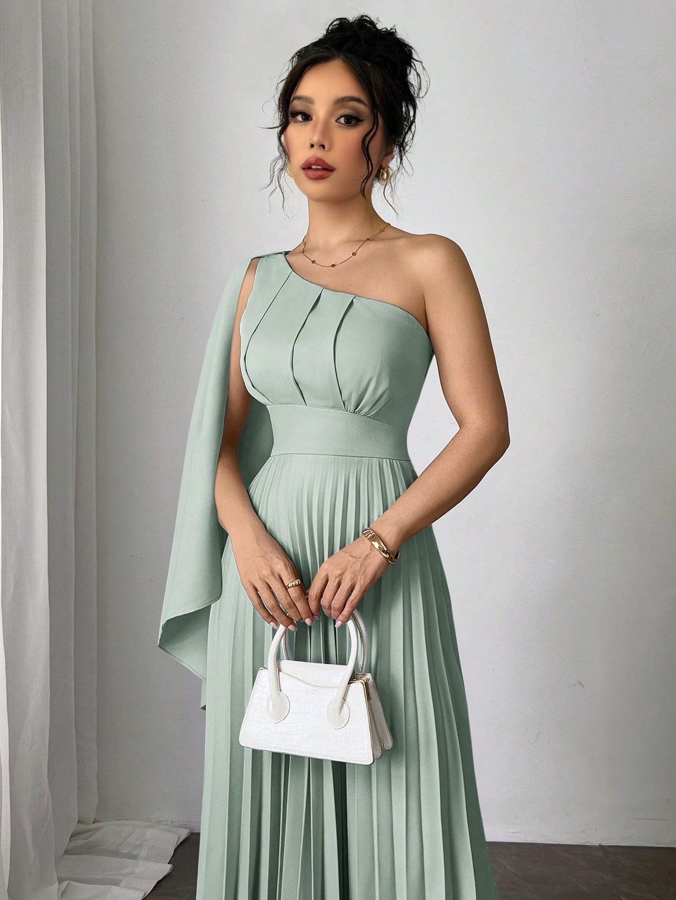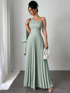 Firerie New Versatile Light Blue Pleated Sleeveless Dress For Women
