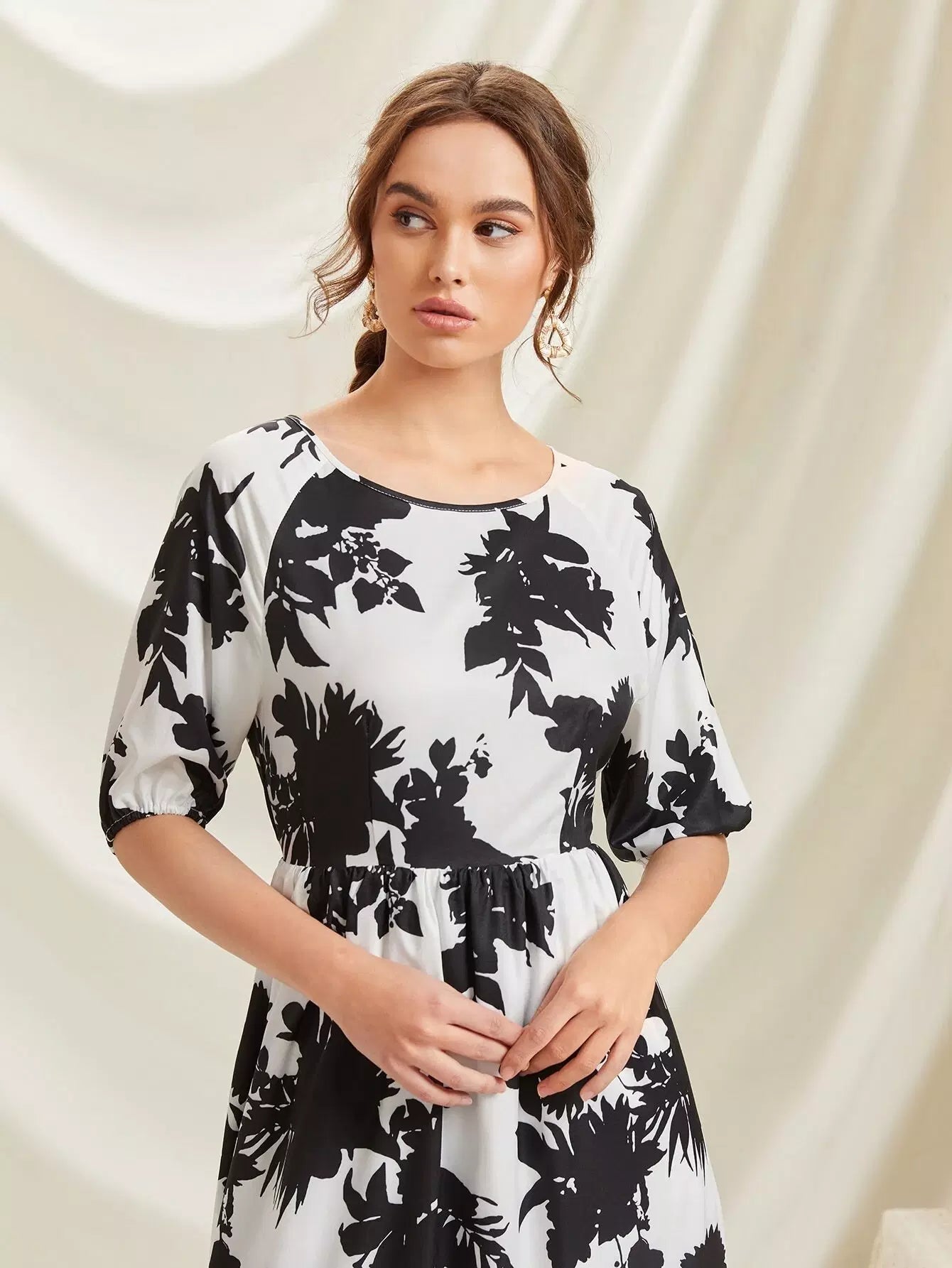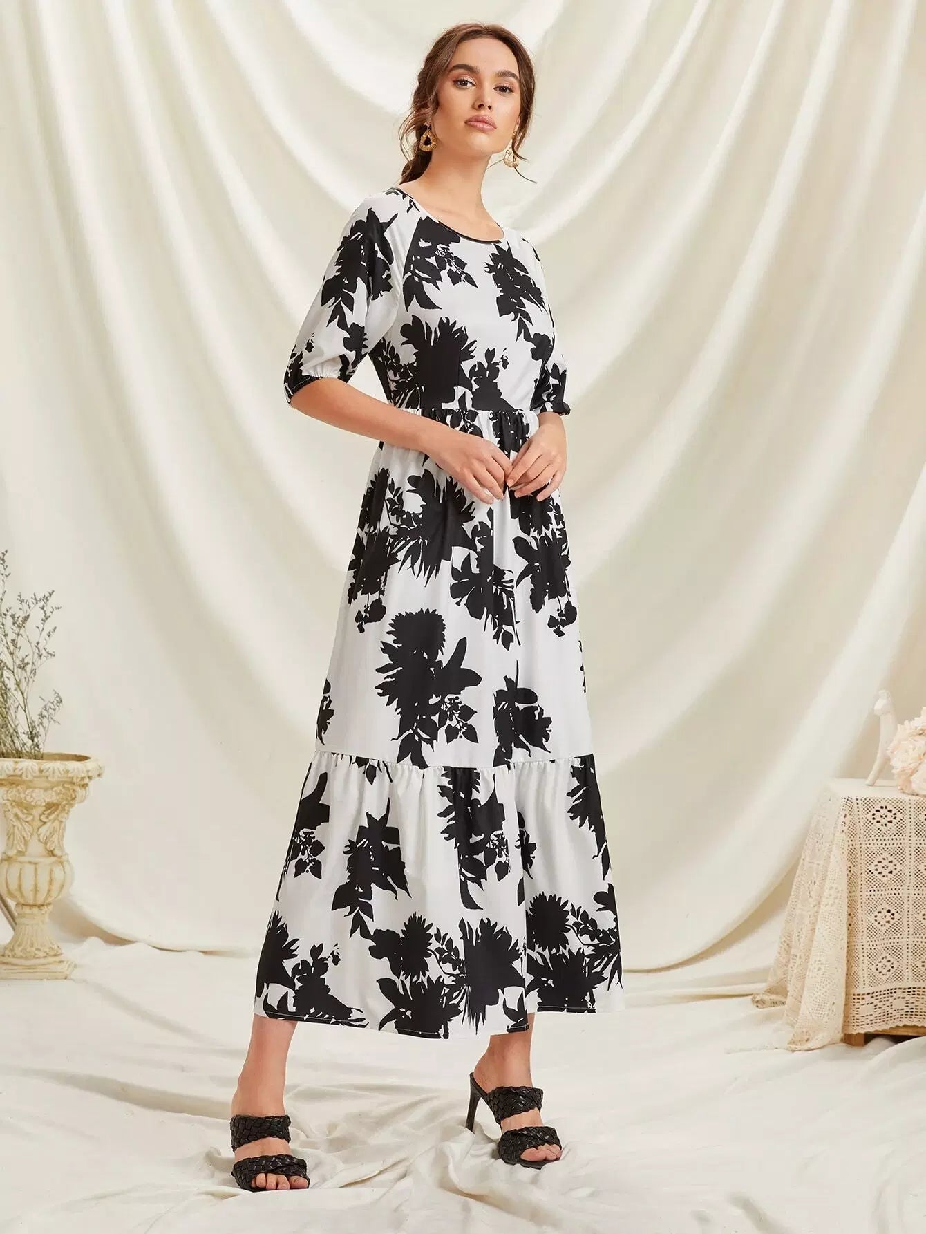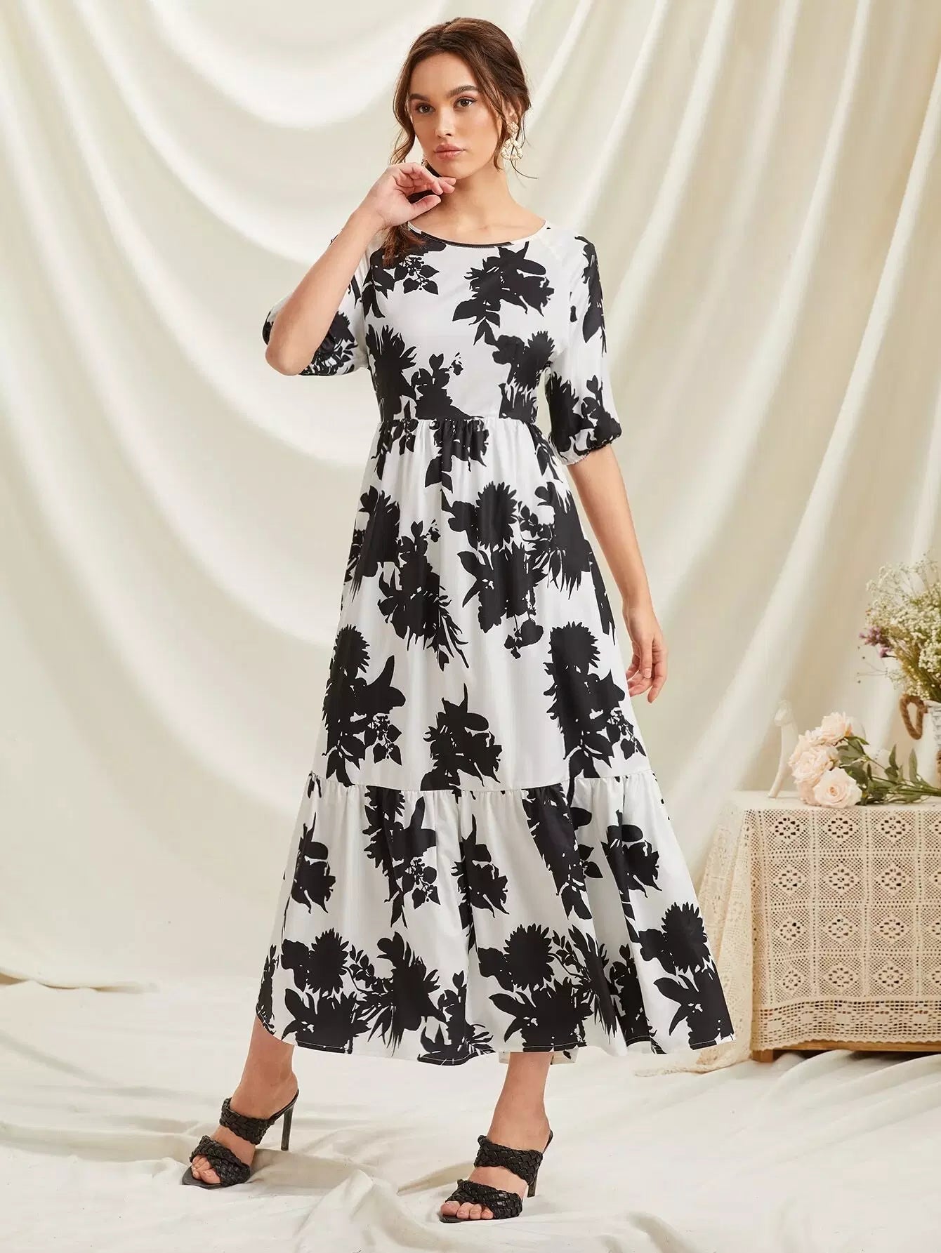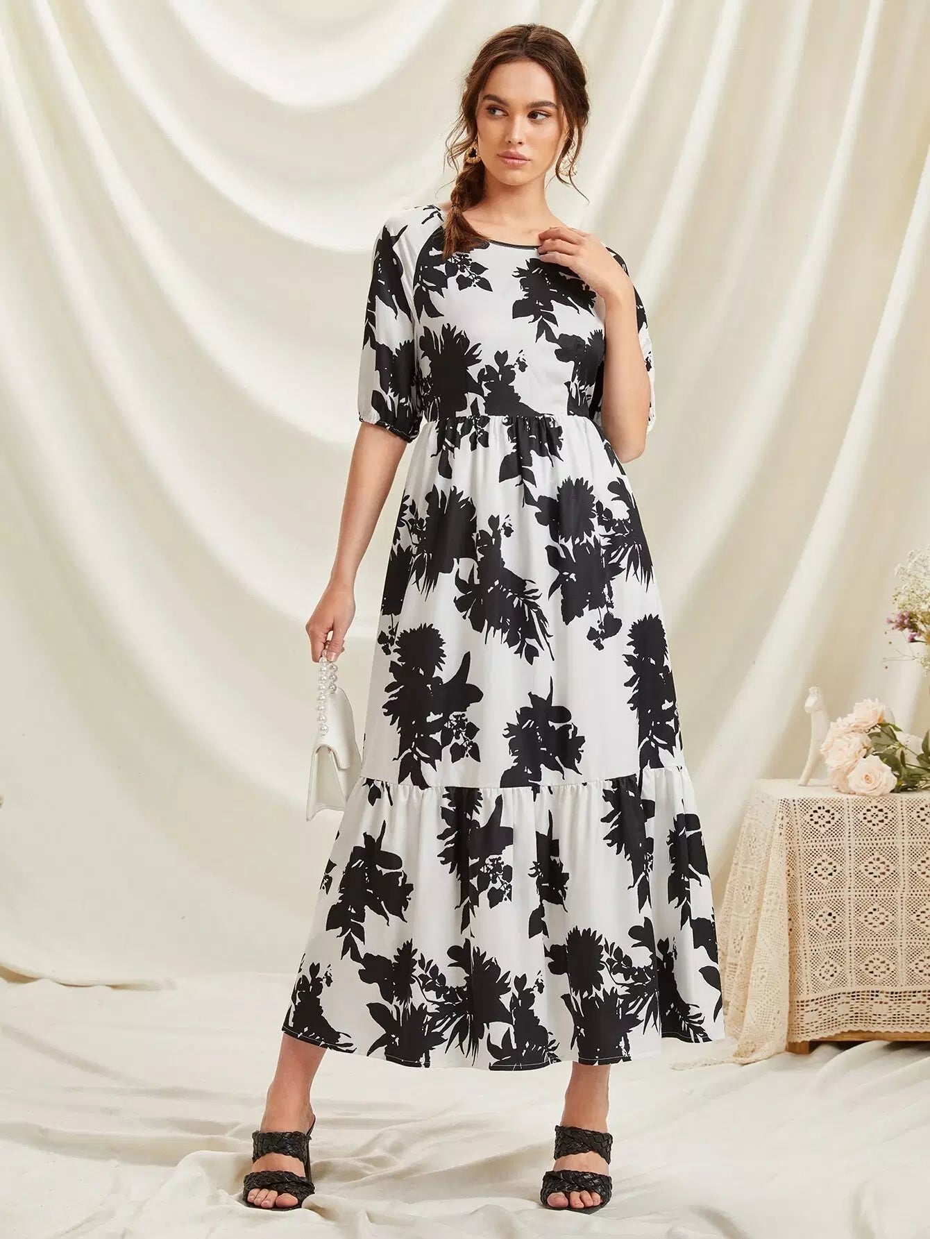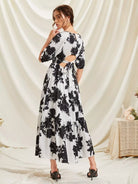 Floral Print Tie Back Ruffle Hem Dress
