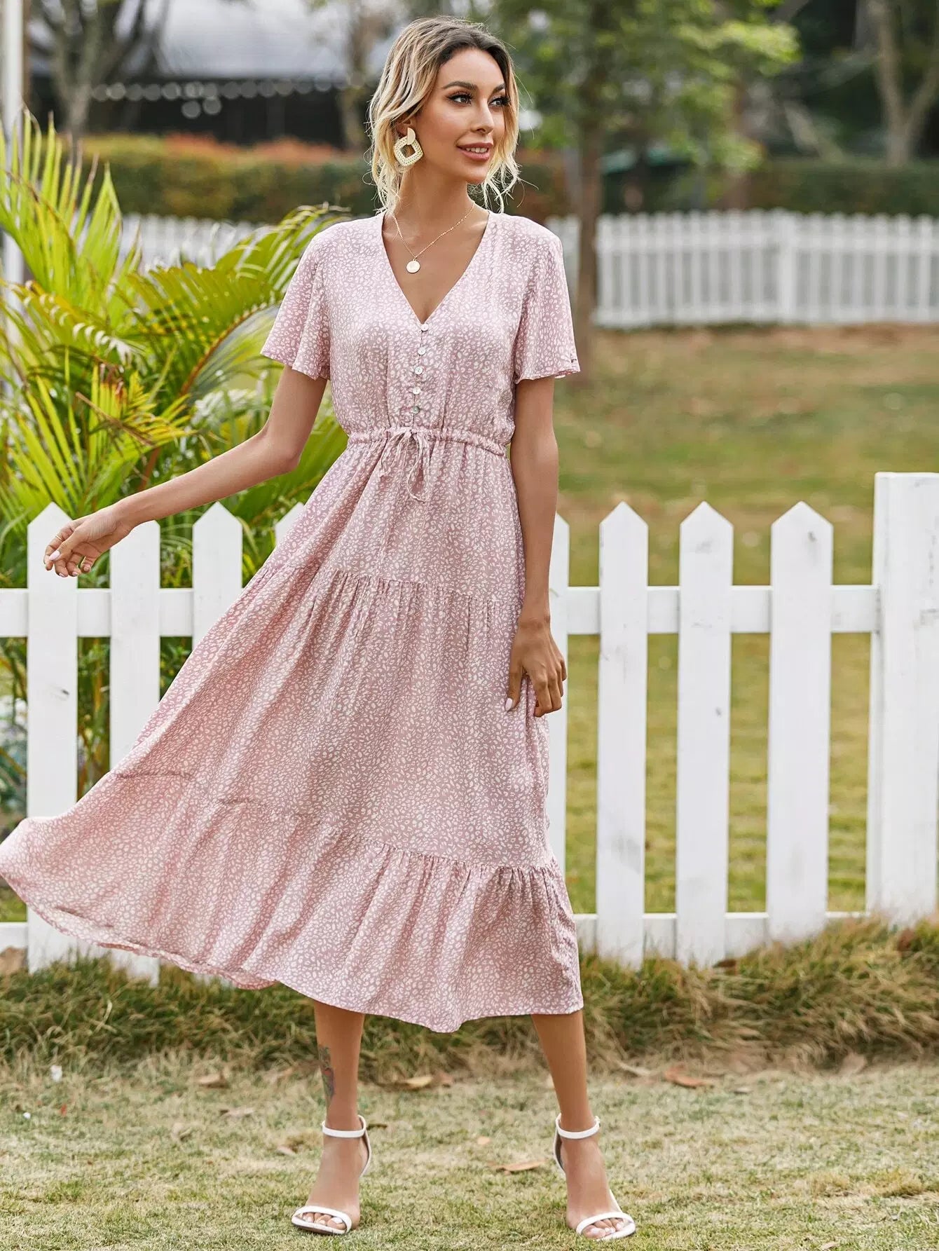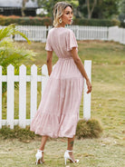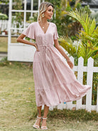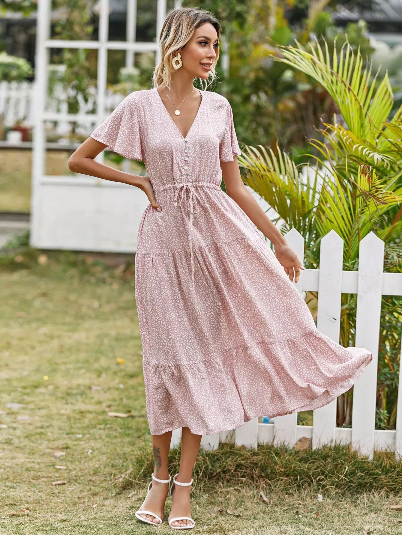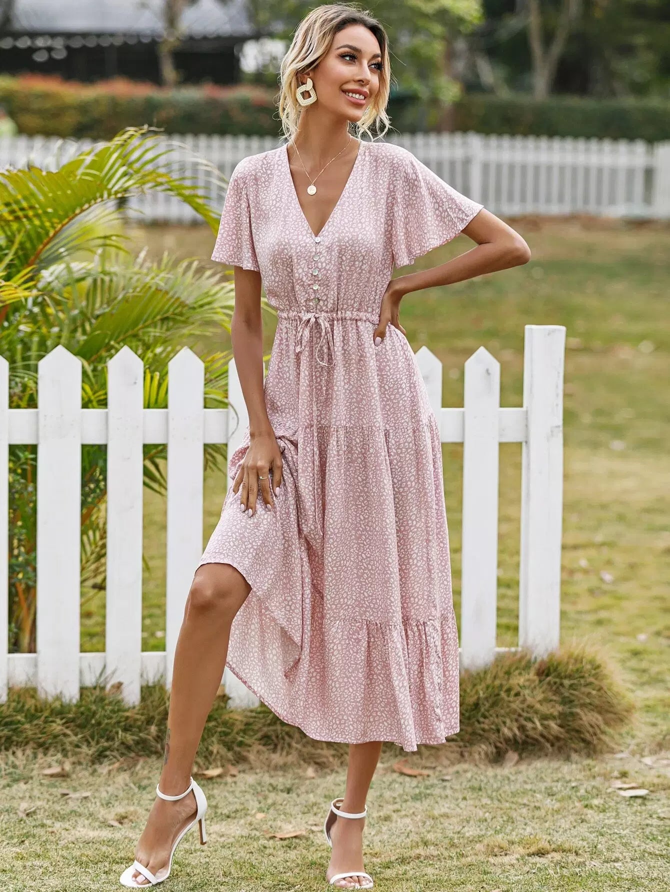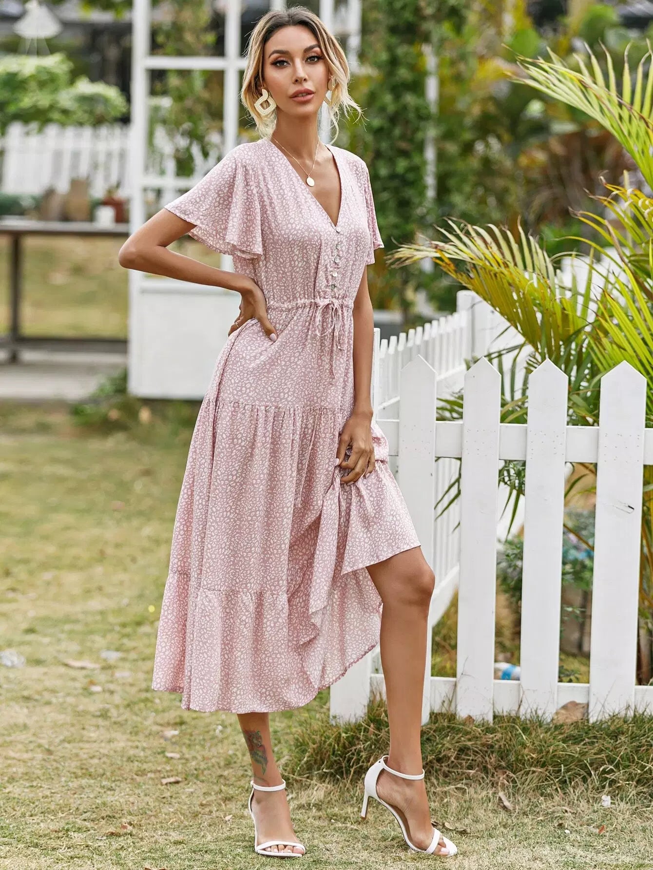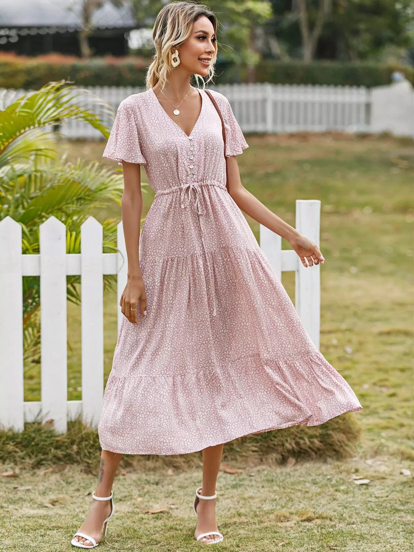 Flutter Sleeve Drawstring Waist Ruffle Hem Dress