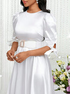 Lady Spring And Summer Vacation High-End Elegant Square Neck Puff Sleeve Hollow Embroidery Long Skirt