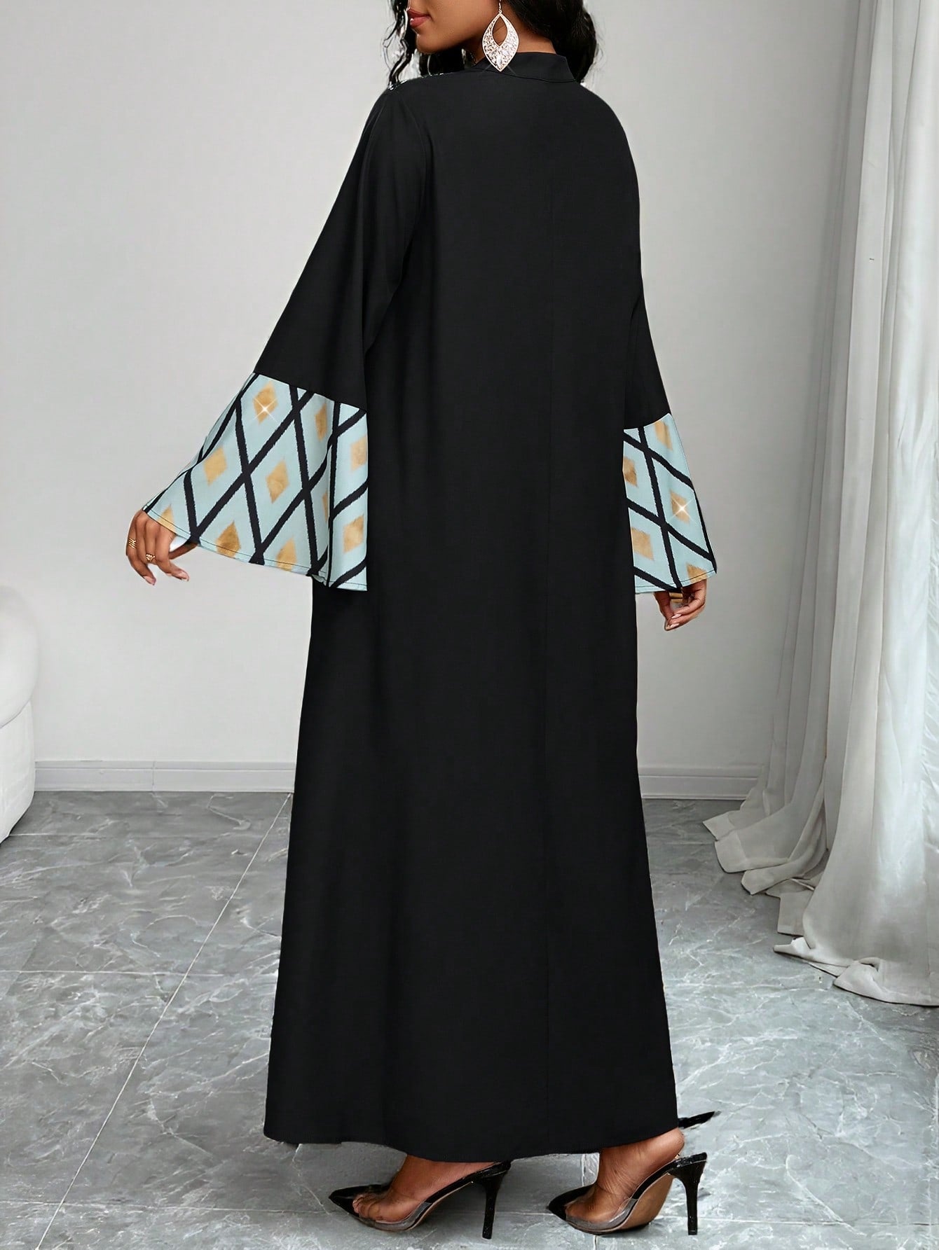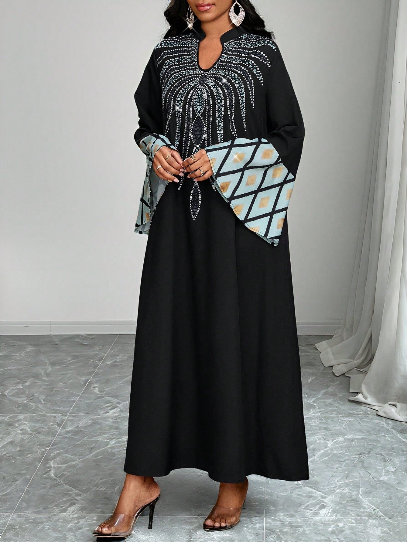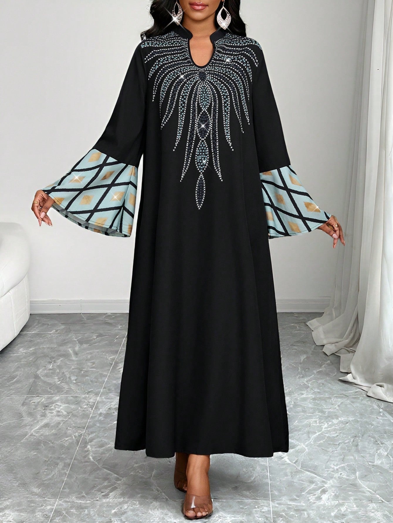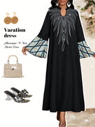 Lady Women's Rhinestone Decor V-Neck Flared Sleeve Long Dressboho Bohemia Boho Women's Clothing Dresses