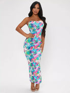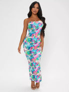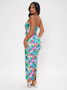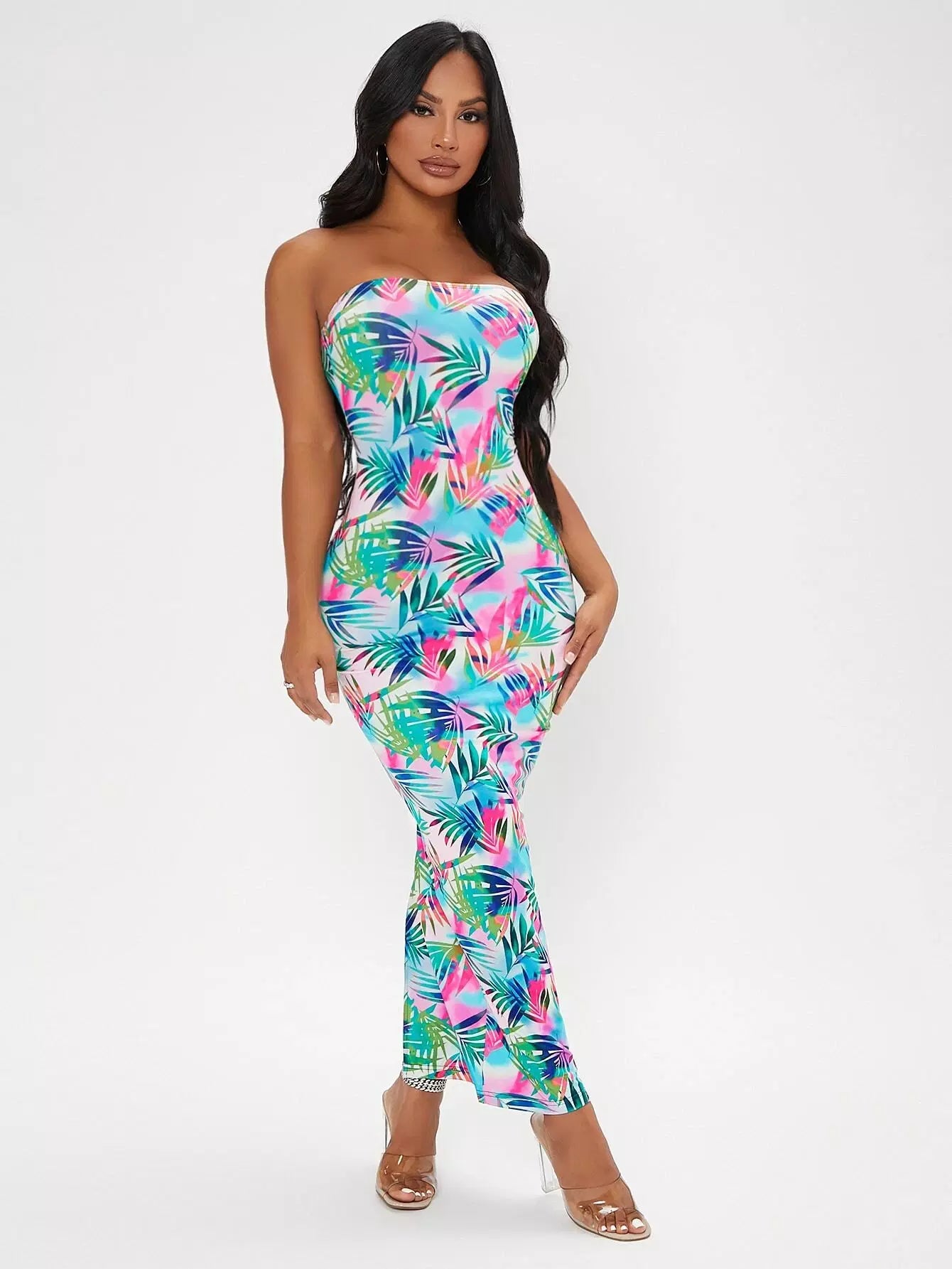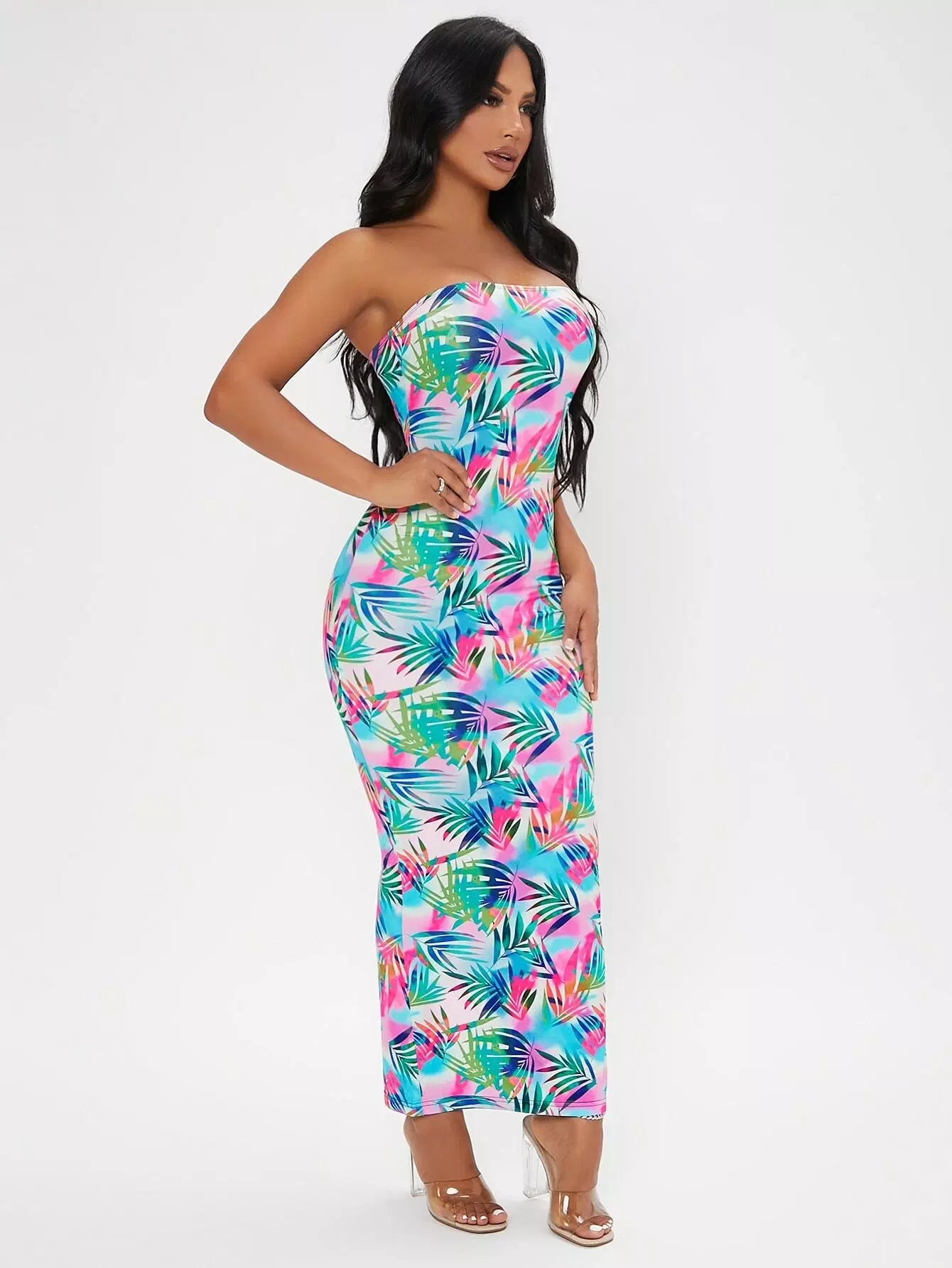 Leaf Print Tie Dye Split Hem Tube Bodycon Dress