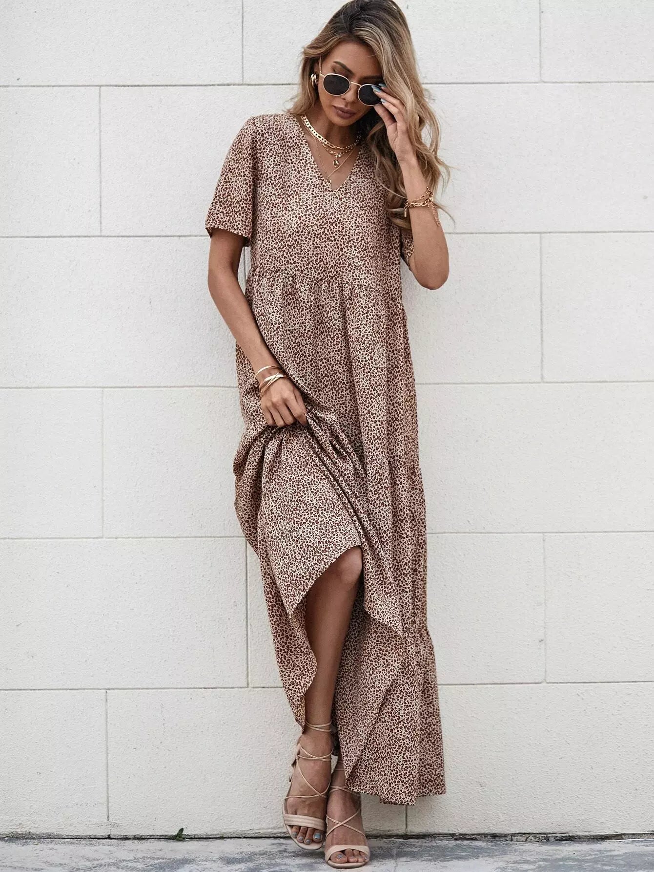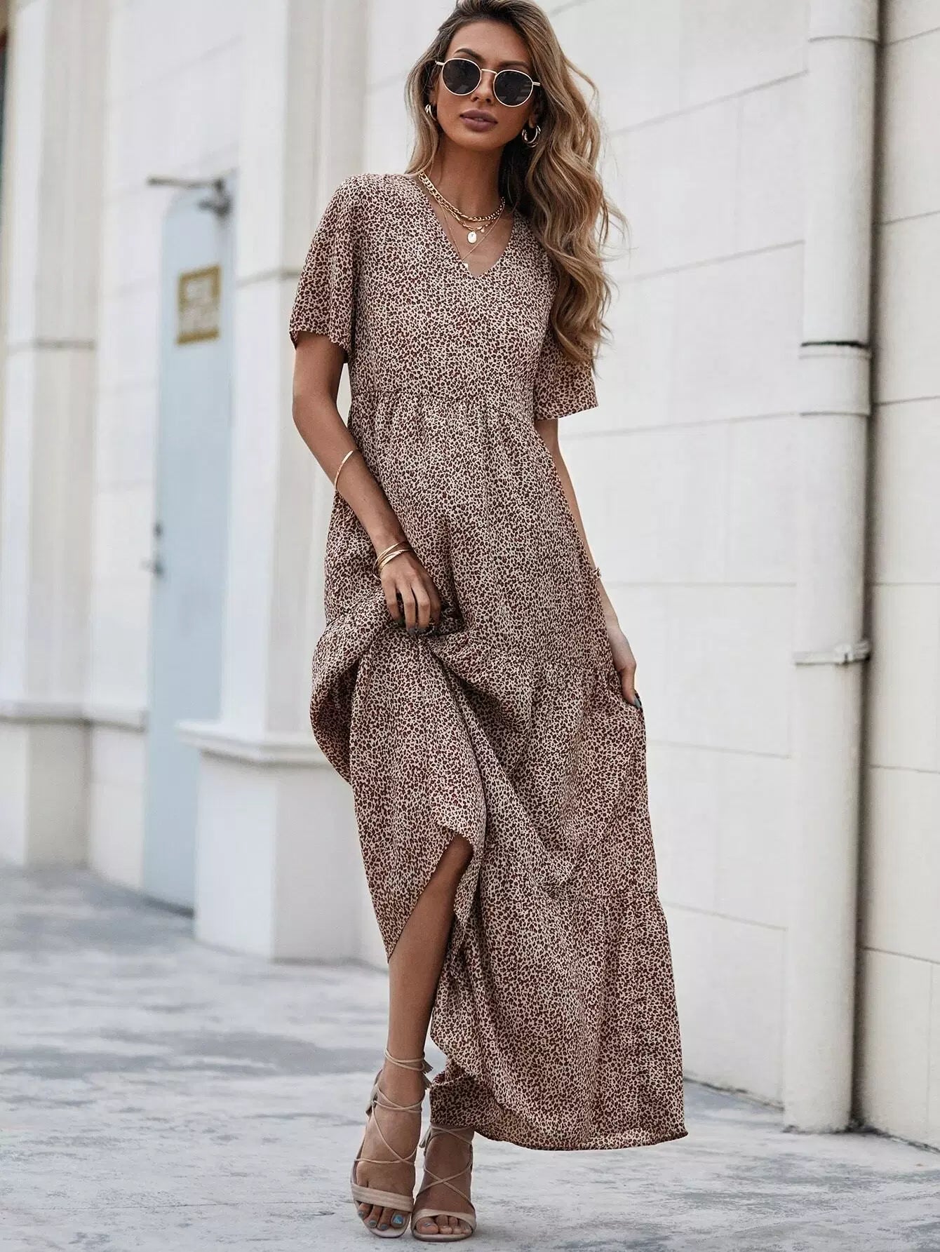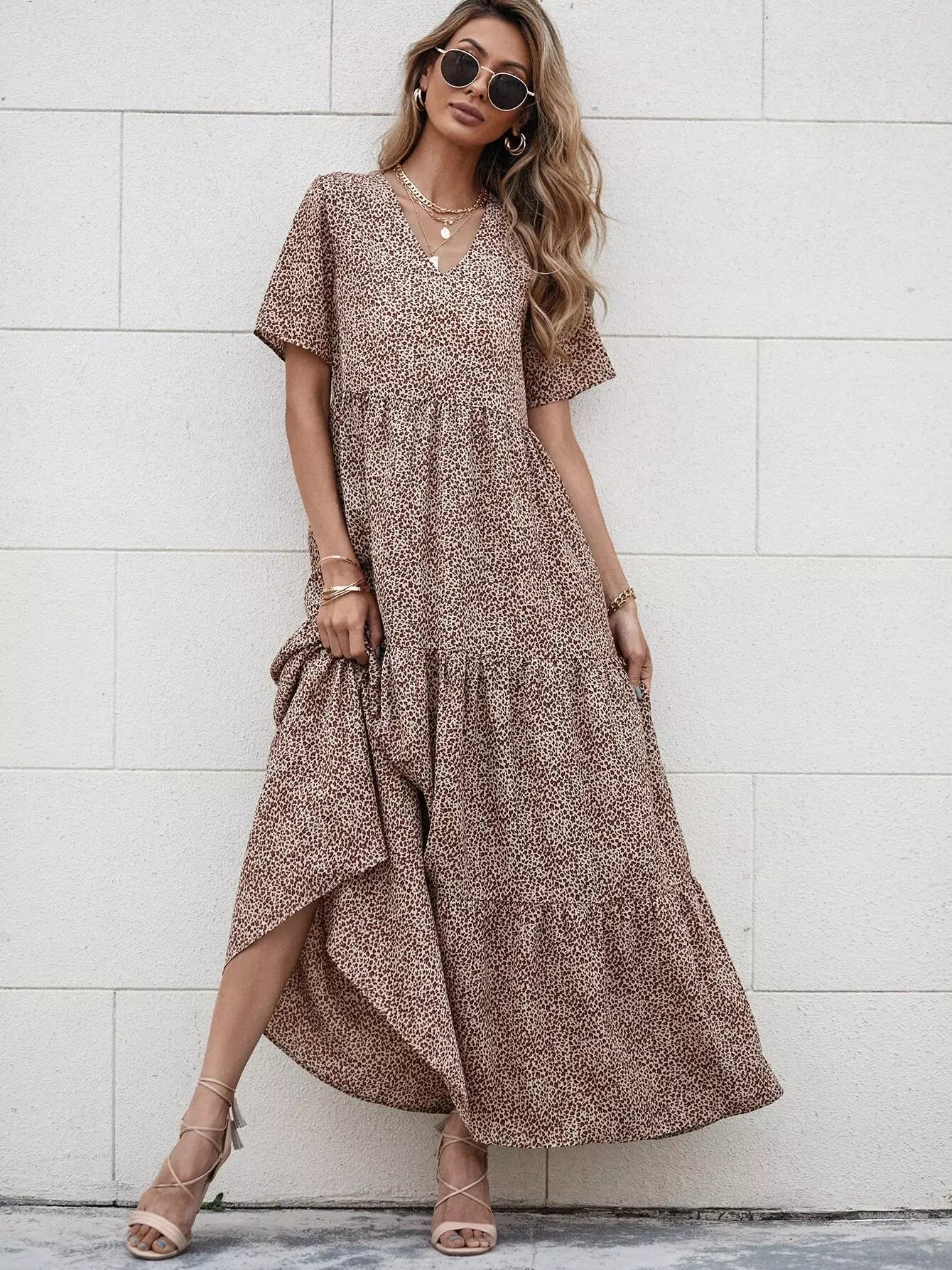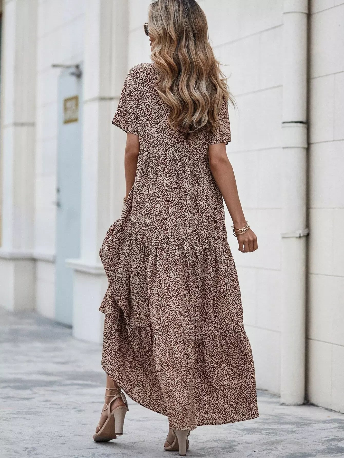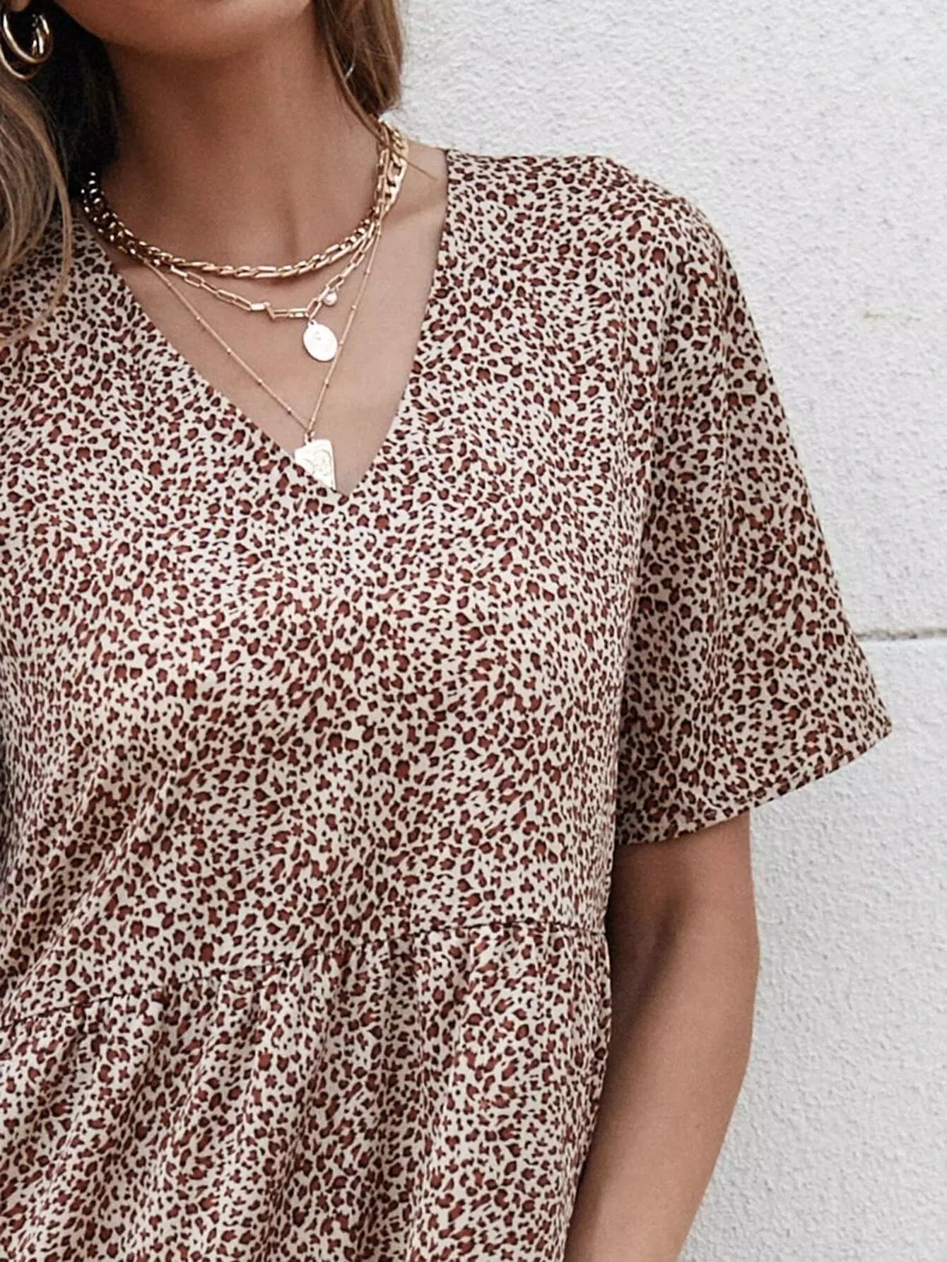 Leopard Print Ruffle Hem Smock Dress