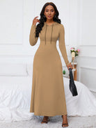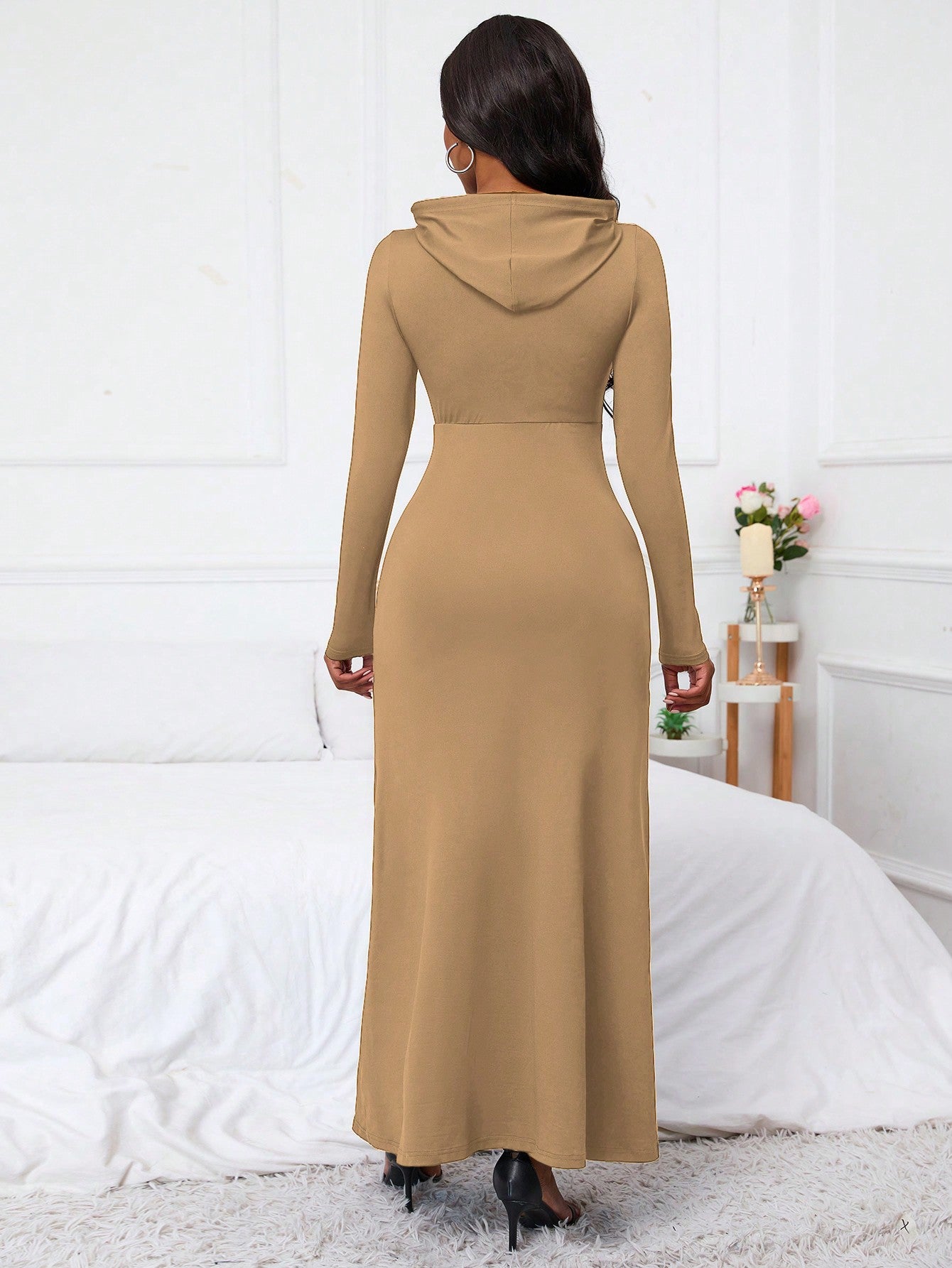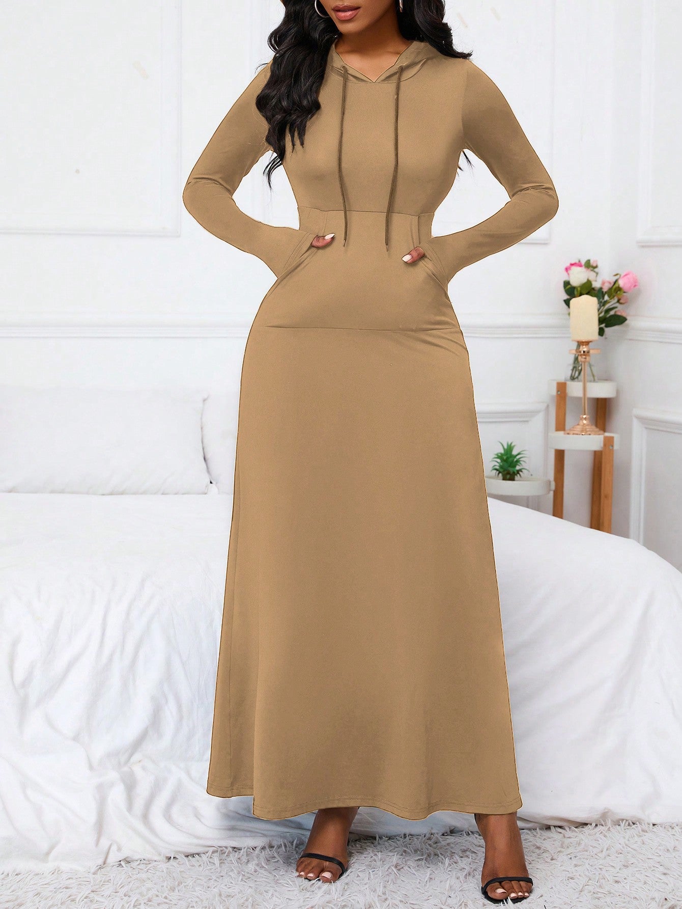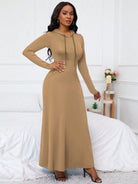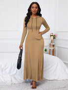 LUNE Women's Hooded Drawstring Pocketed Dress Maxi Women Outfit Fall Cloth For Women
