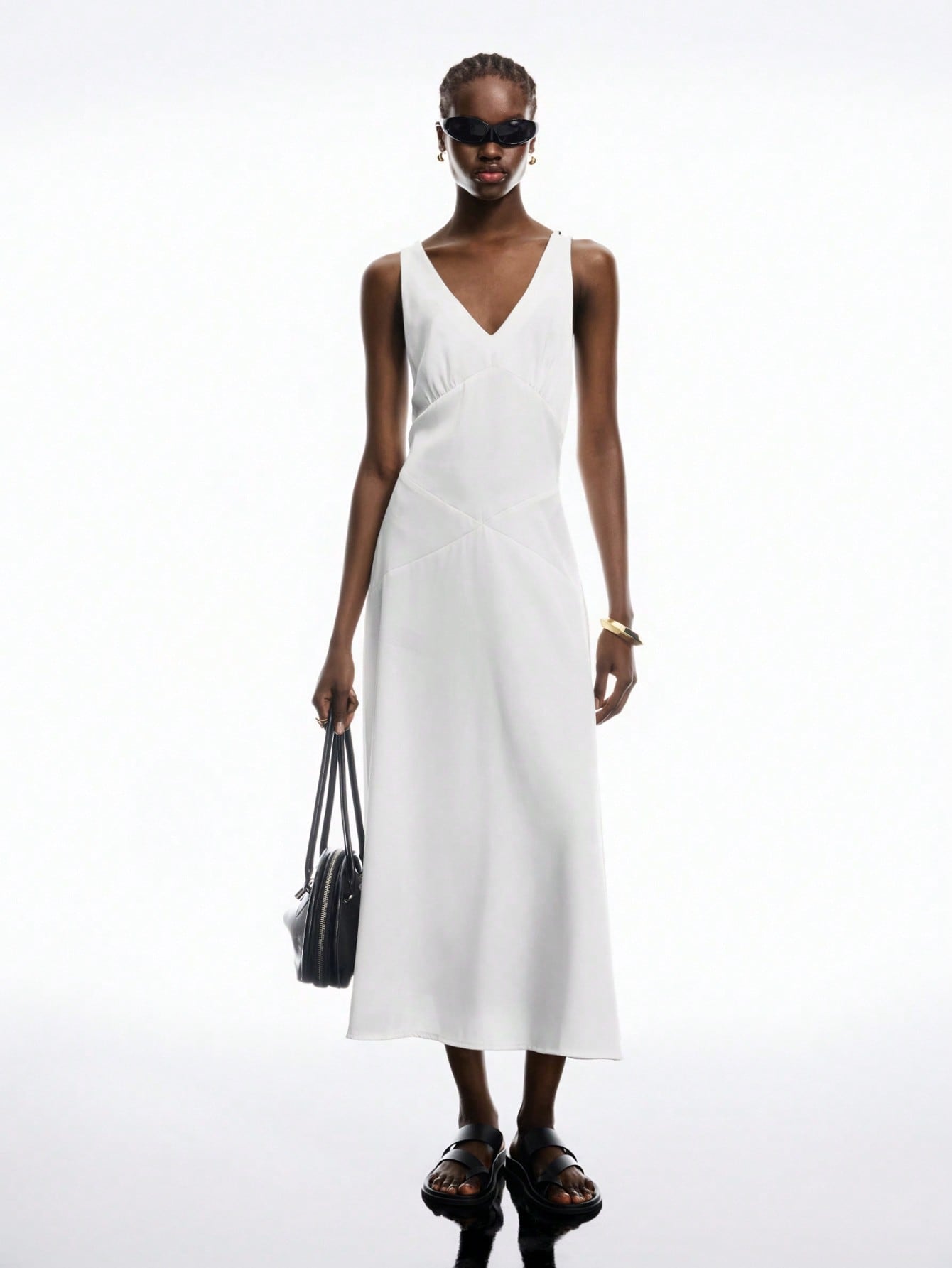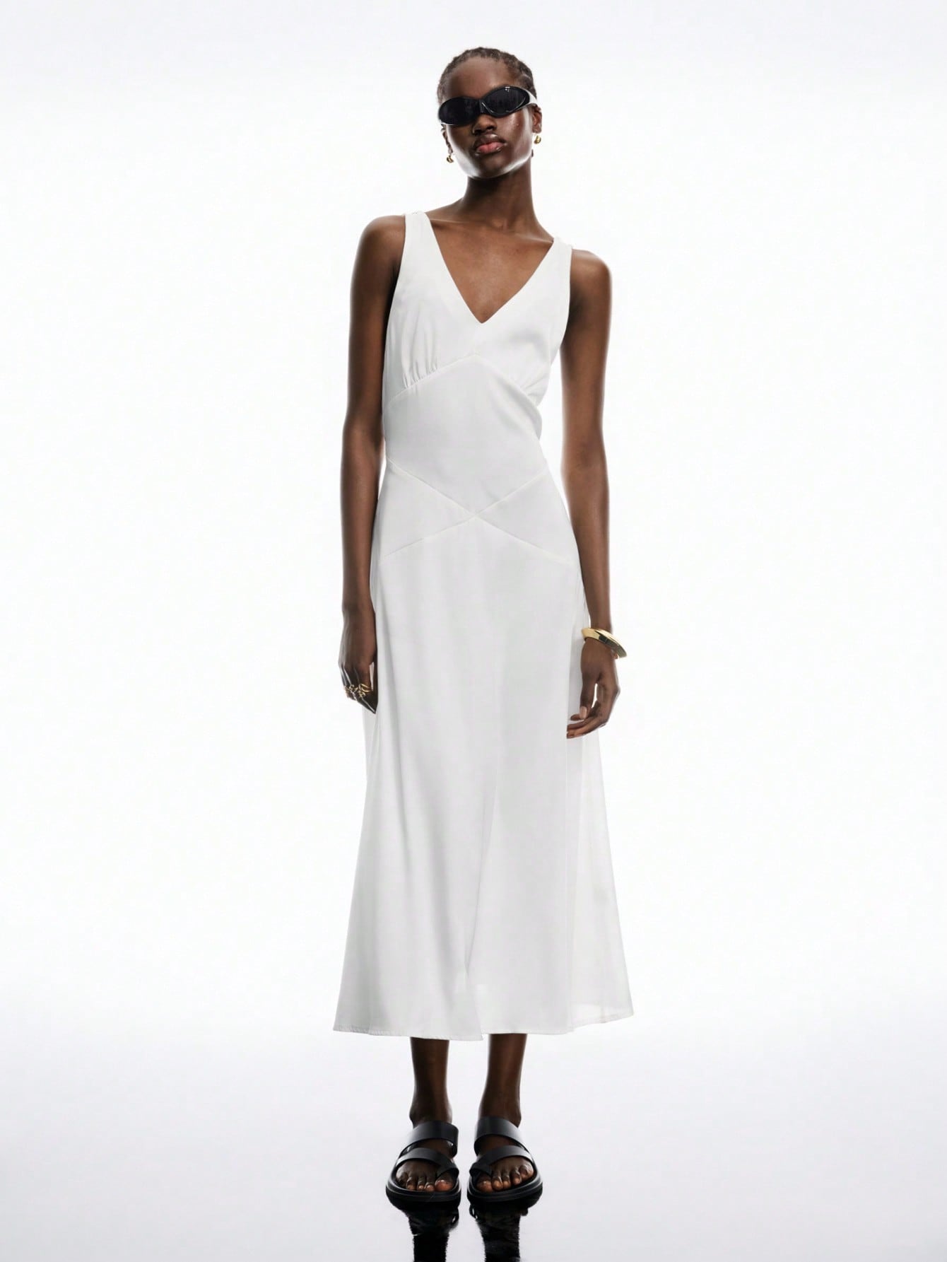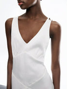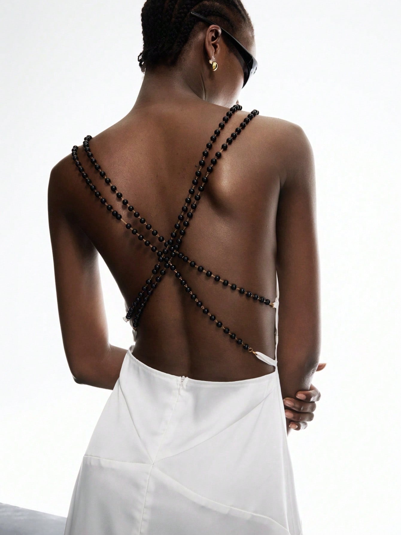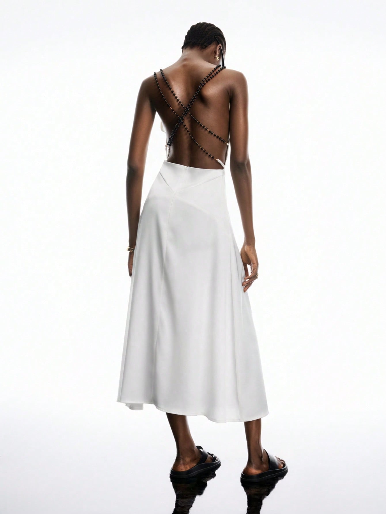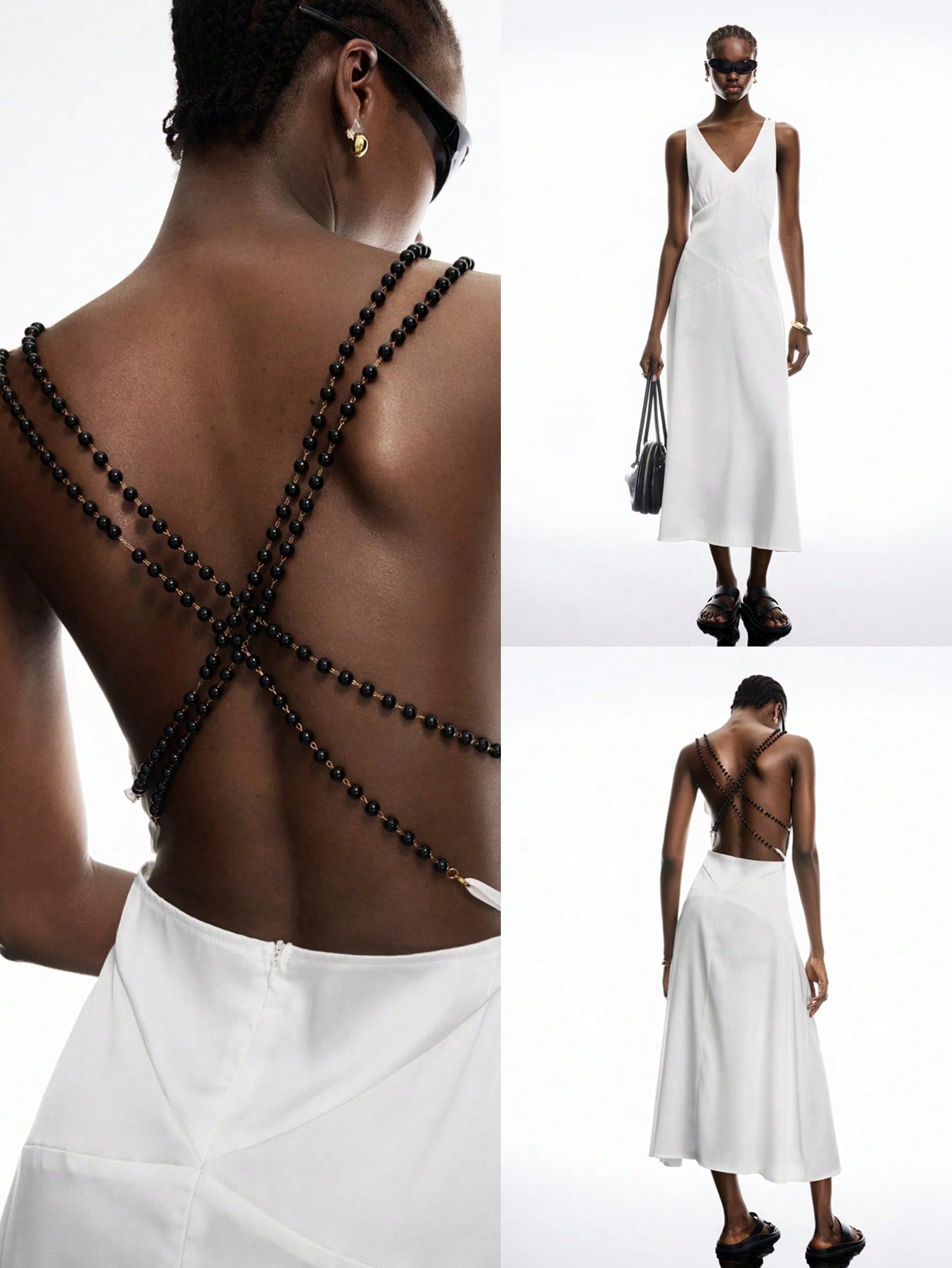LYSMO Women's White Satin Open-Back Beaded Dress - Spring/Summer 2025 New Arrival Backless Dress