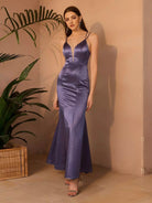 Women - Mesh Insert Tied Backless Satin Mermaid Hem Dress