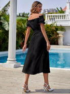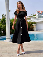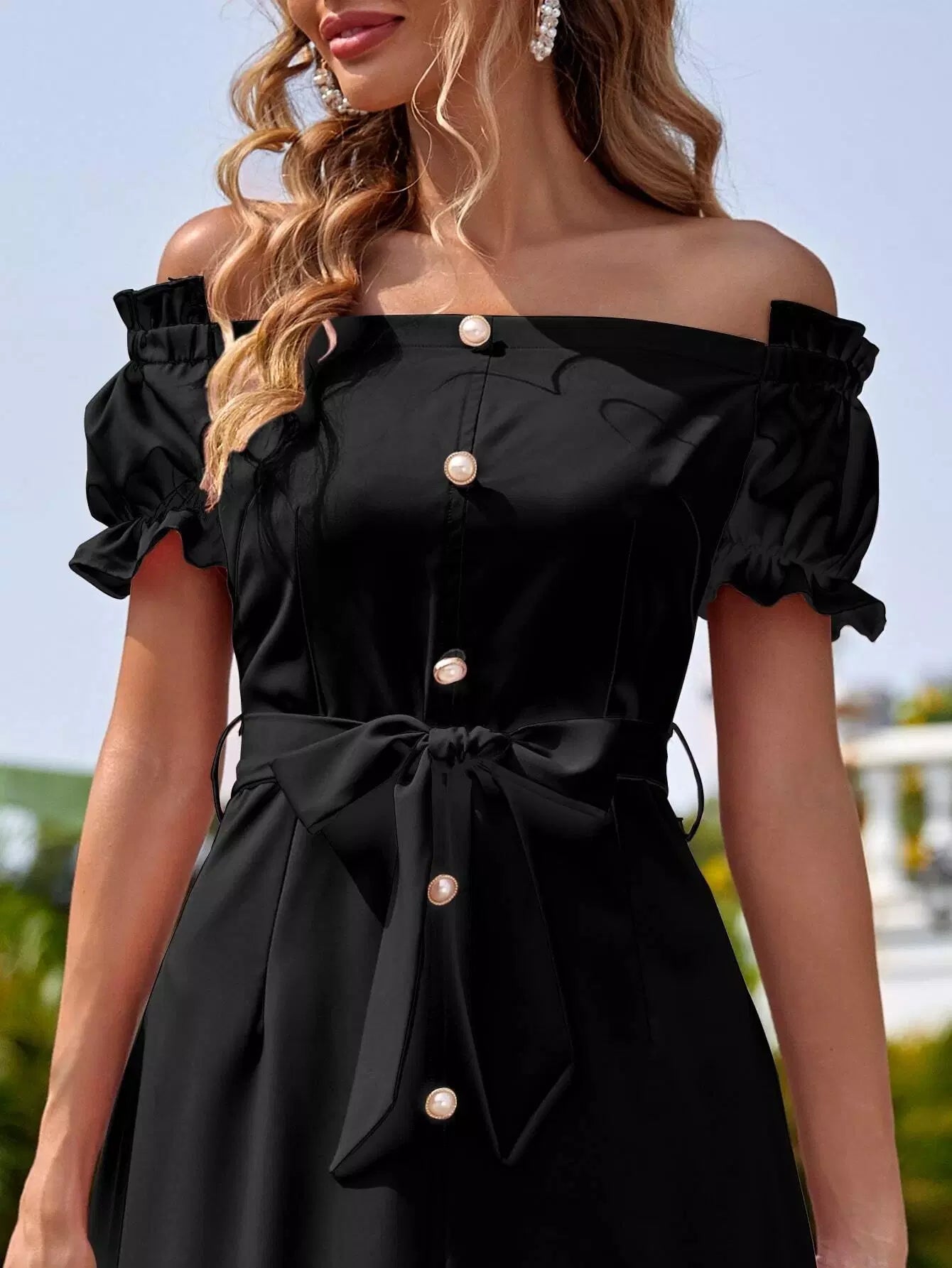 Pearls Button Front Bardot Dress Without Belt