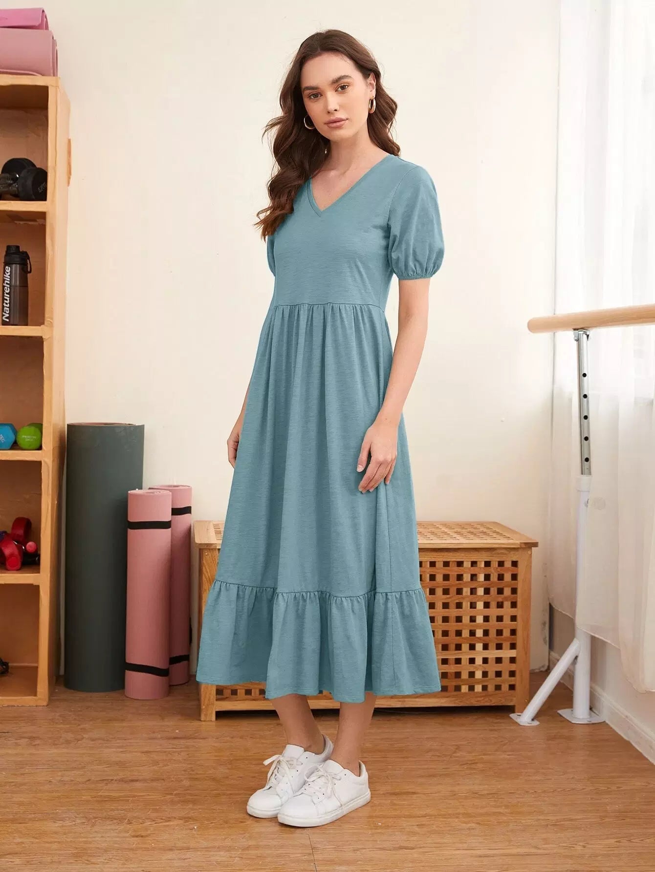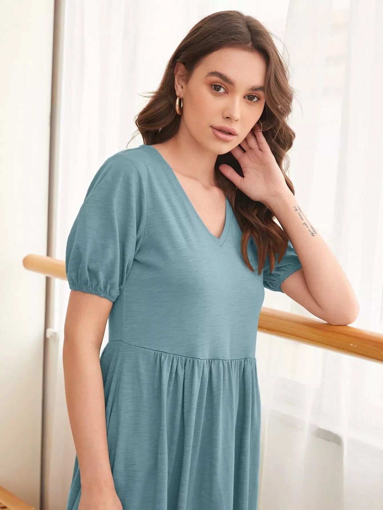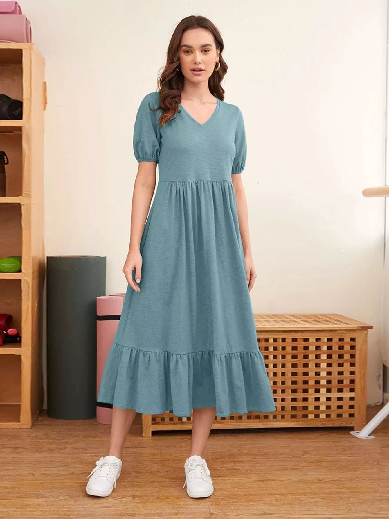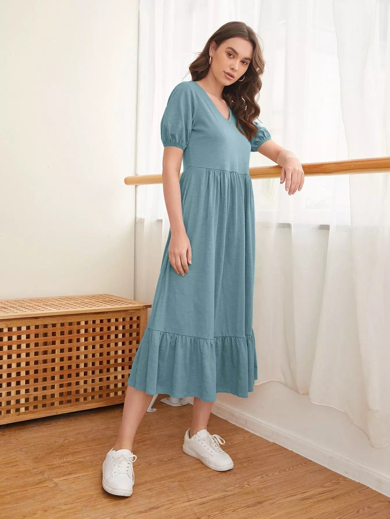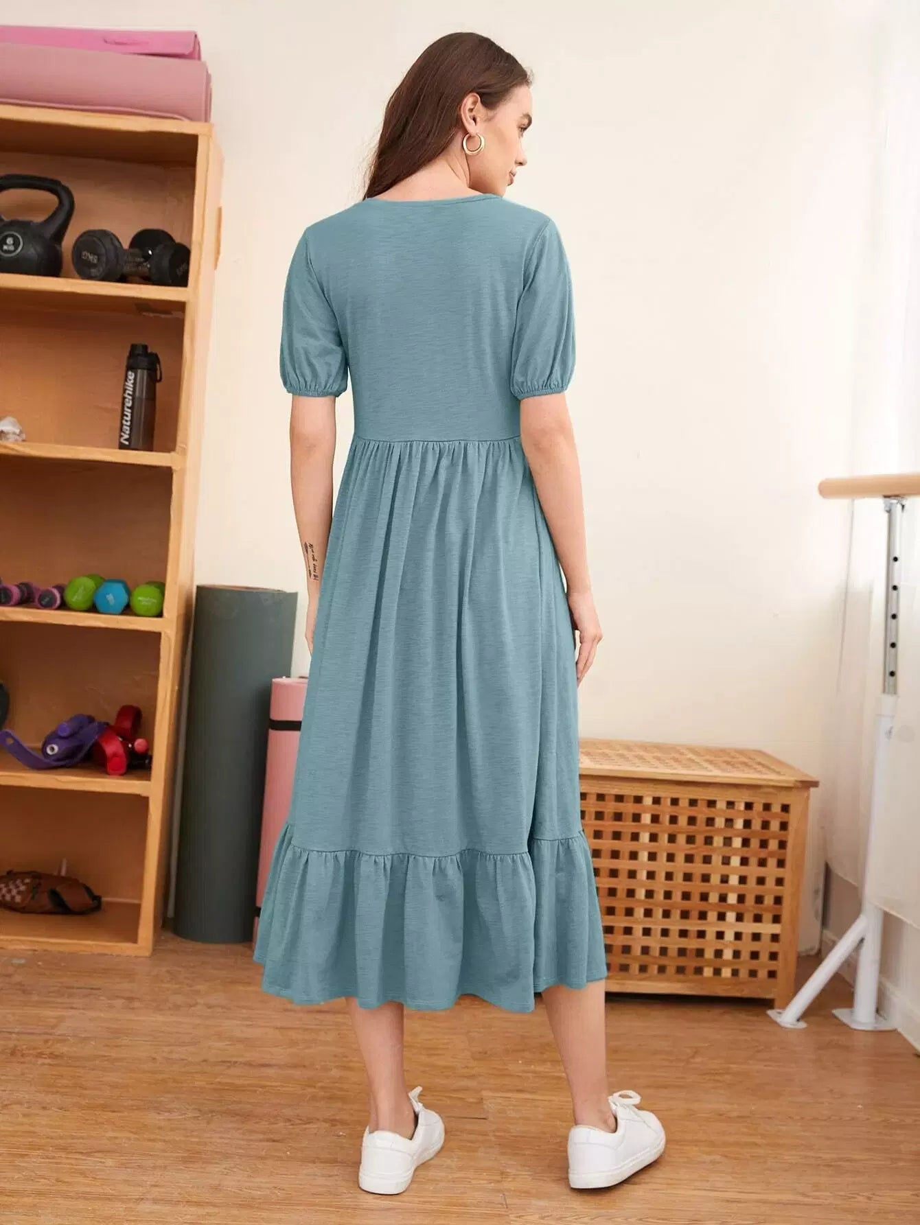 Puff Sleeve Flippy Hem Dress