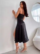 Satin Split Side Ruched Cami Dress