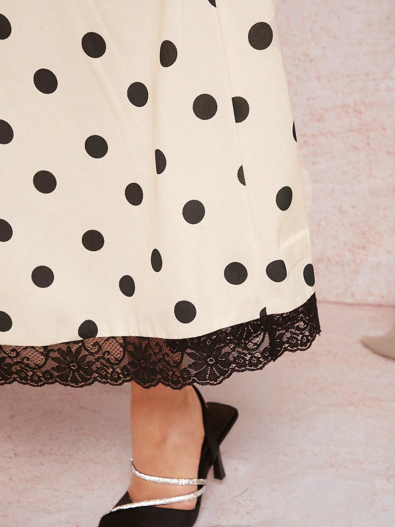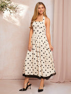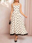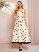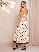 SHEIN Clasi Women's Elegant Halter Neck Apricot Base Black Polka Dot Dress For Spring & Summer Vacation