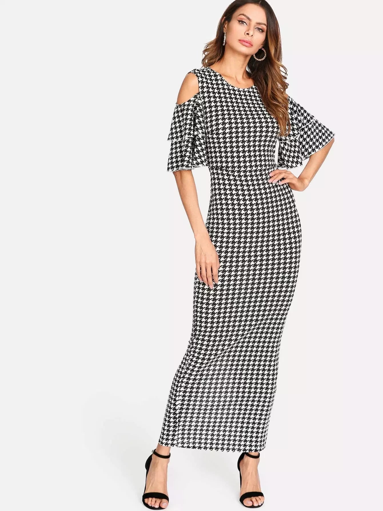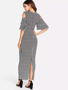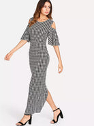 Split Back Cold Shoulder Houndstooth Dress