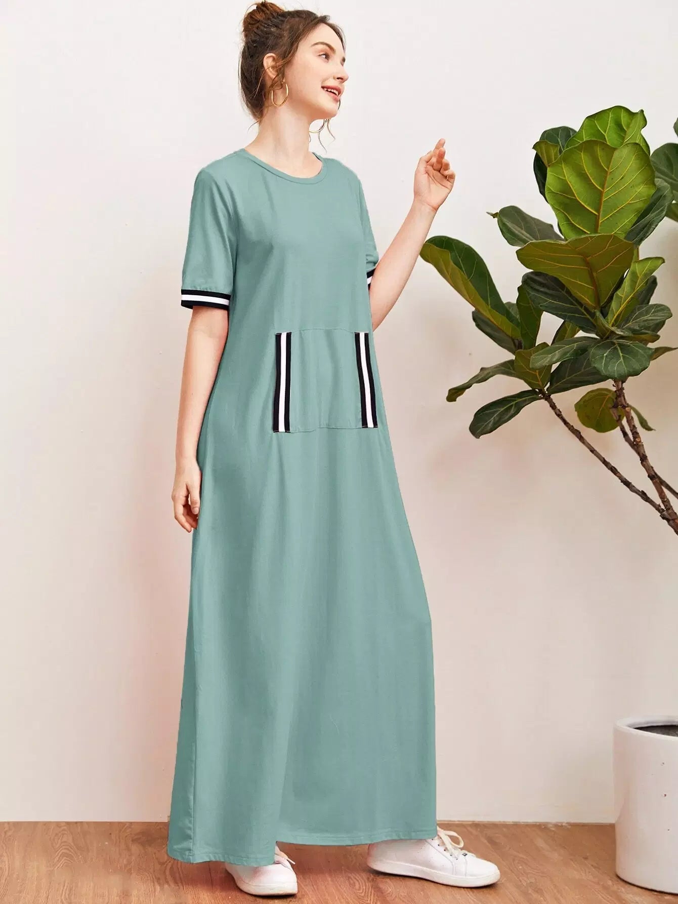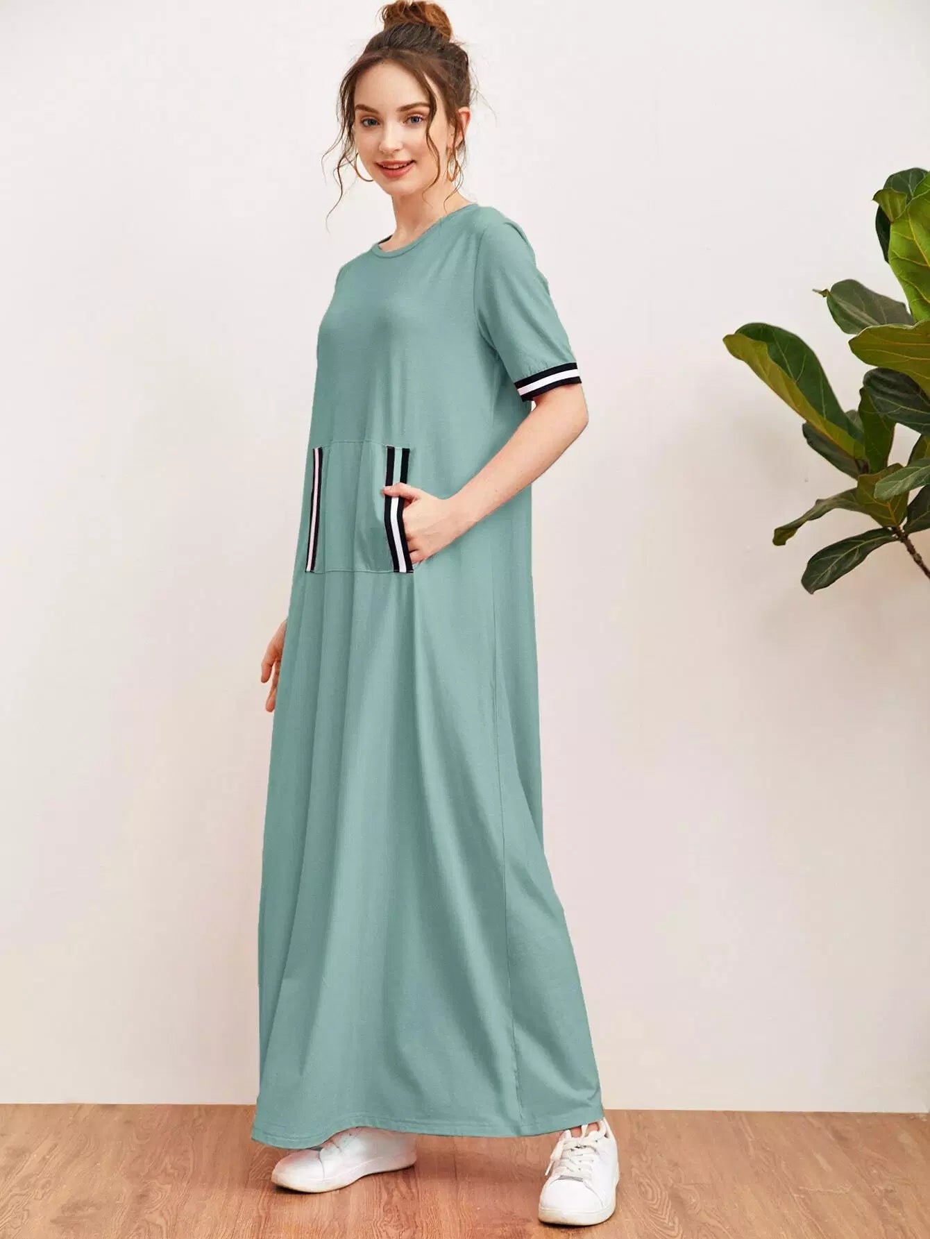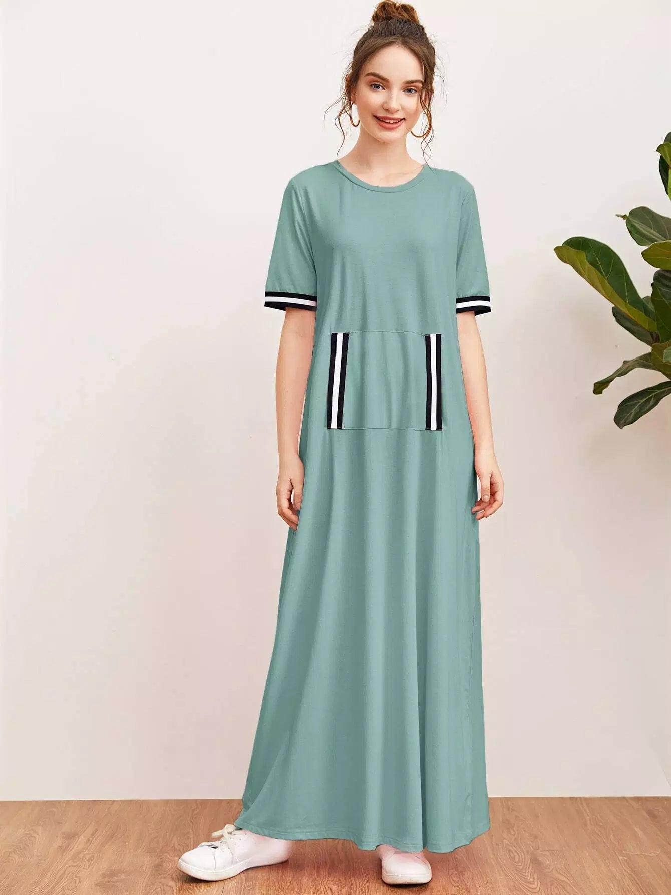 Striped Tape Trim Pouch Pocket Dress