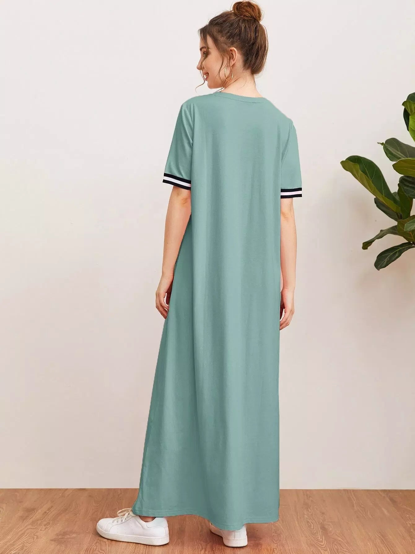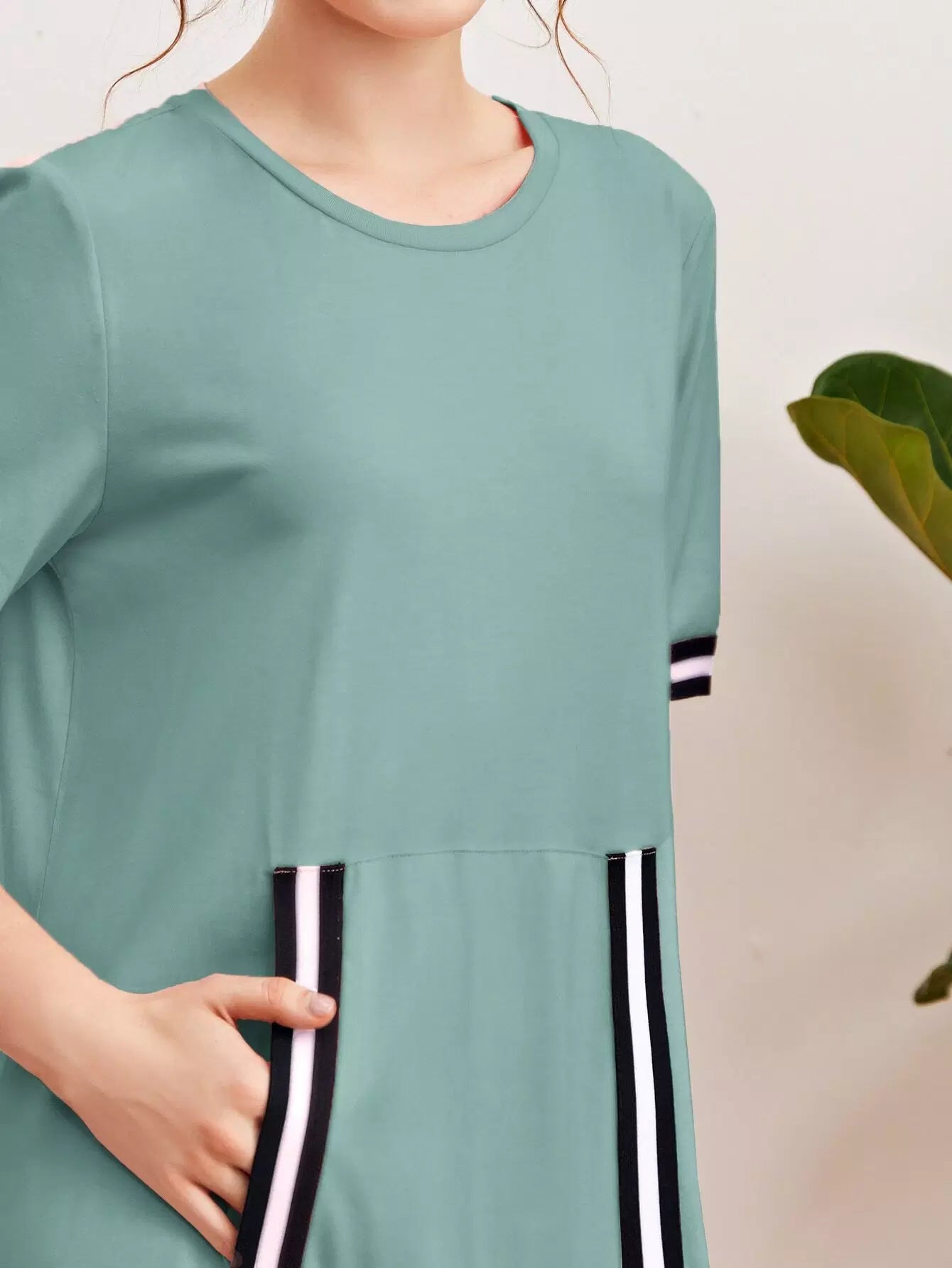 Women - Striped Tape Trim Pouch Pocket Dress