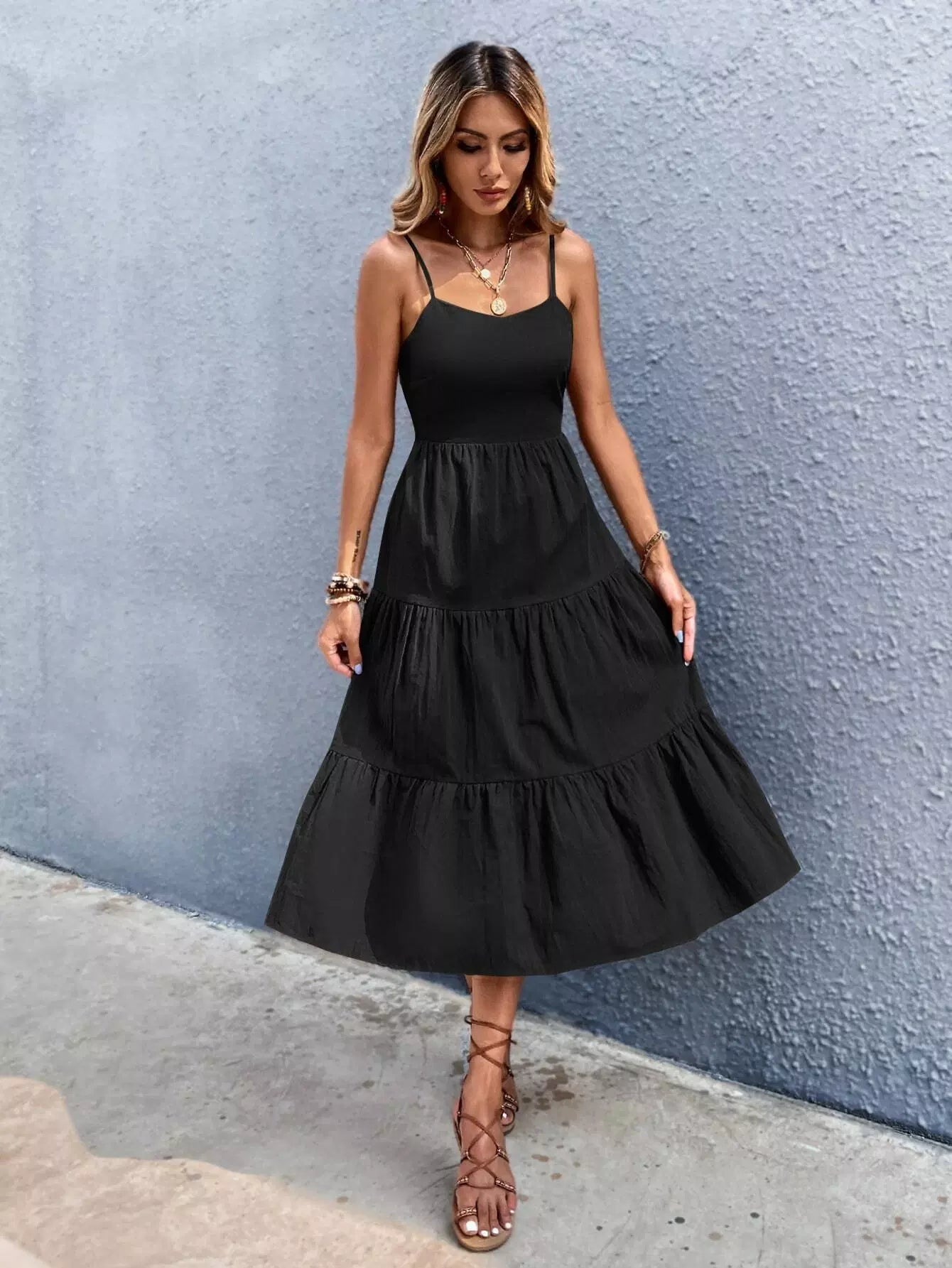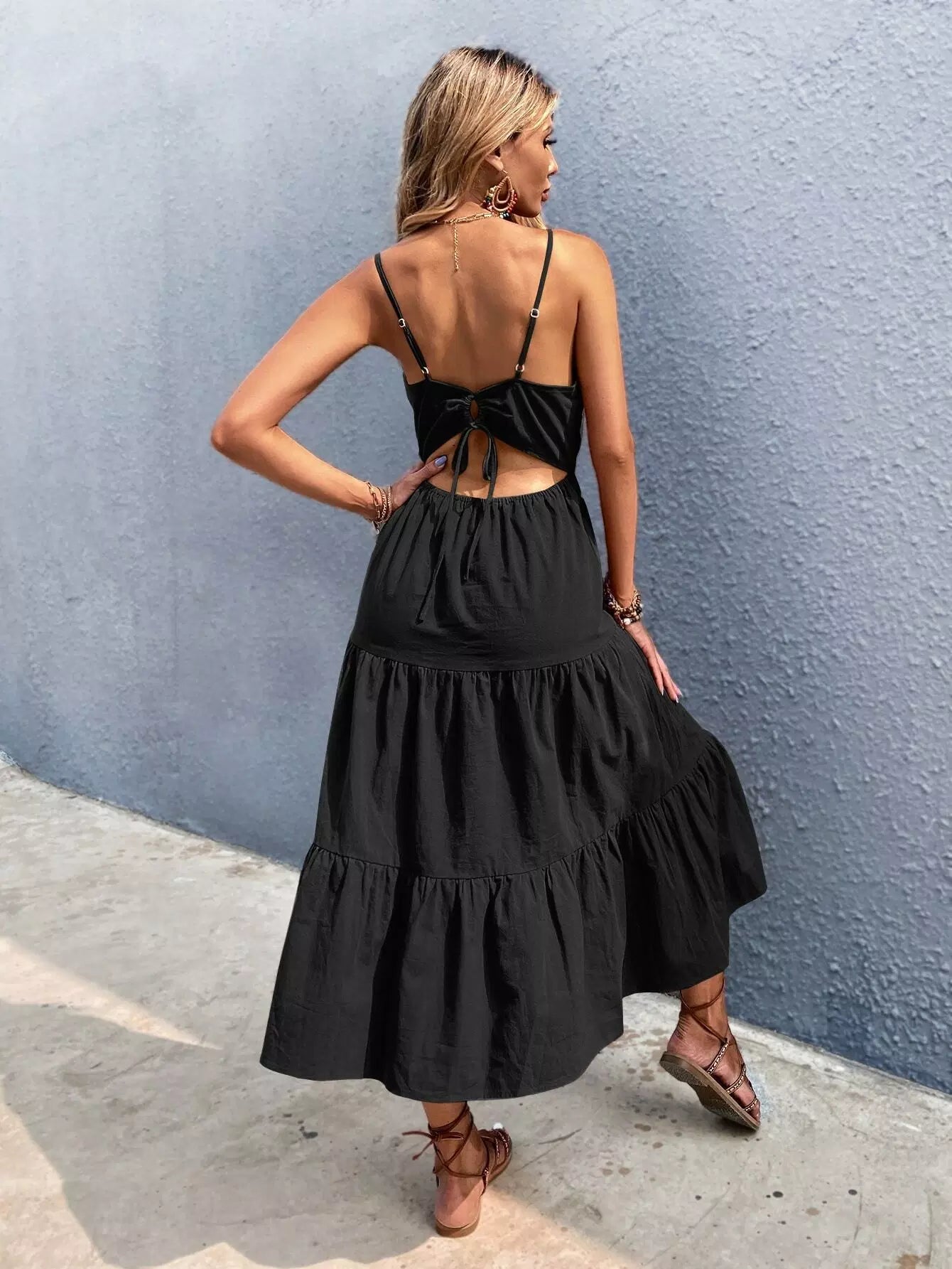 Tie Back Ruffle Hem Cami Dress