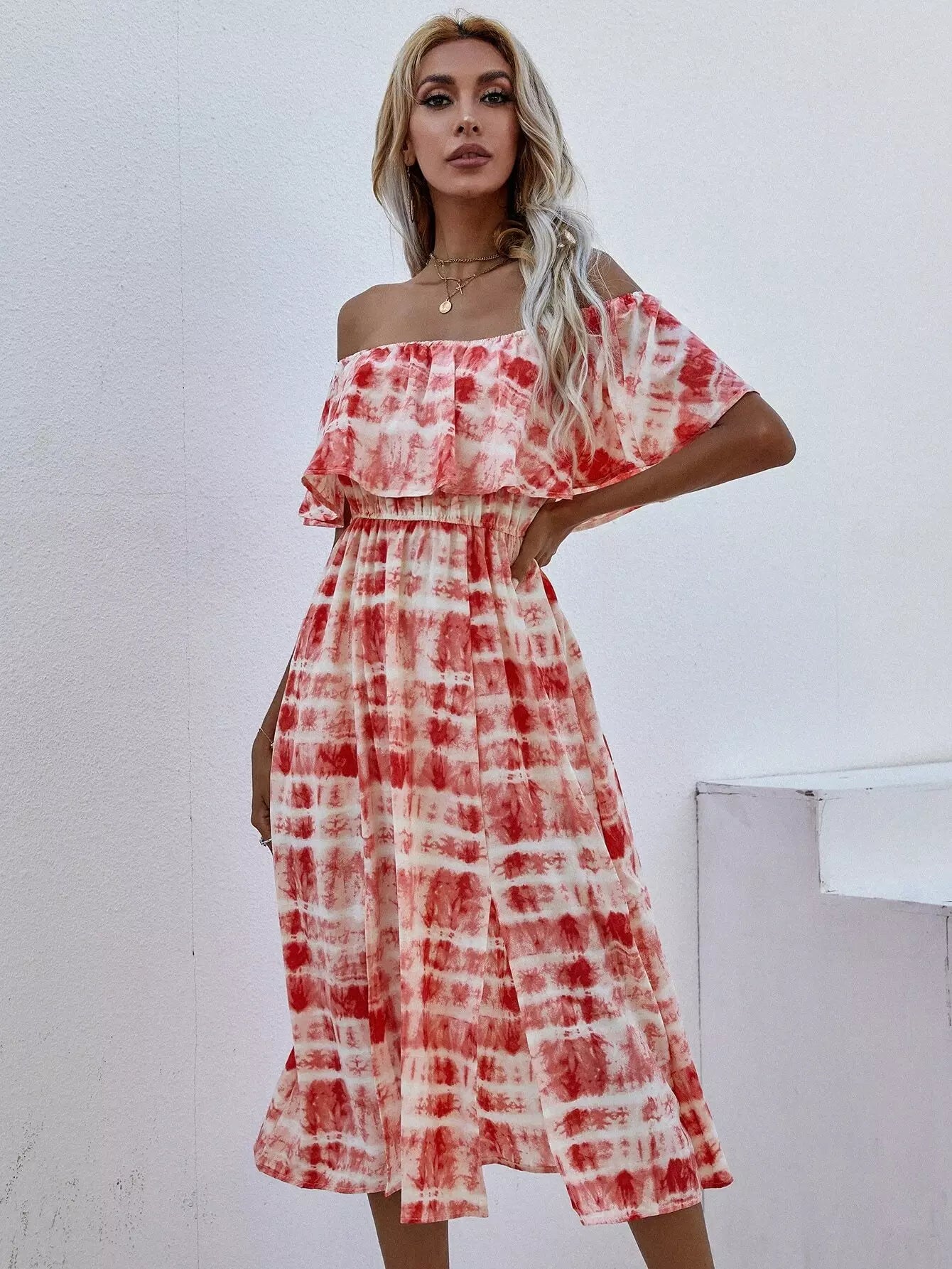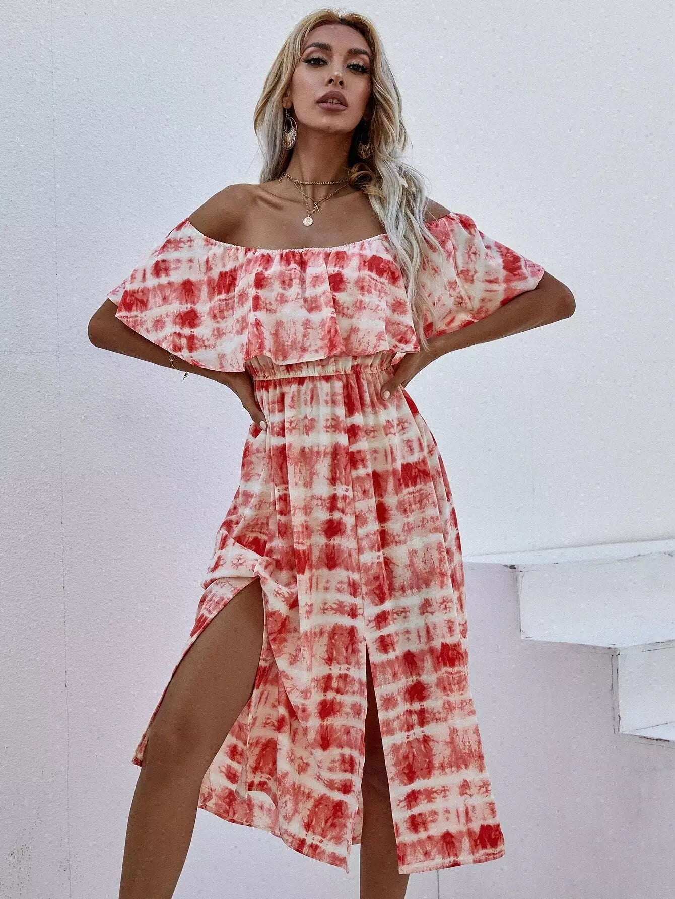 Tie Dye Split Hem Bardot Dress