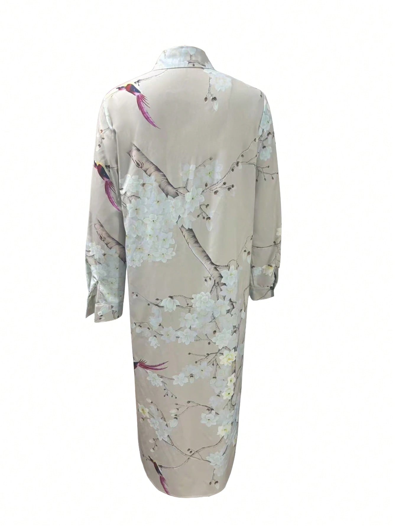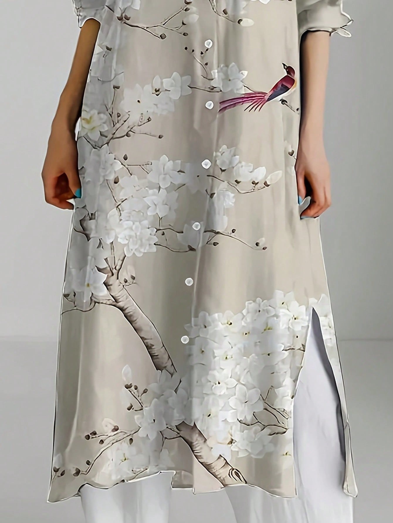 Women's Casual Everyday Button Printed 3/4 Sleeve Midi Dress, Summer
