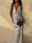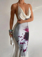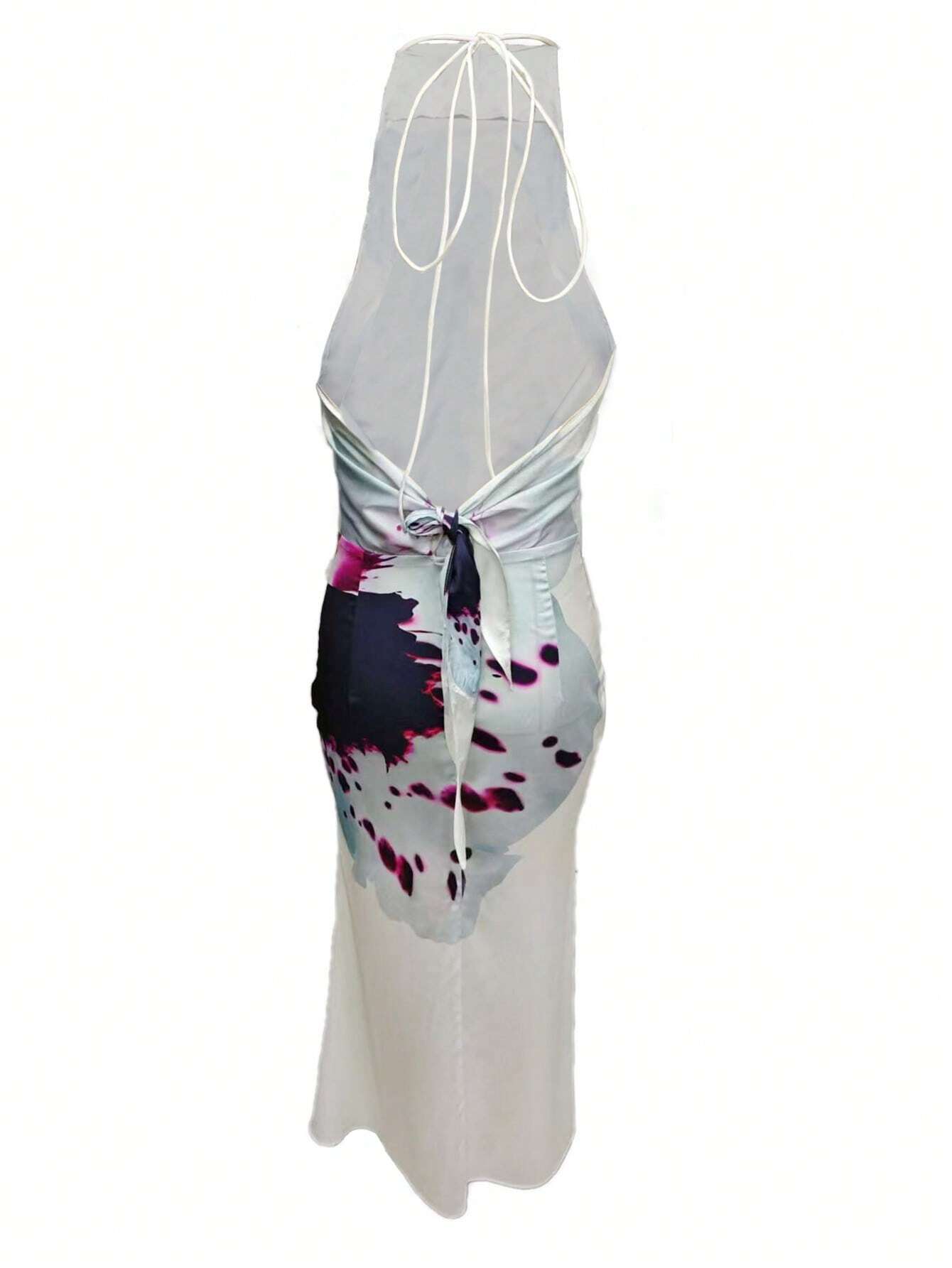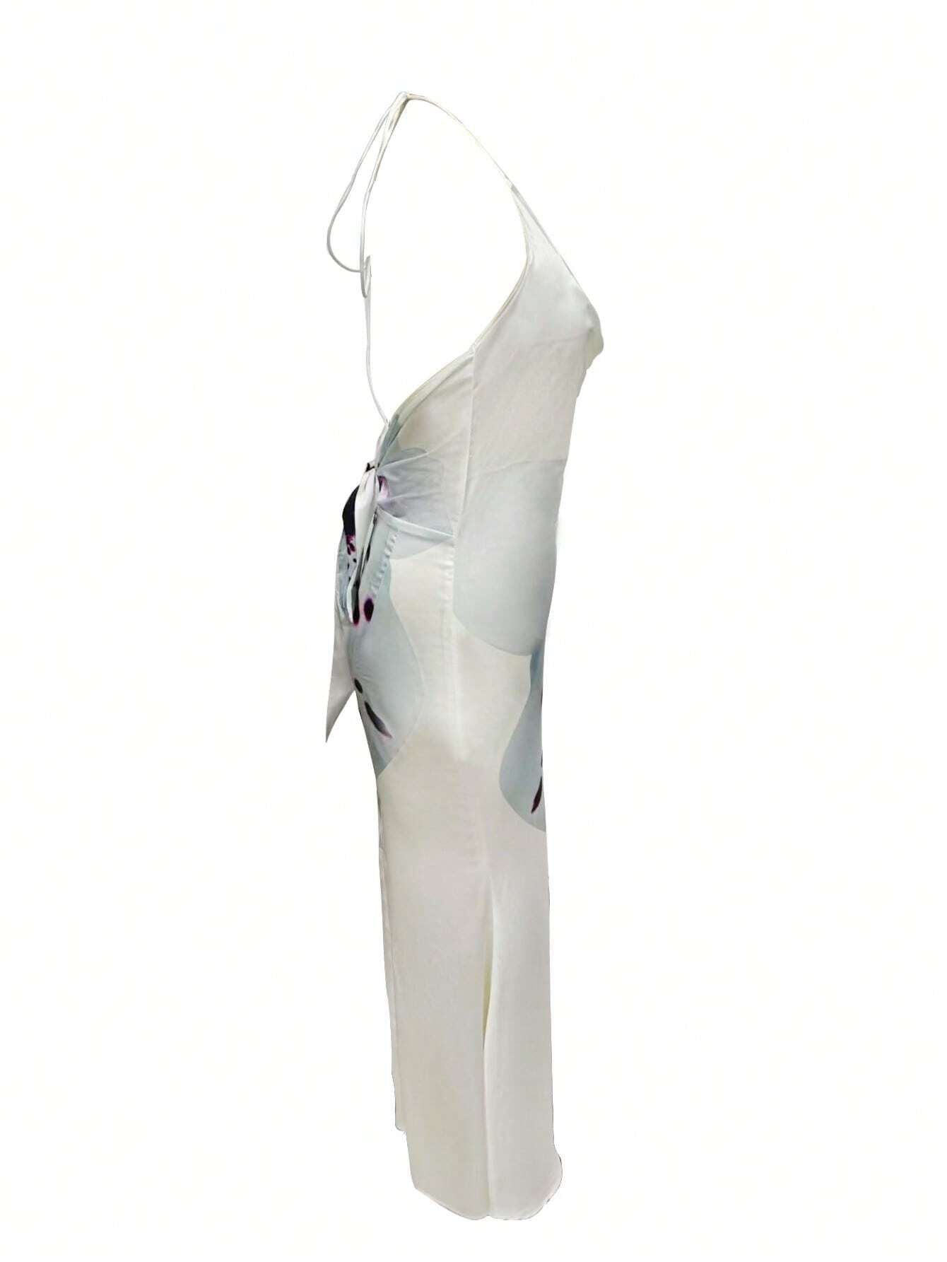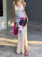 Women's Sexy Draped Neck Satin Floral Print Tie-Up Camisole Dress For Vacation
