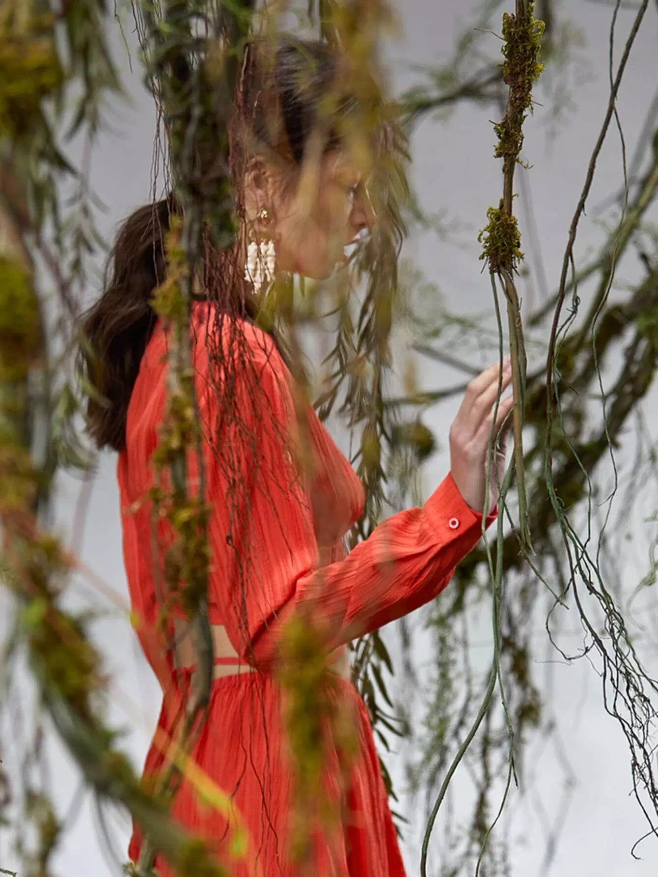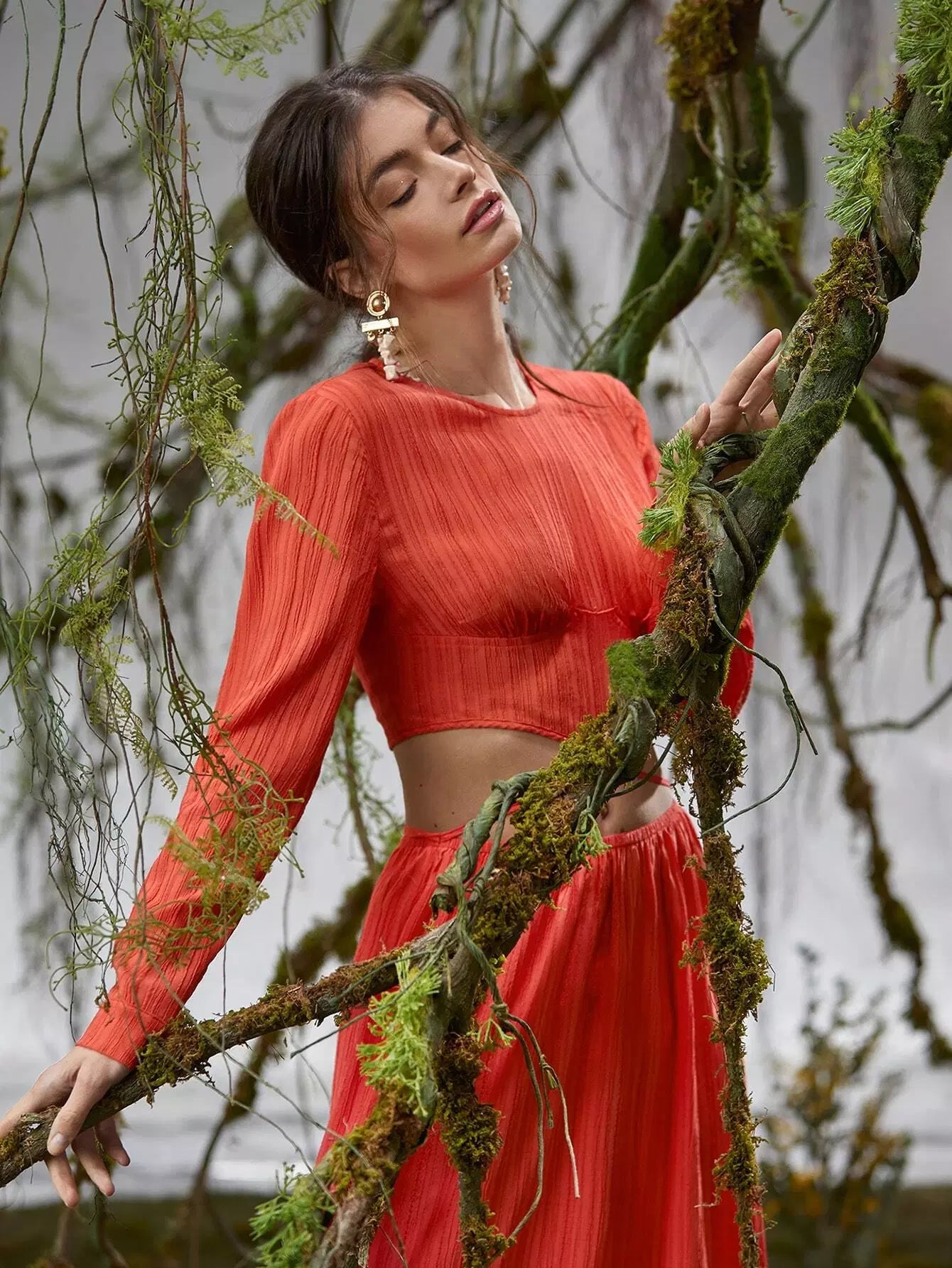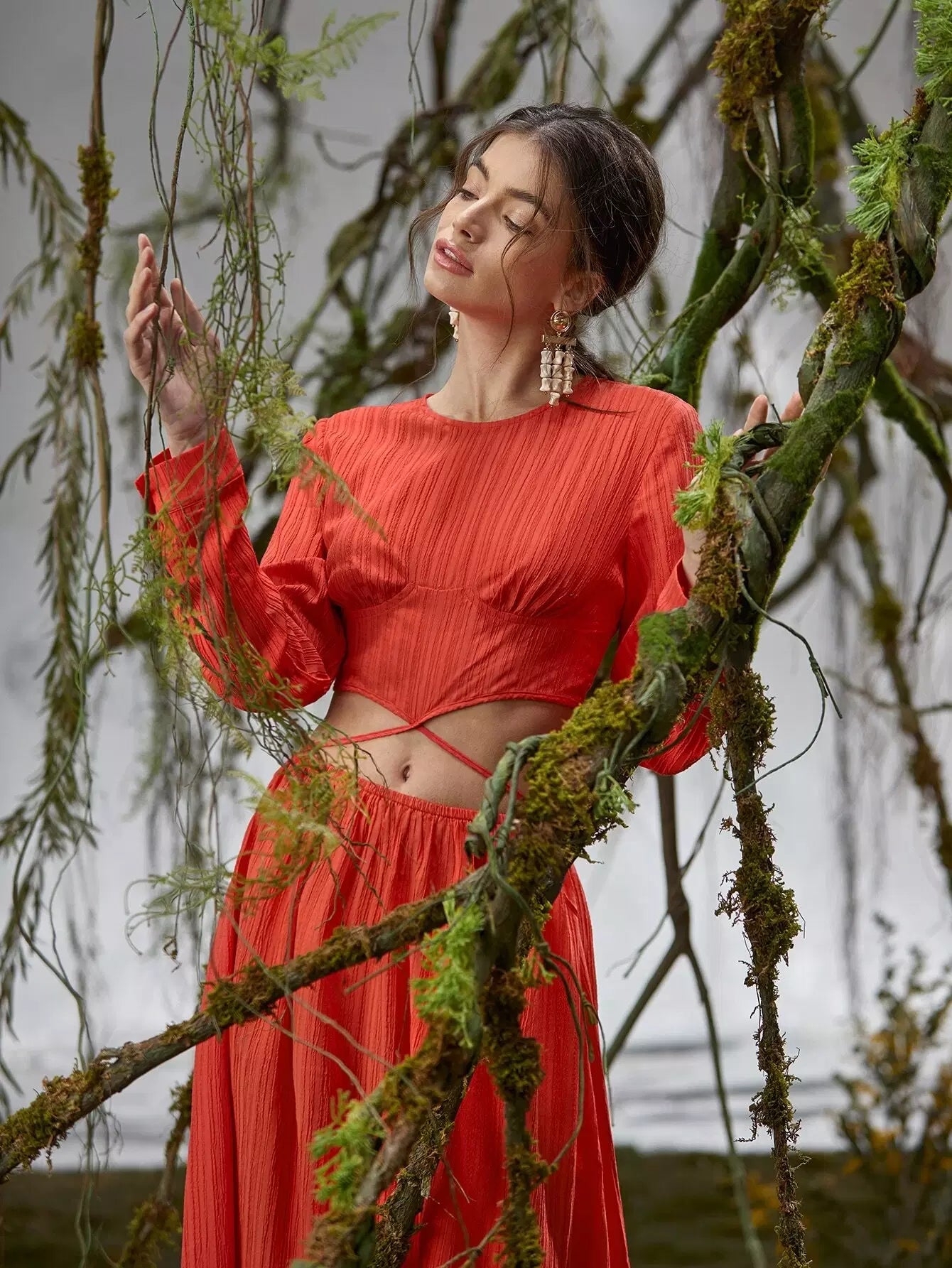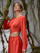 Zipper Back Crisscross Tie Back Cutout Waist Textured Dress