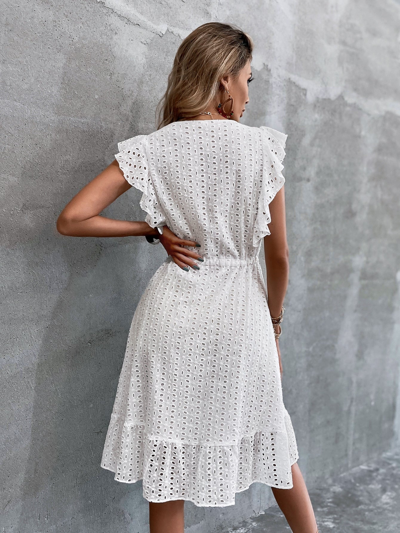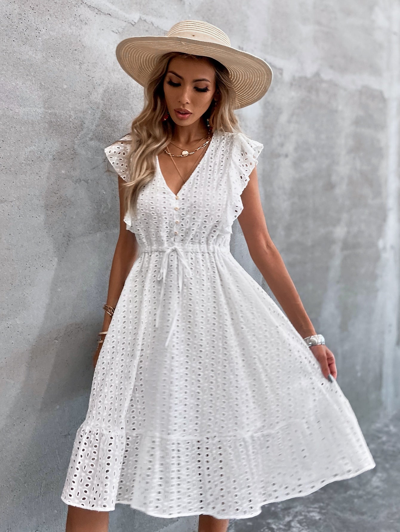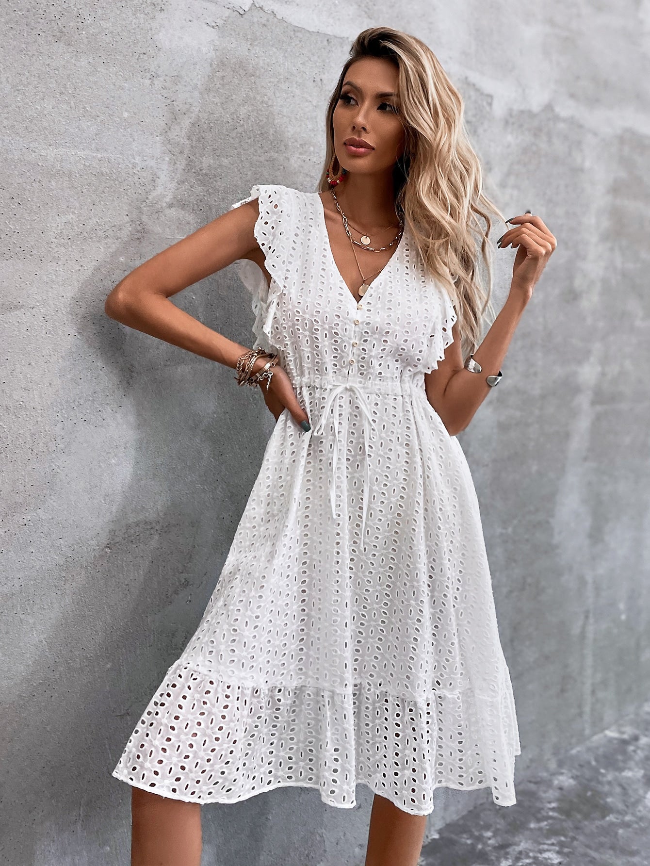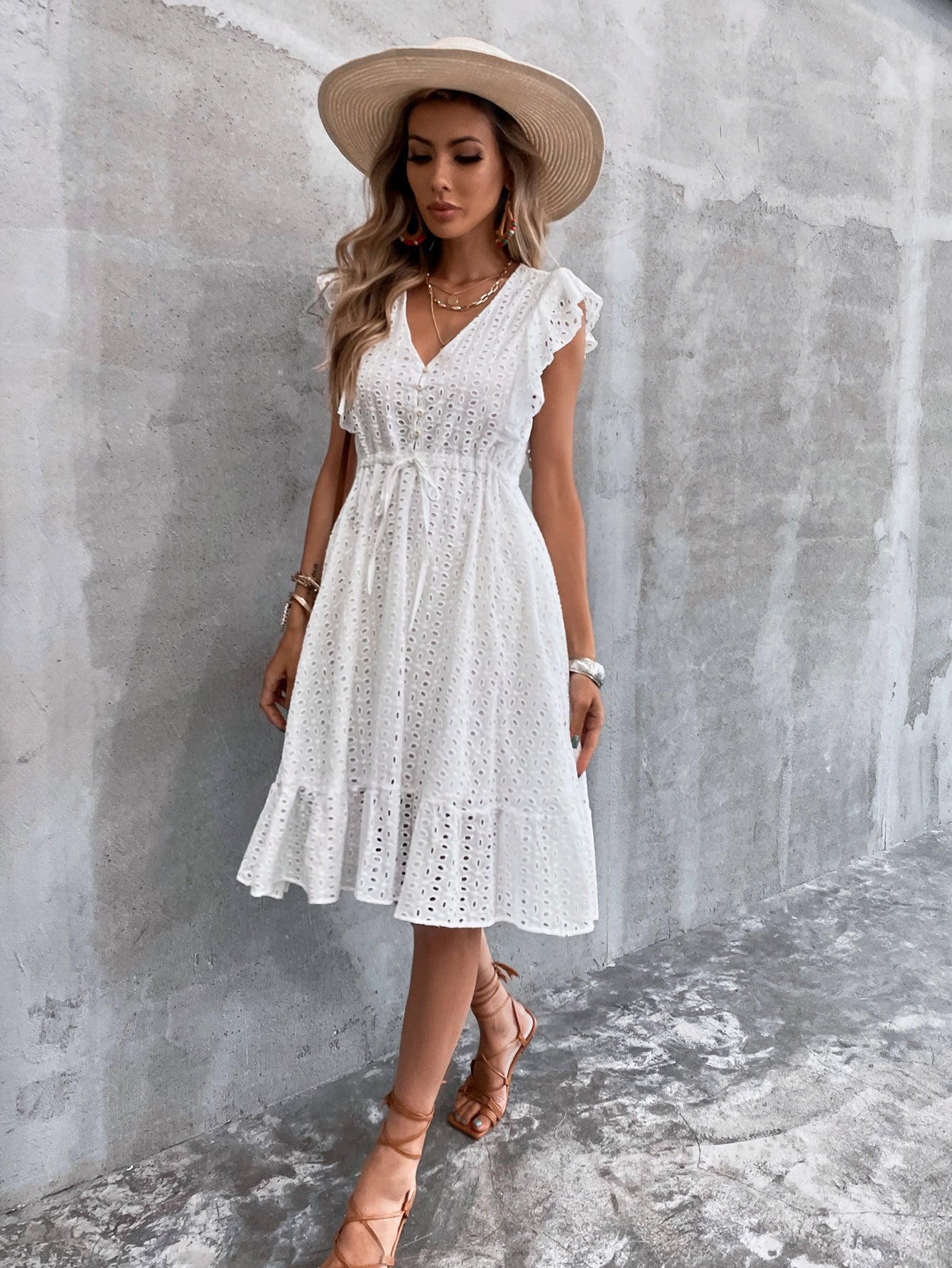 Eyelet Embroidery Ruffle Hem A-line Dress