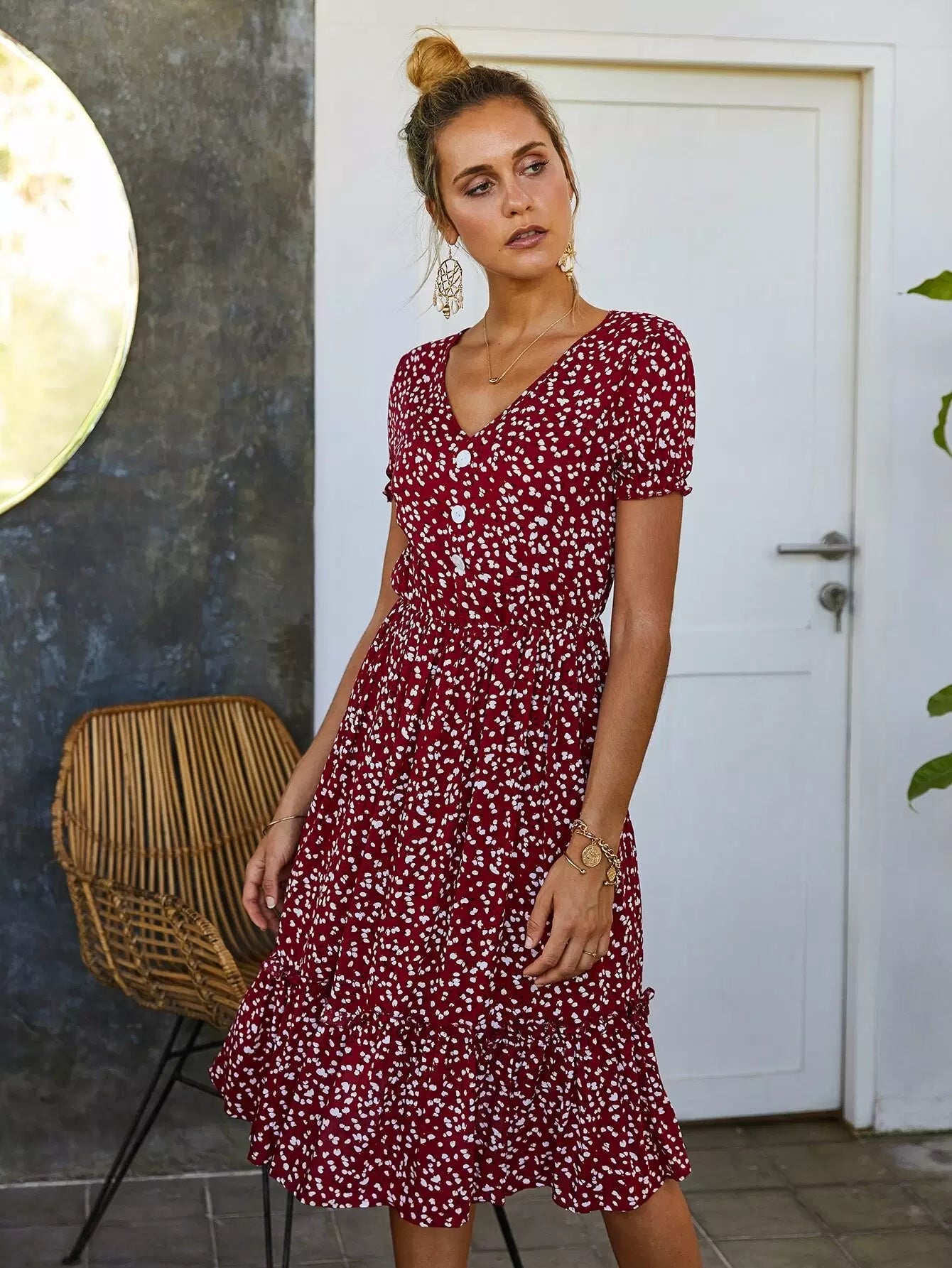 All Over Print Frill Trim Dress