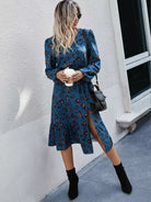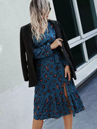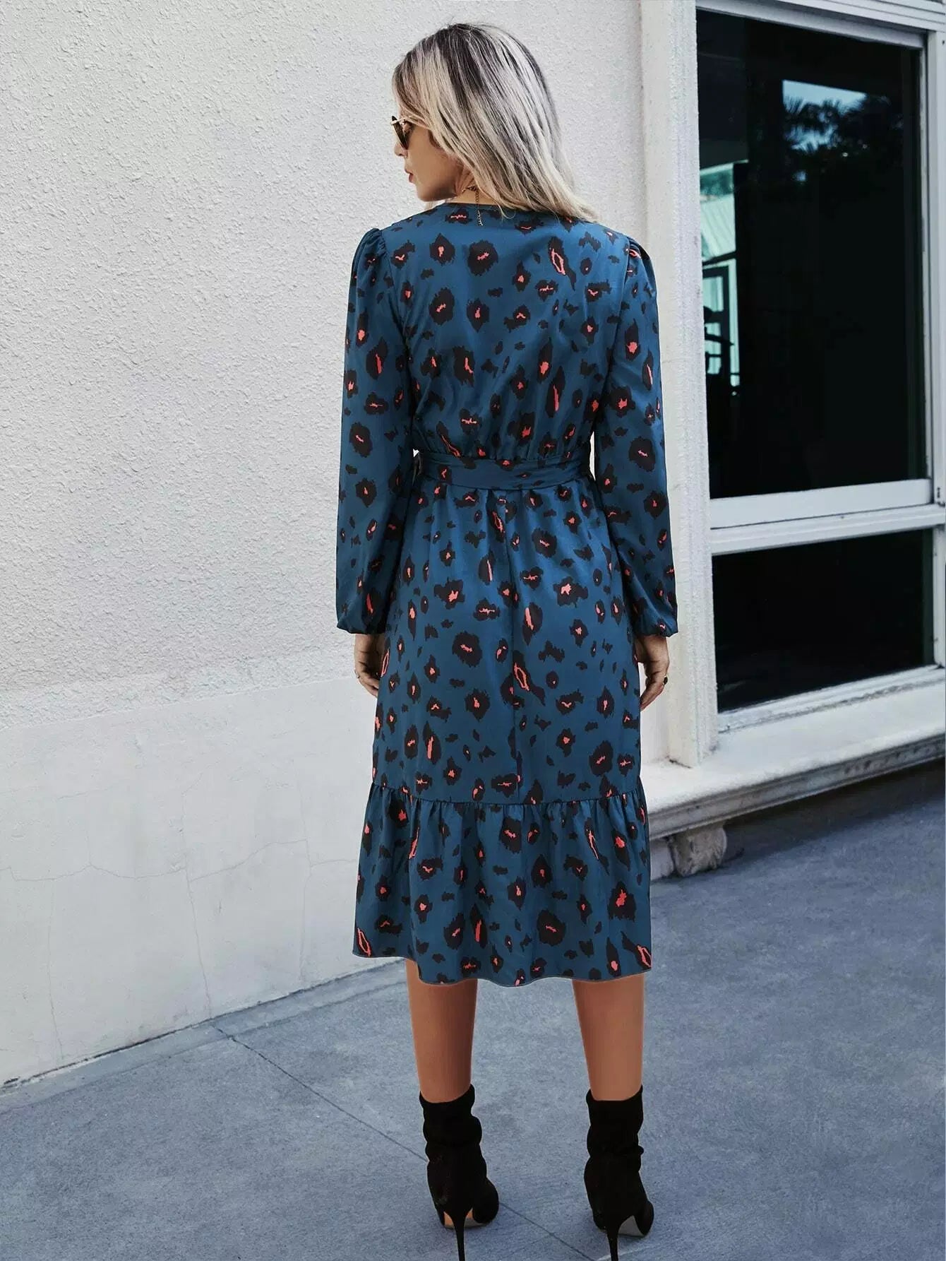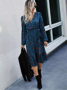 Allover Print Bishop Sleeve Ruffle Hem Dress Without Belt