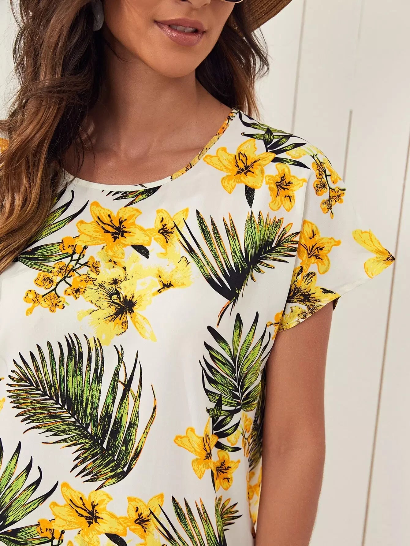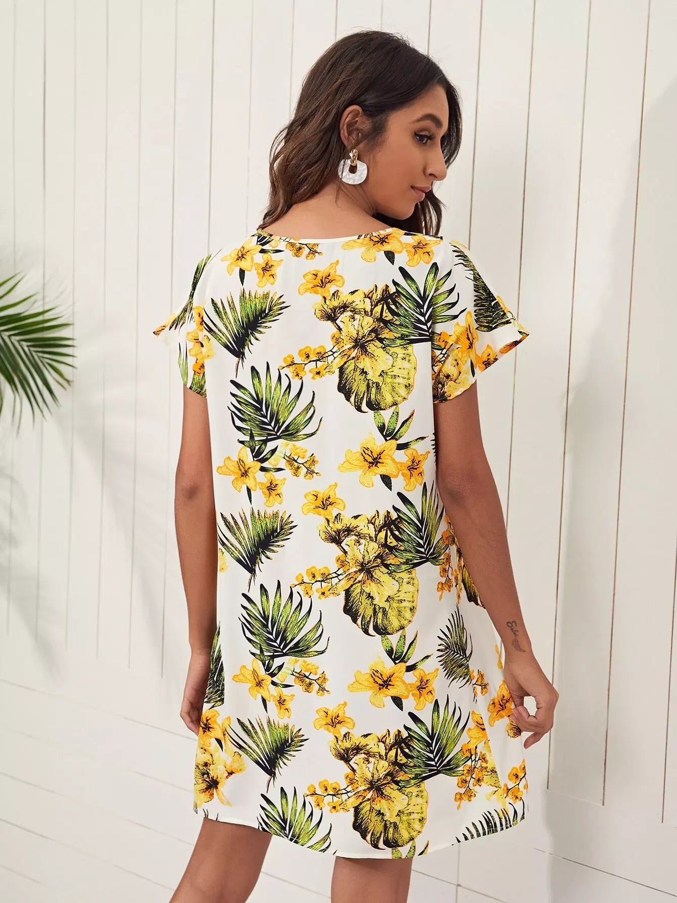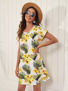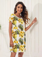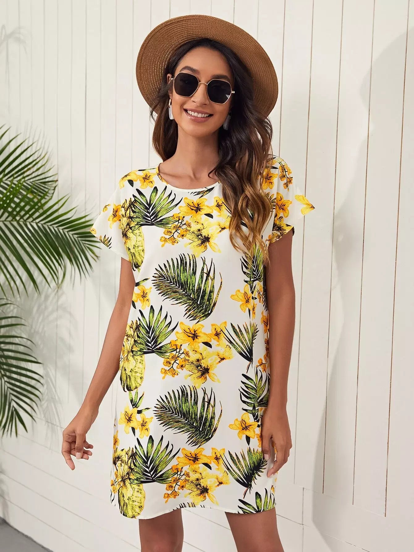 Batwing Sleeve Tropical Print Dress