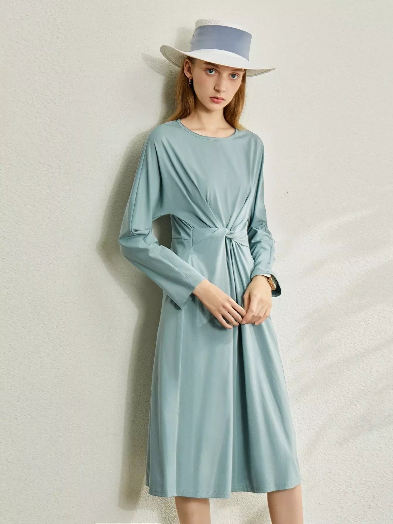 Women - Batwing Sleeve Twist Front Dress