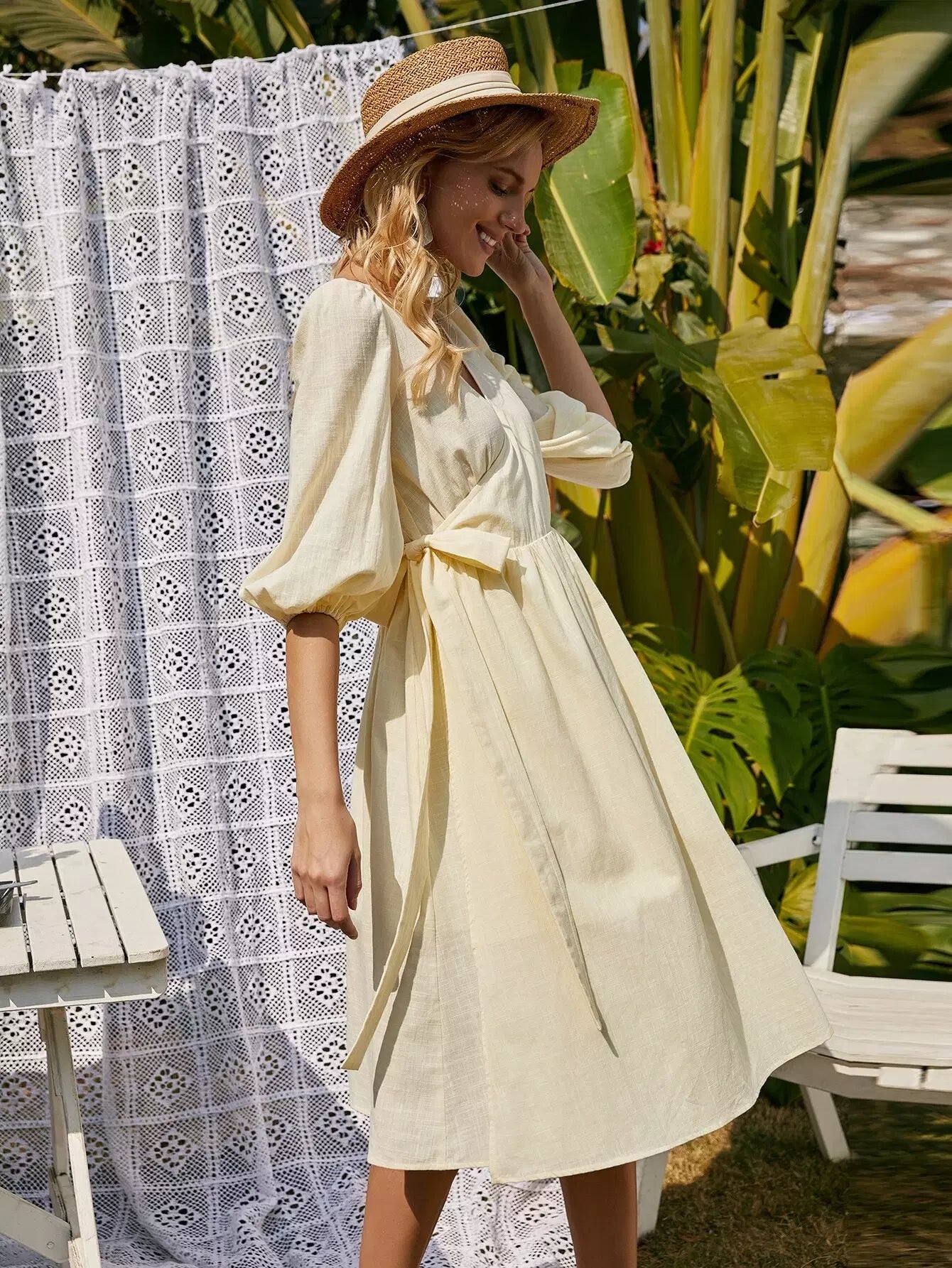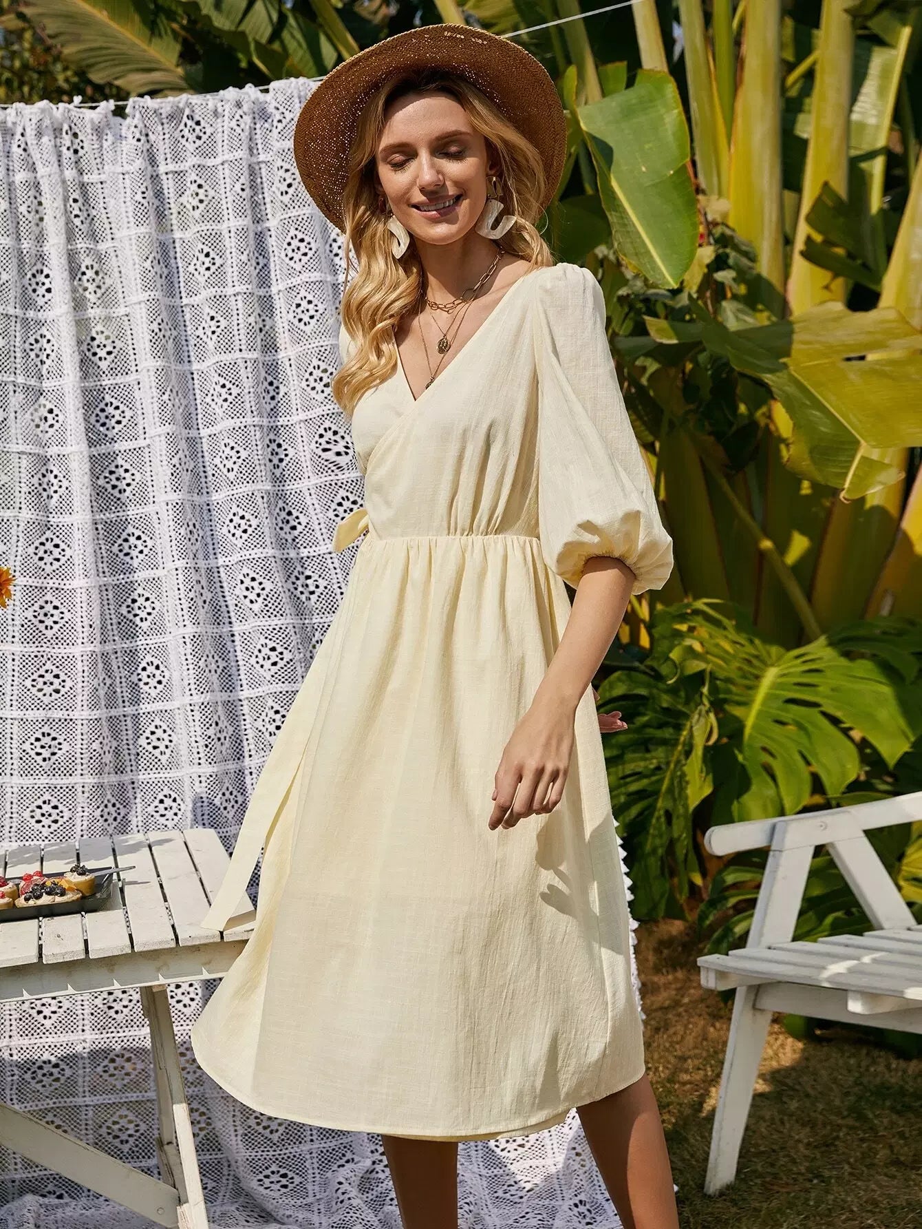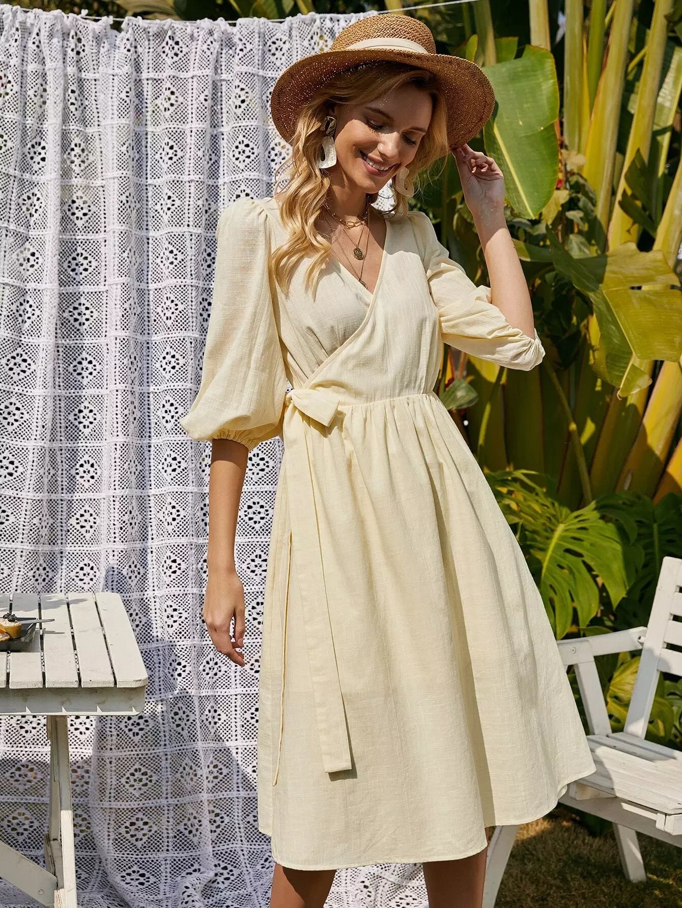 Women - Bishop Sleeve Tie Side Wrap Dress