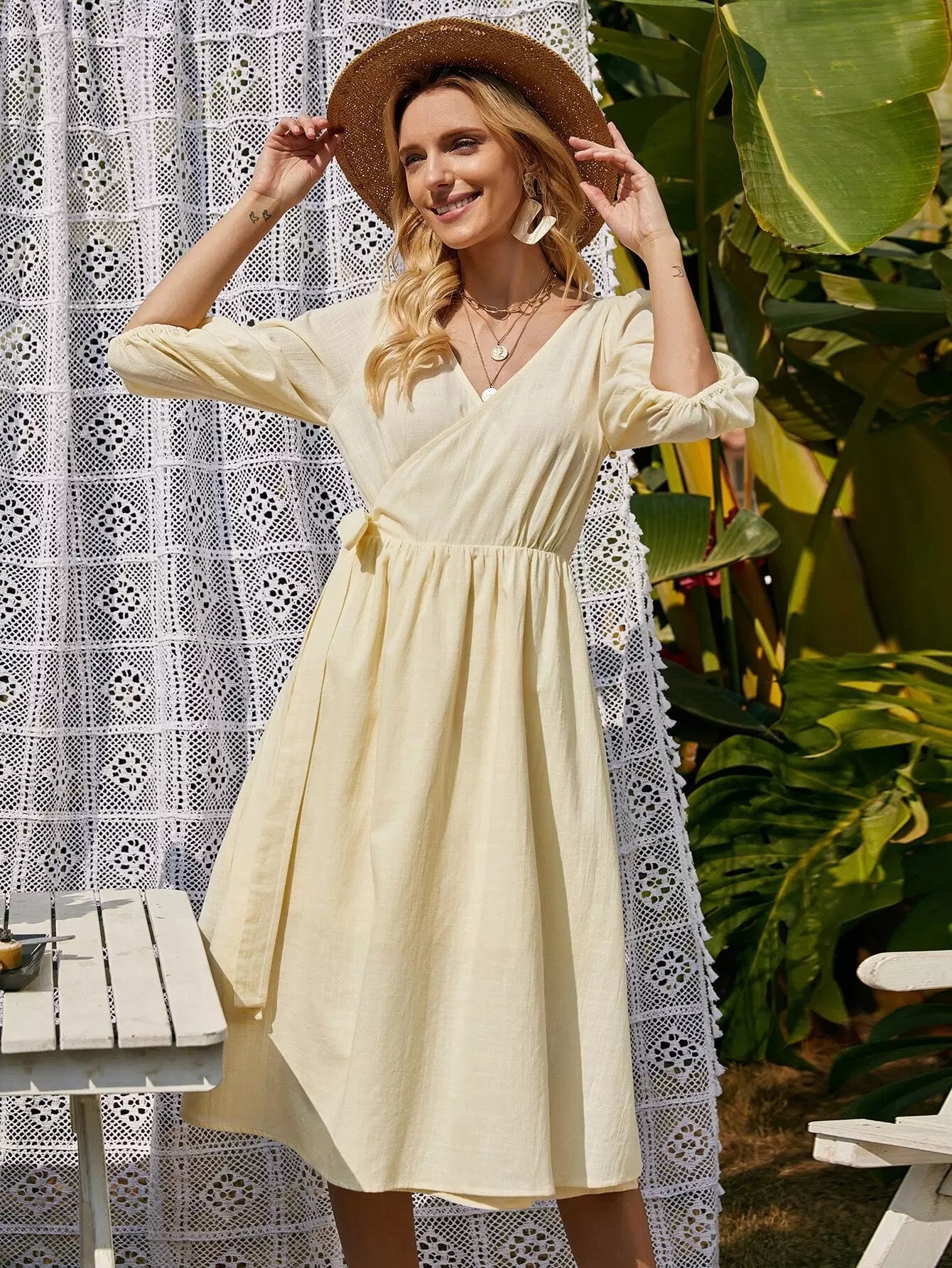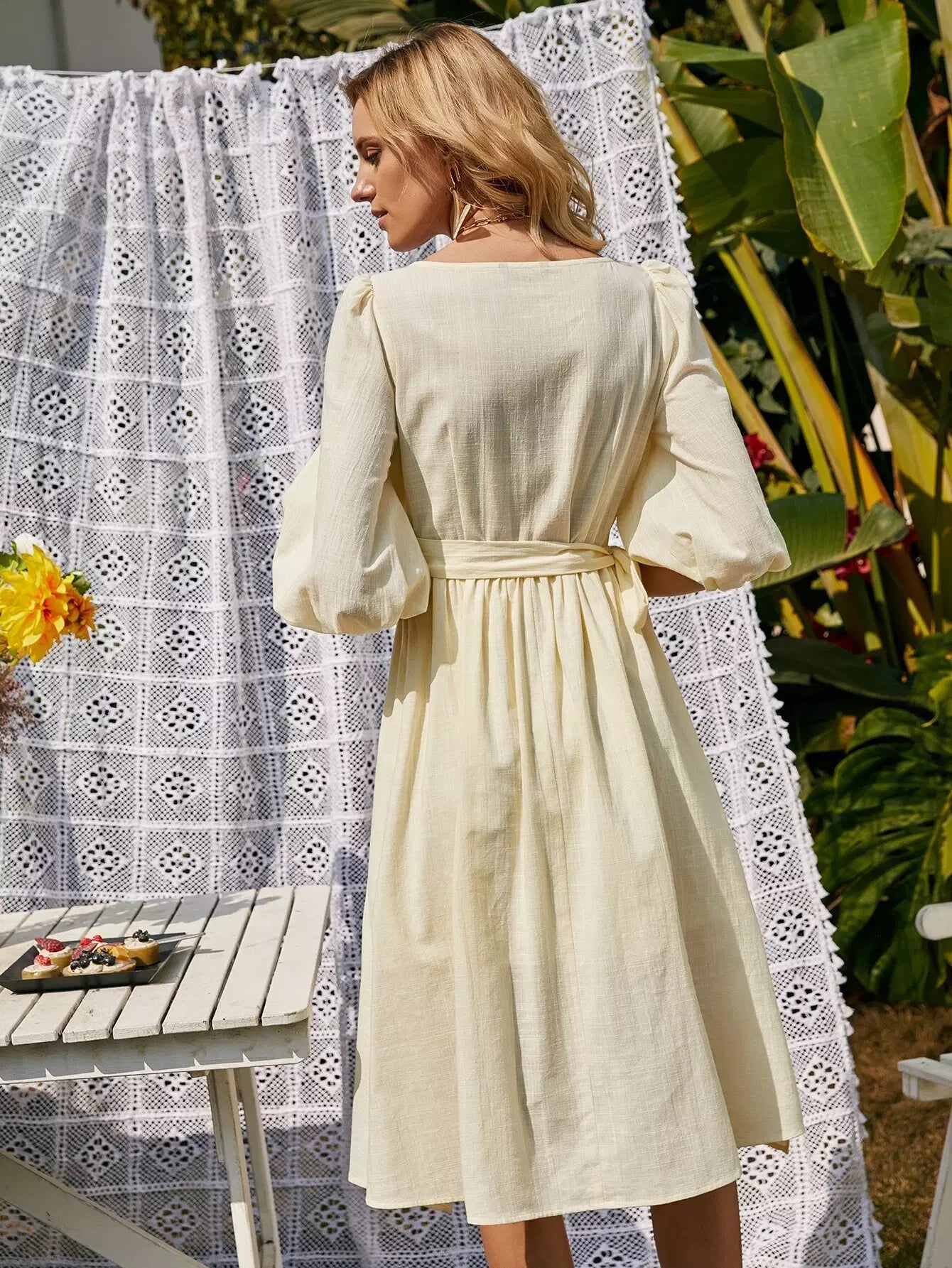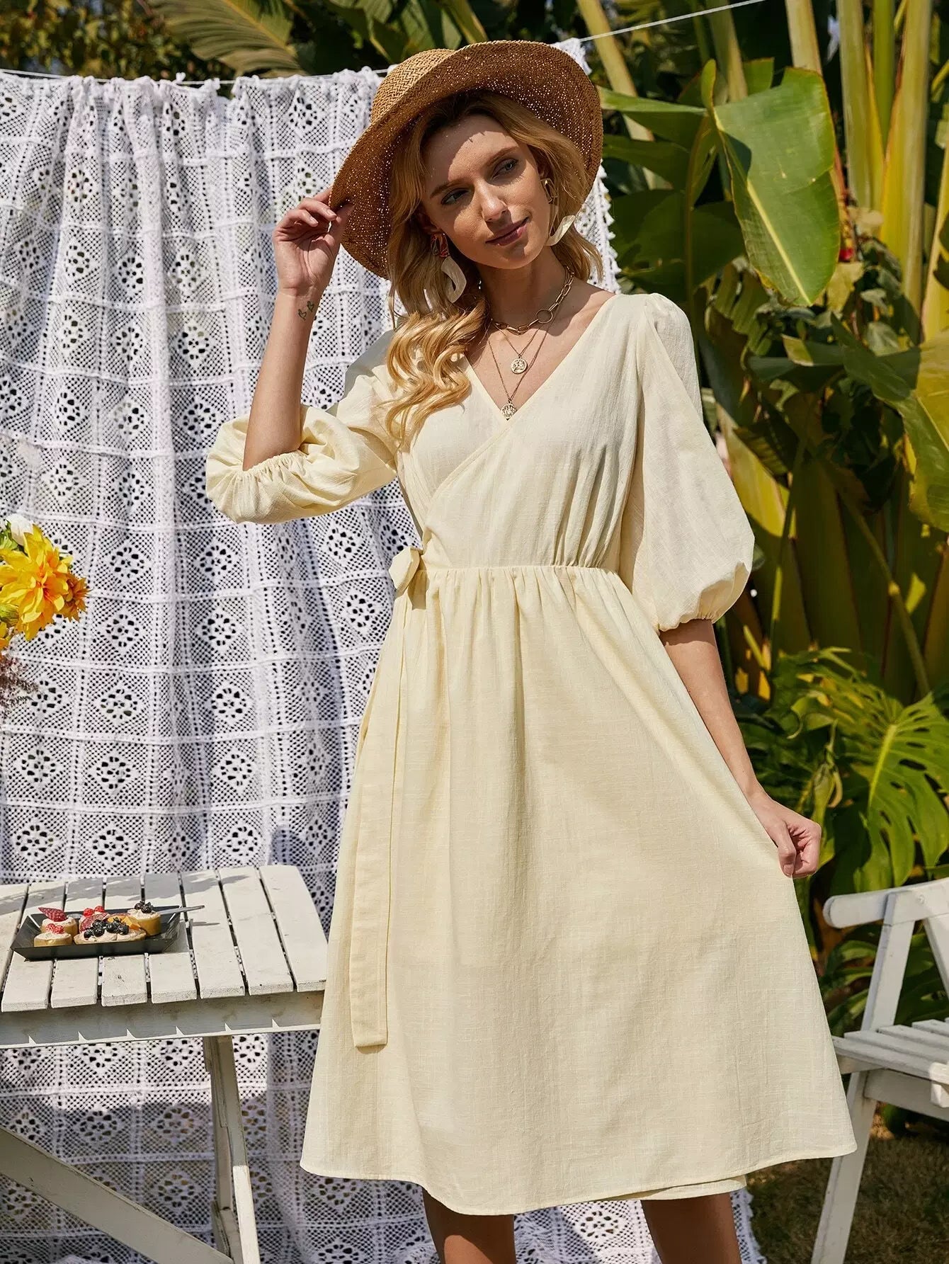 Women - Bishop Sleeve Tie Side Wrap Dress