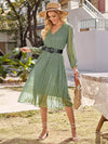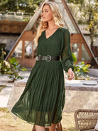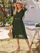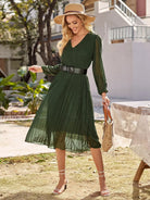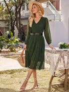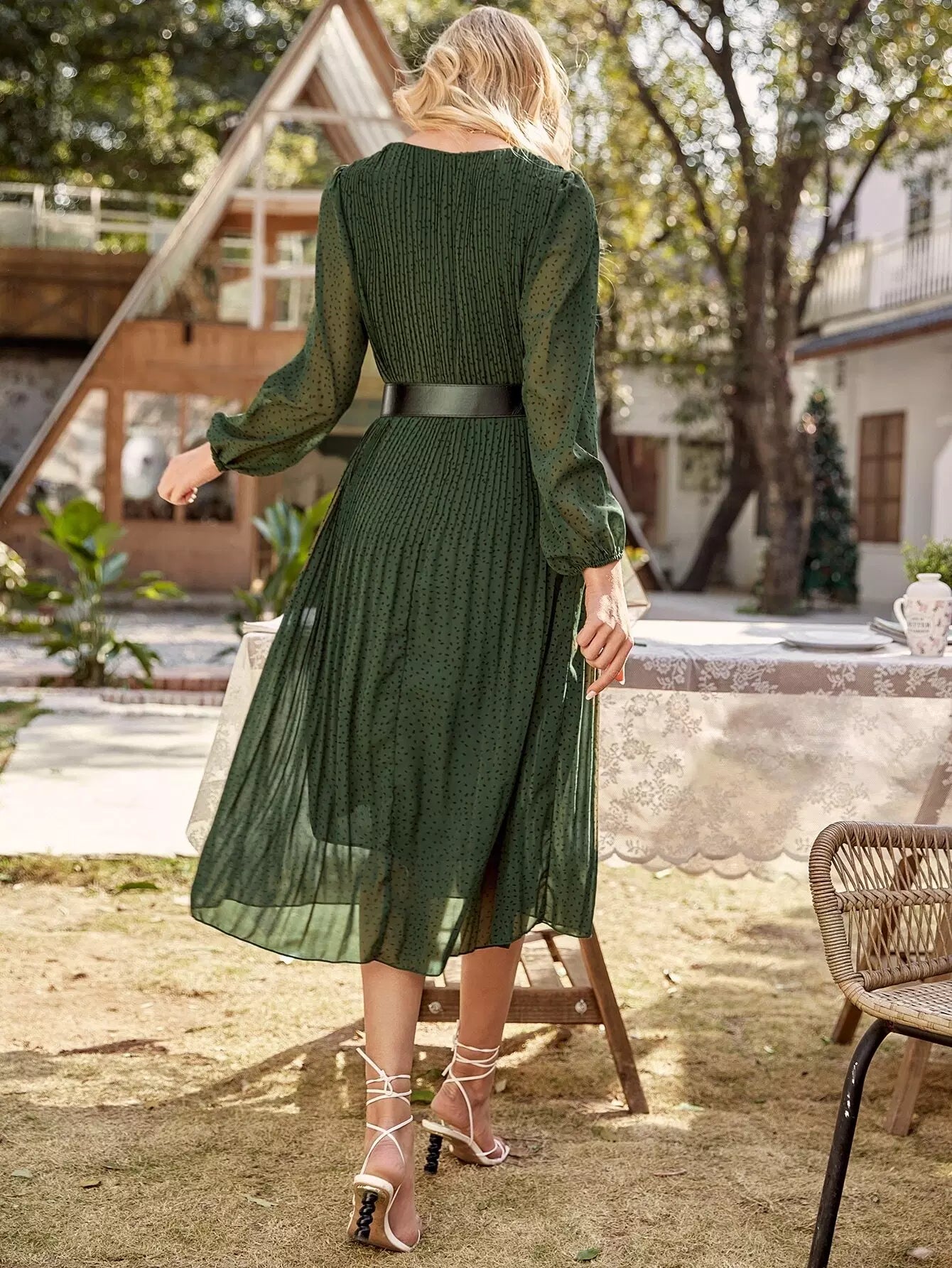 Chiffon Bishop Sleeve Pleated Dress Without Belt
