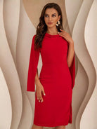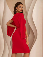 Cloak Sleeve Draped Collar Slit Thigh Bodycon Dress