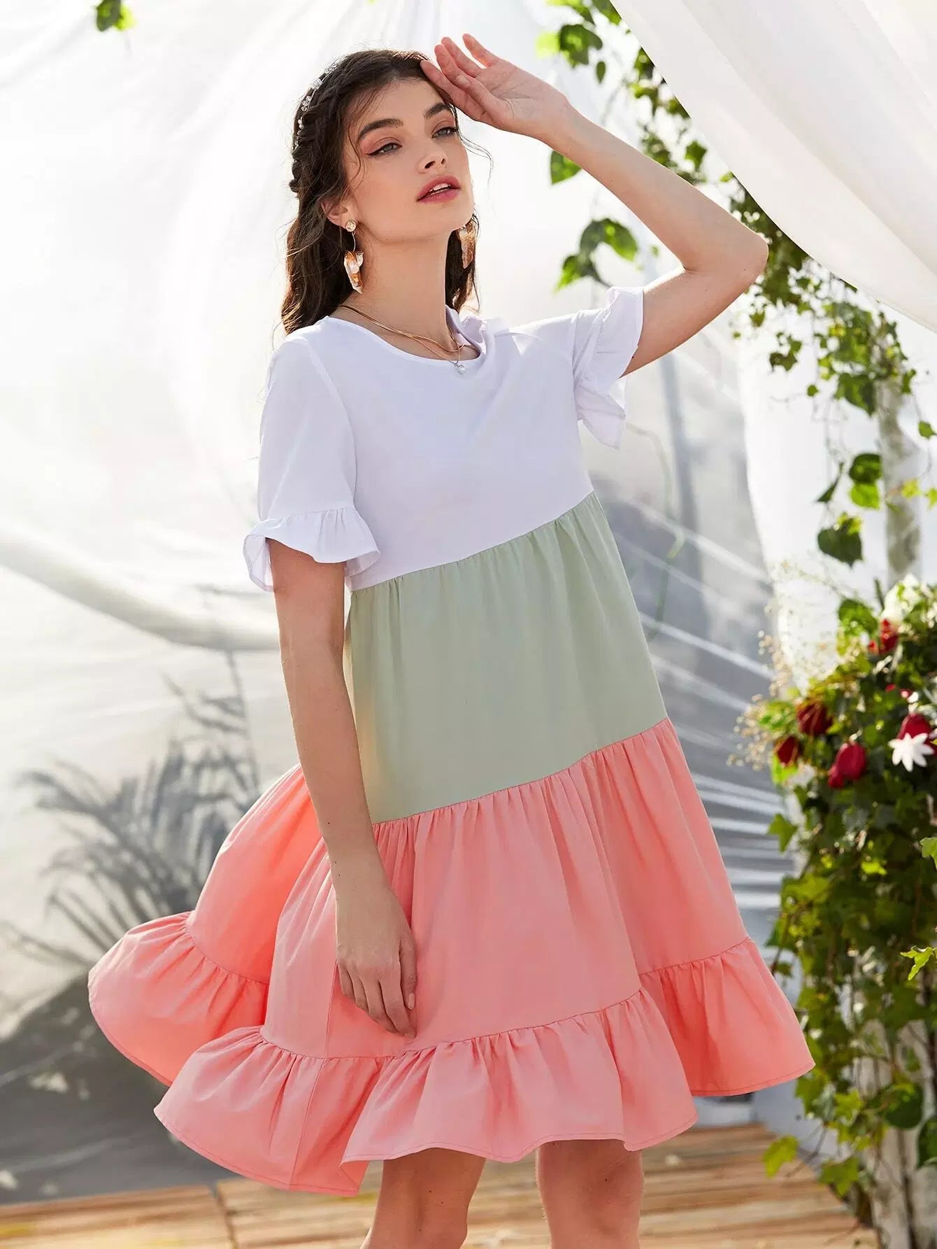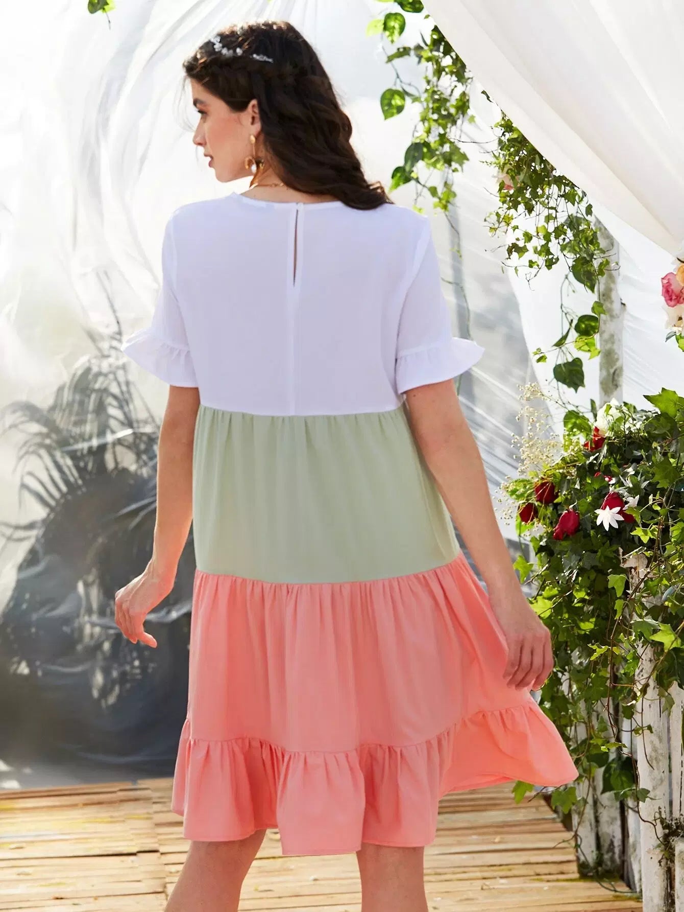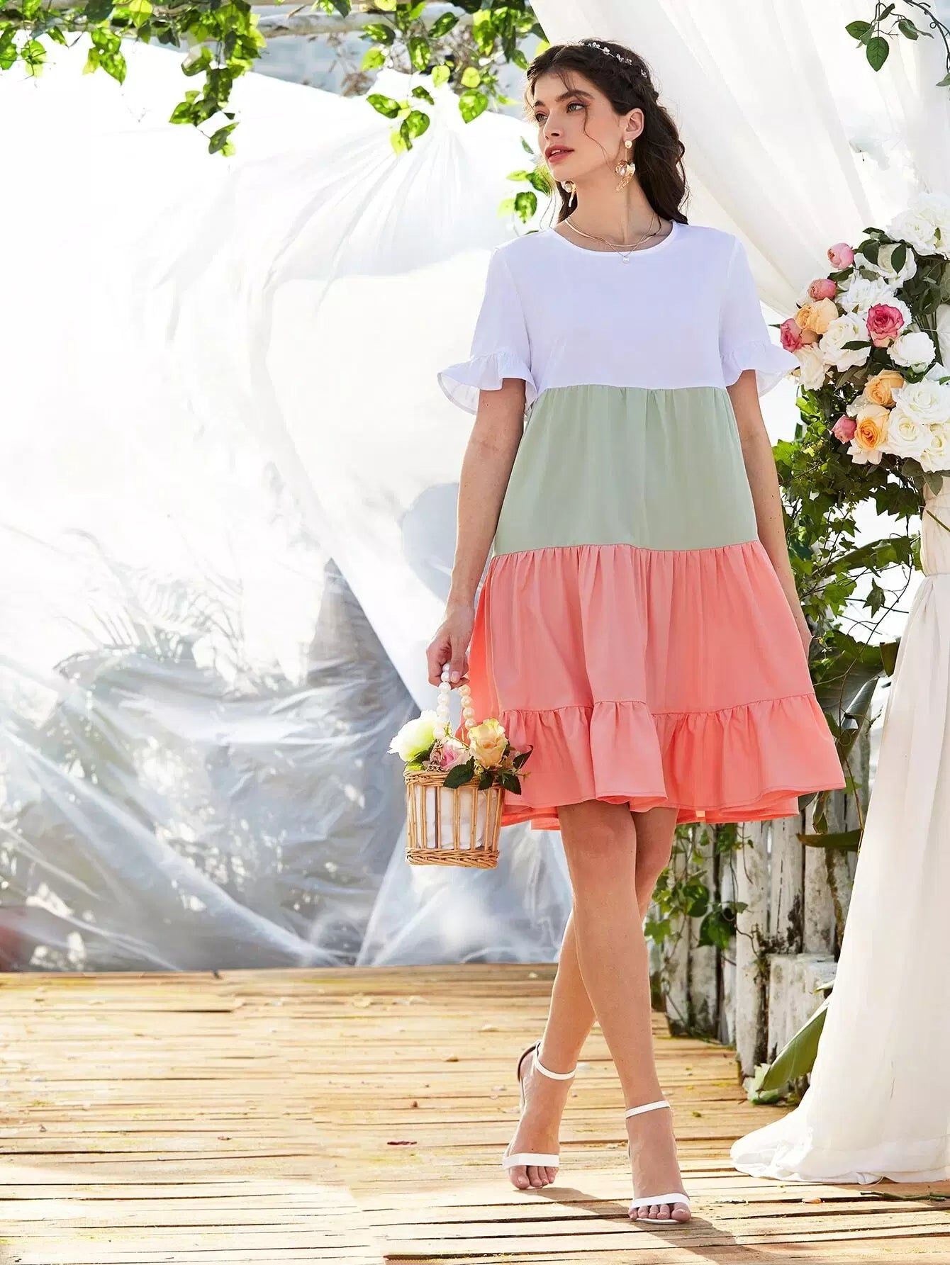 Women - Cut And Sew Ruffle Hem Smock Dress