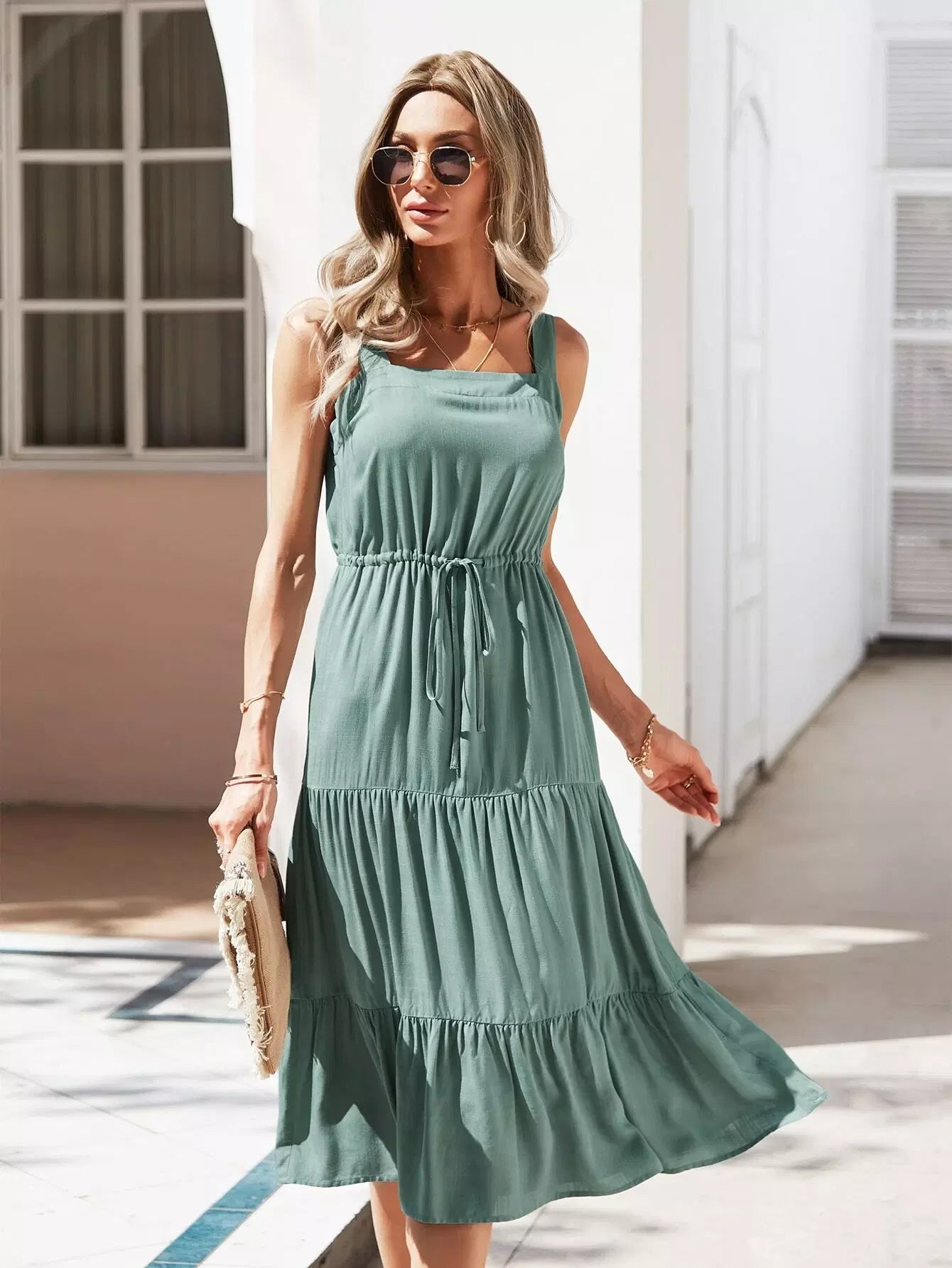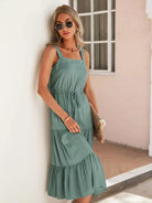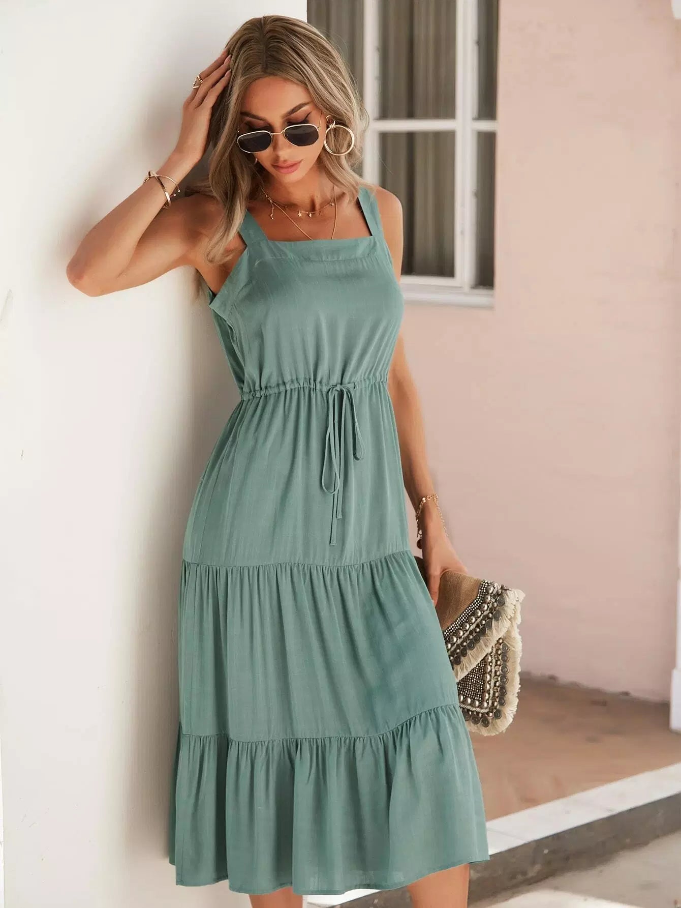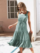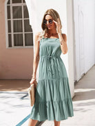Drawstring Waist Ruffle Hem Dress