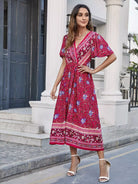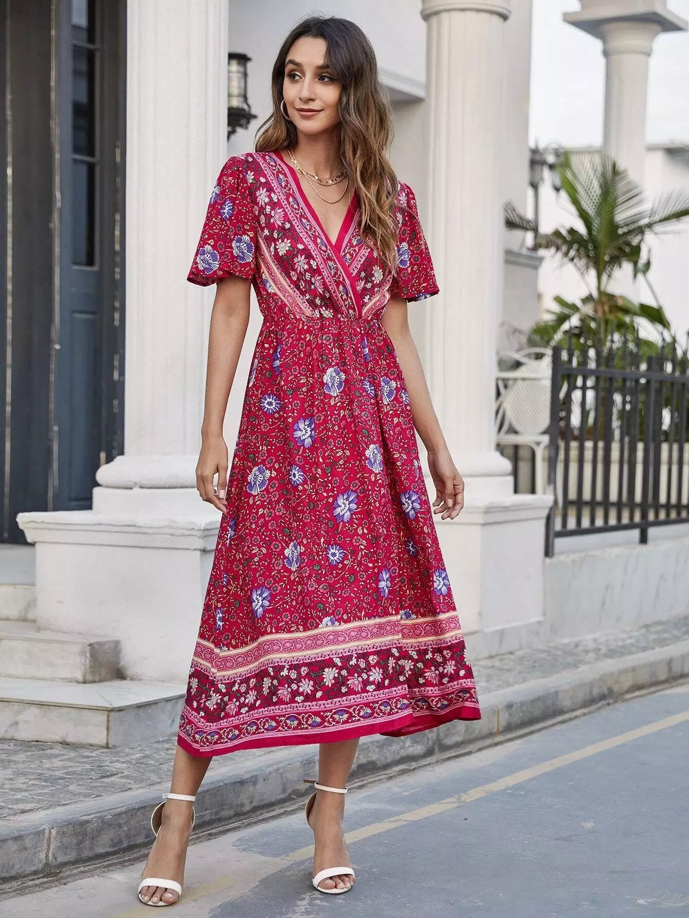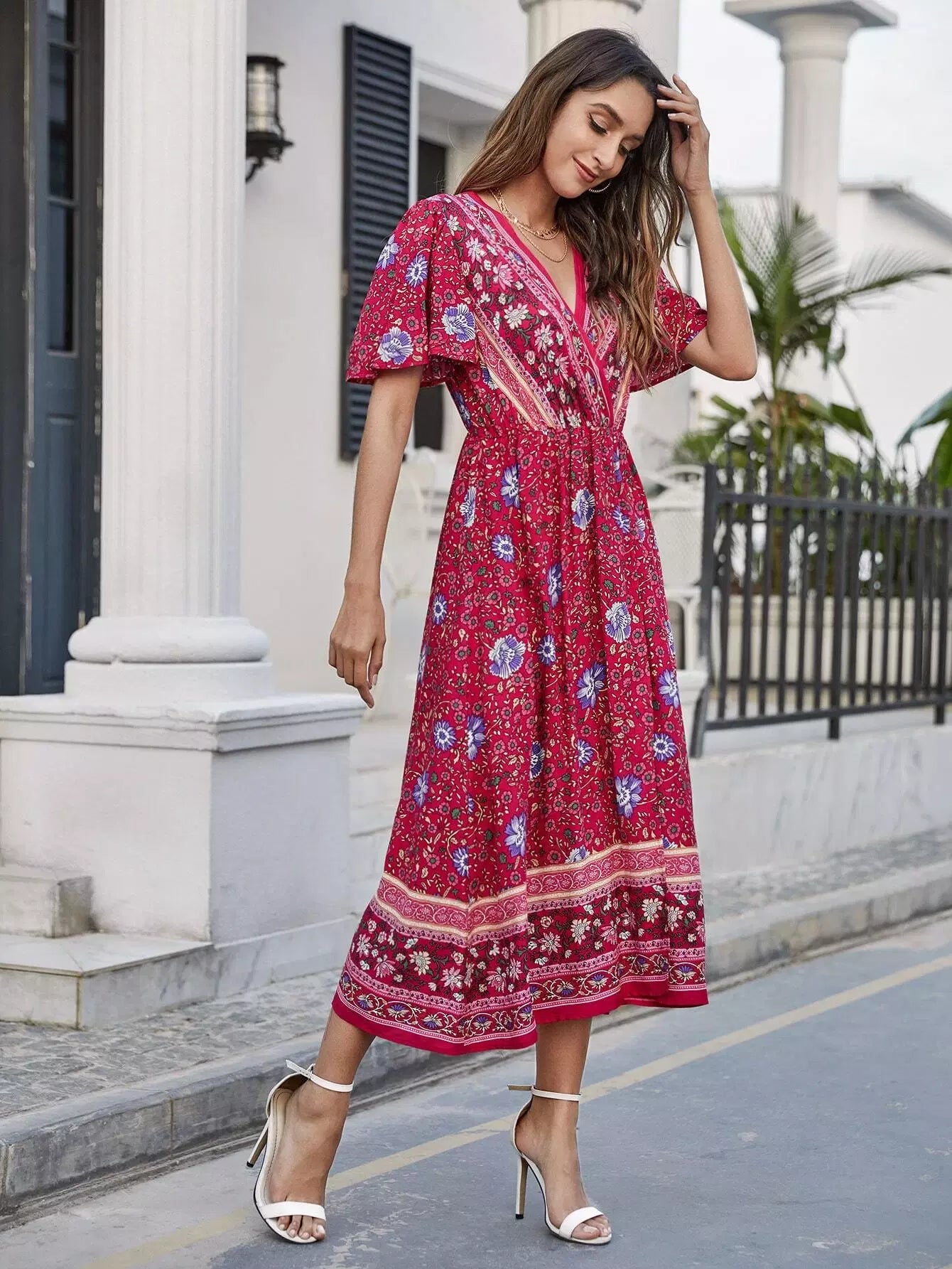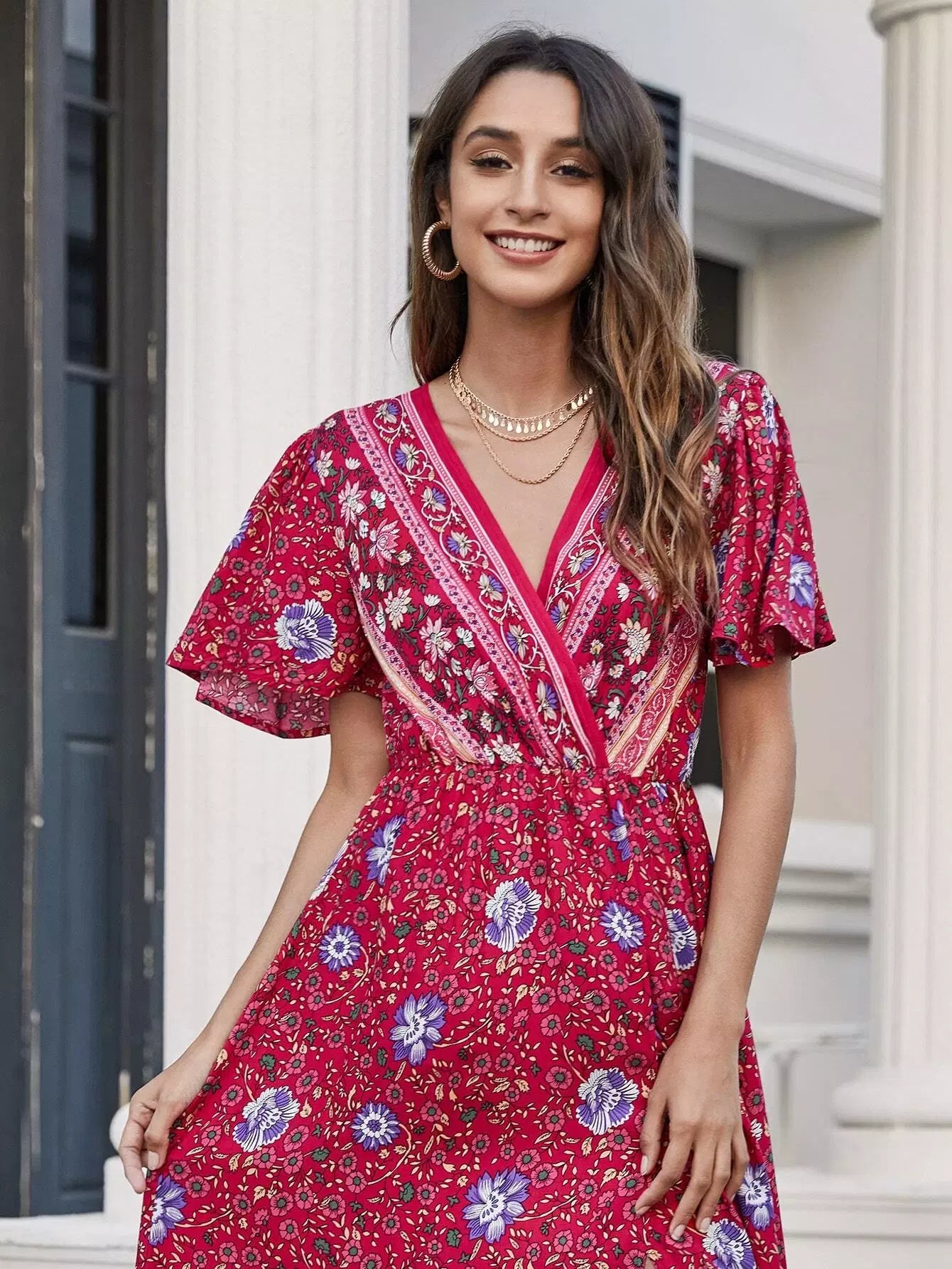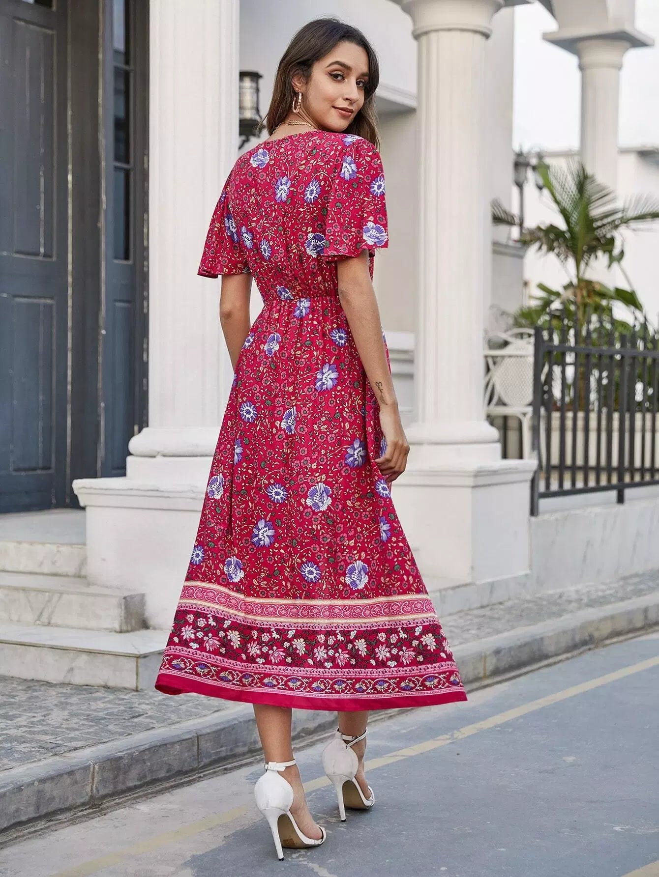 Women - Flounce Sleeve Surplice Neck Floral Dress