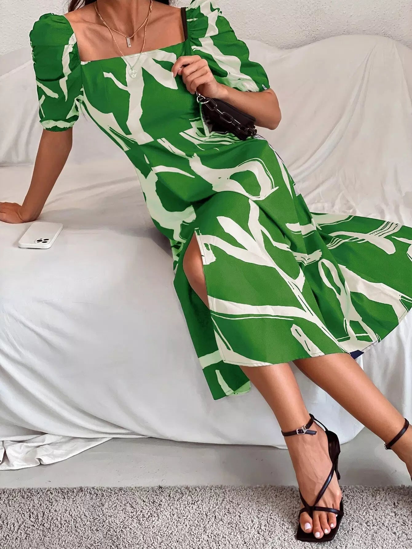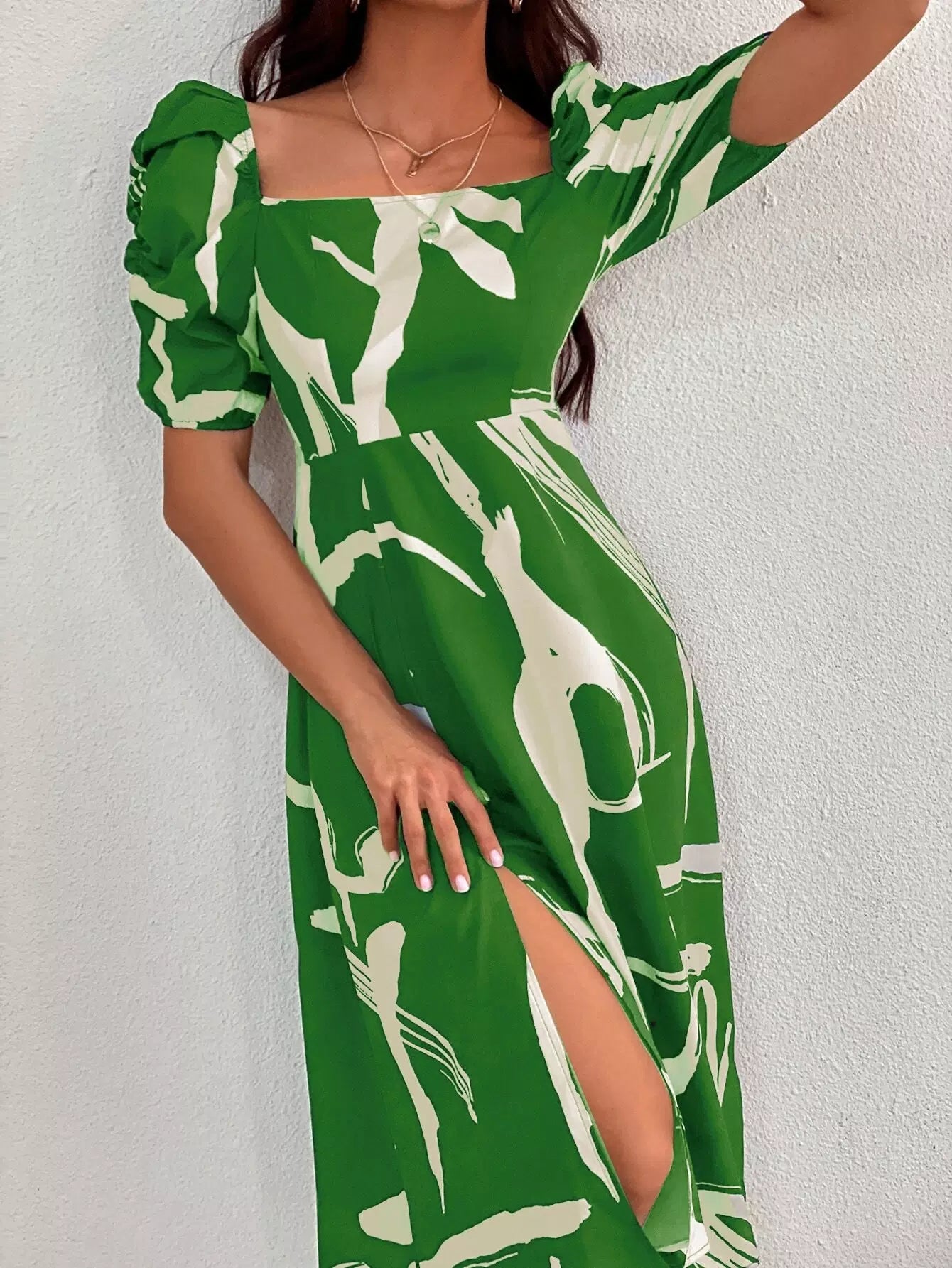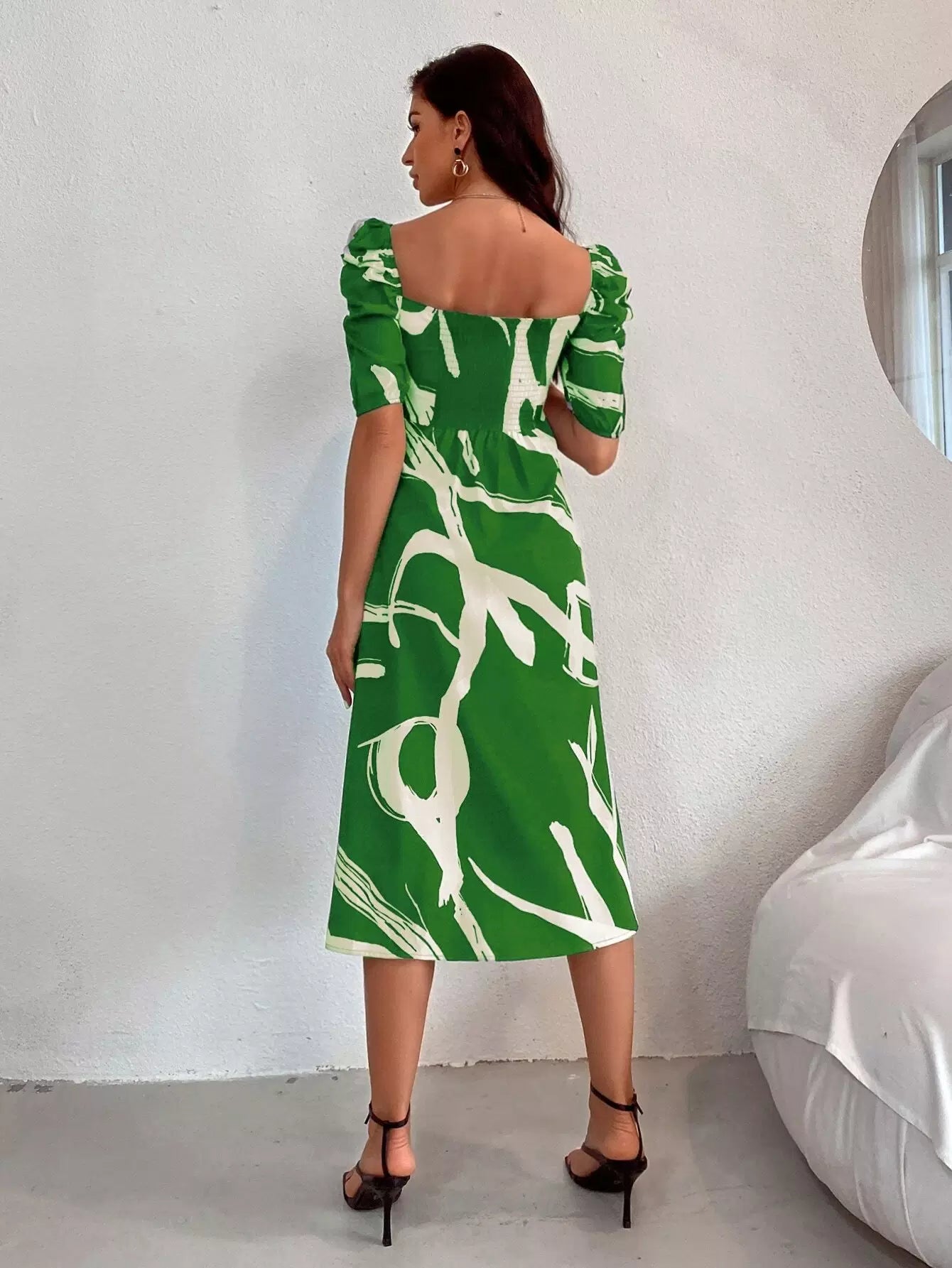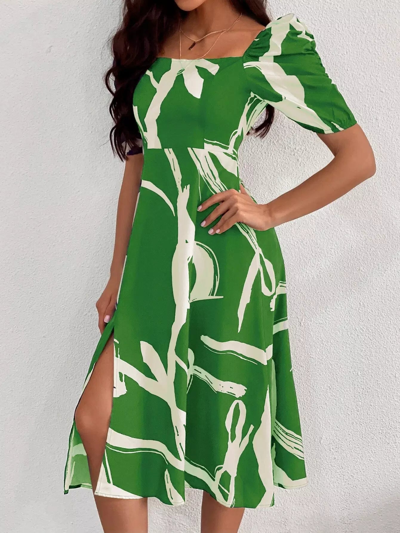 Graphic Print Split Thigh Milkmaid Dress