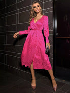 Leopard Jacquard Lantern Sleeve Wrap Knot Front Dress Without a Belt