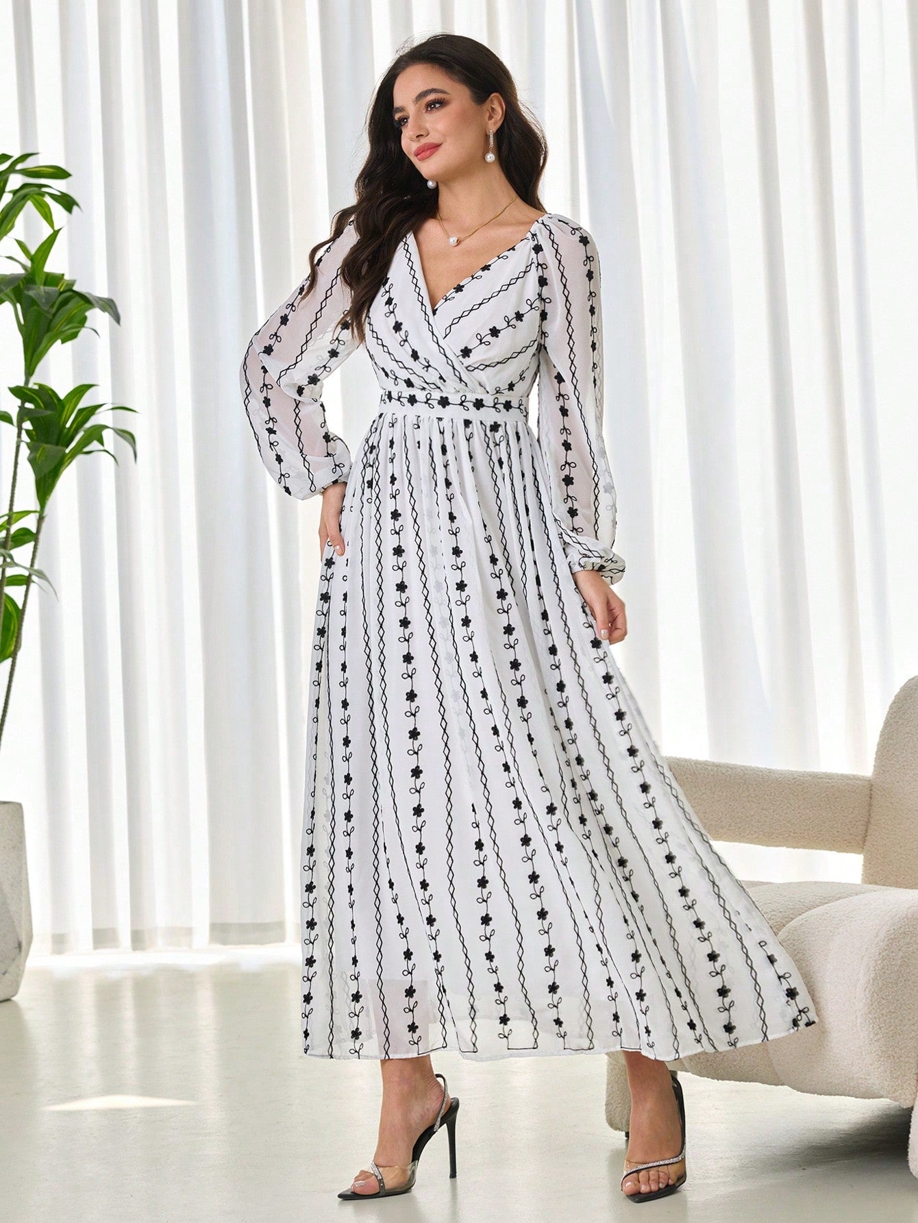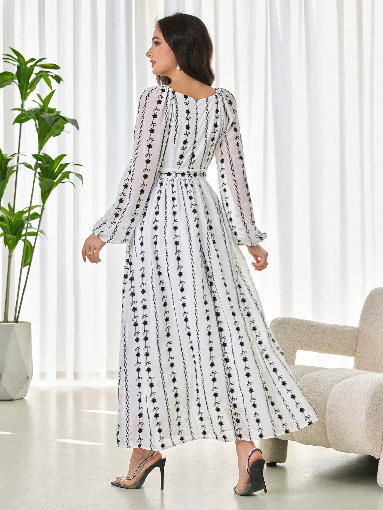 Modelyn Conservative Style Heavy Embroidery Long Dress For Women