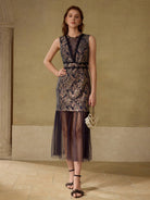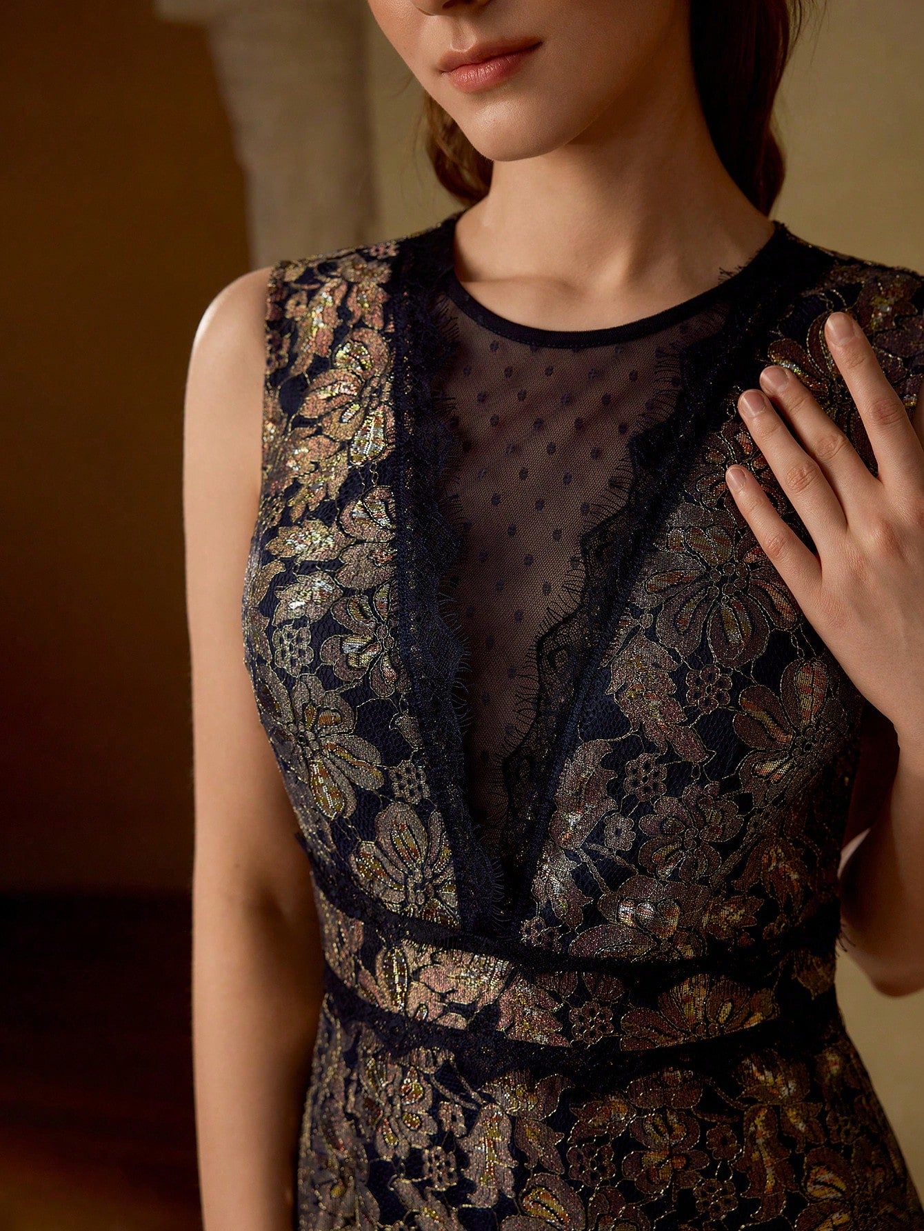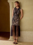 women MOTF PREMIUM CONTRAST LACE SHEER HEM FITTED ROUND NECK FASHION DRESS FOR WOMEN