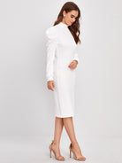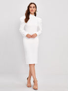 Lettuce Edge Mock-neck Gigot Sleeve Pencil Dress