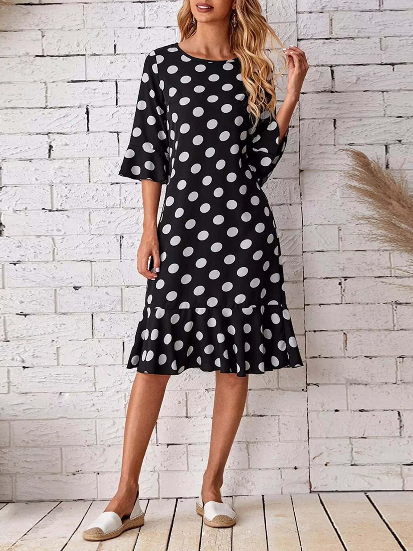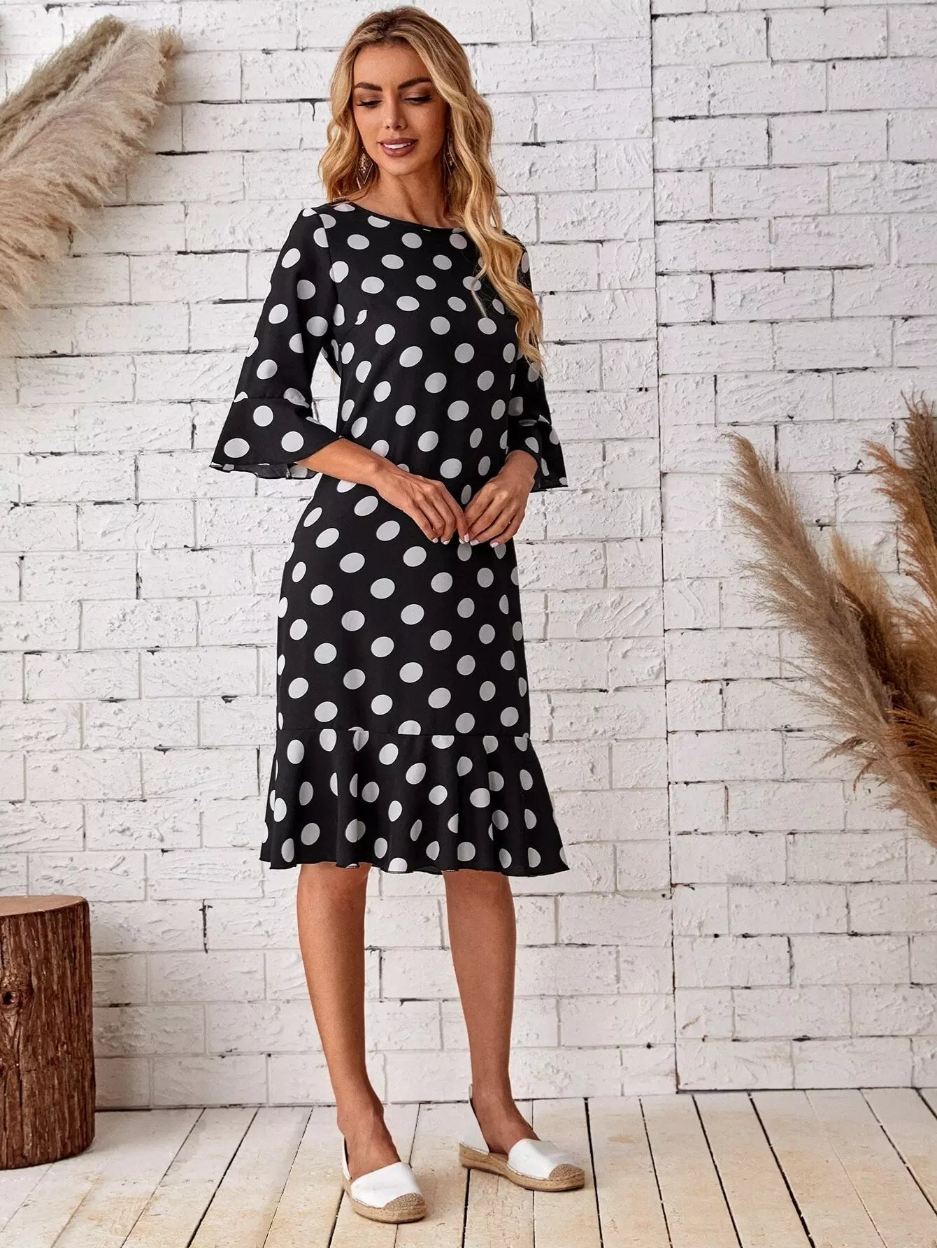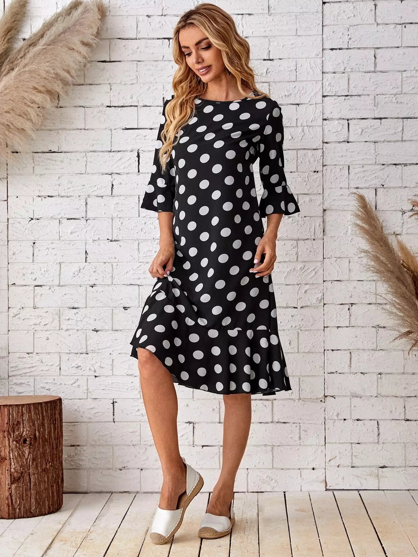 Polka Dot Flounce Sleeve Babydoll Dress