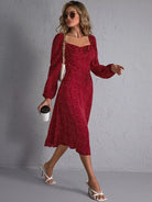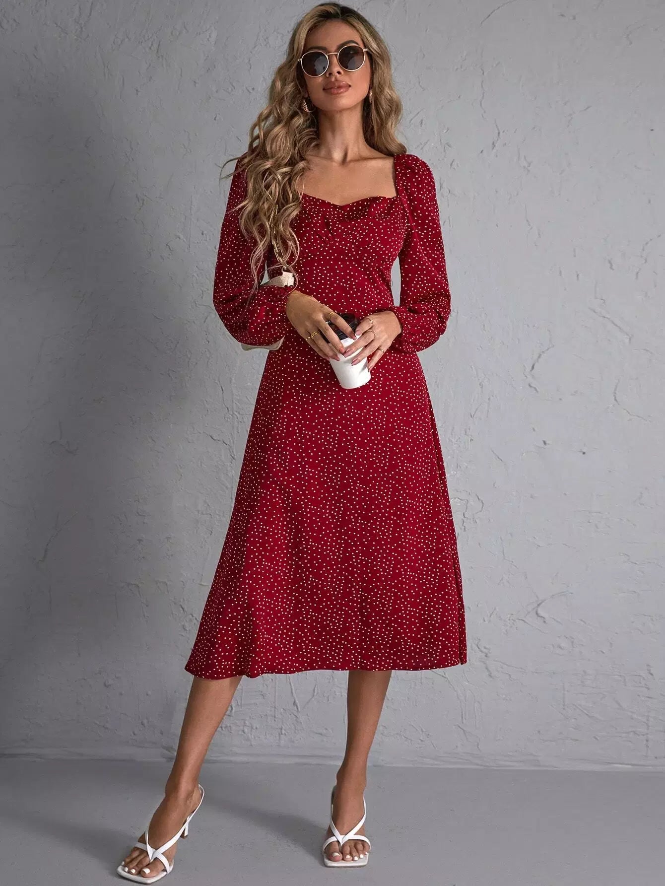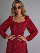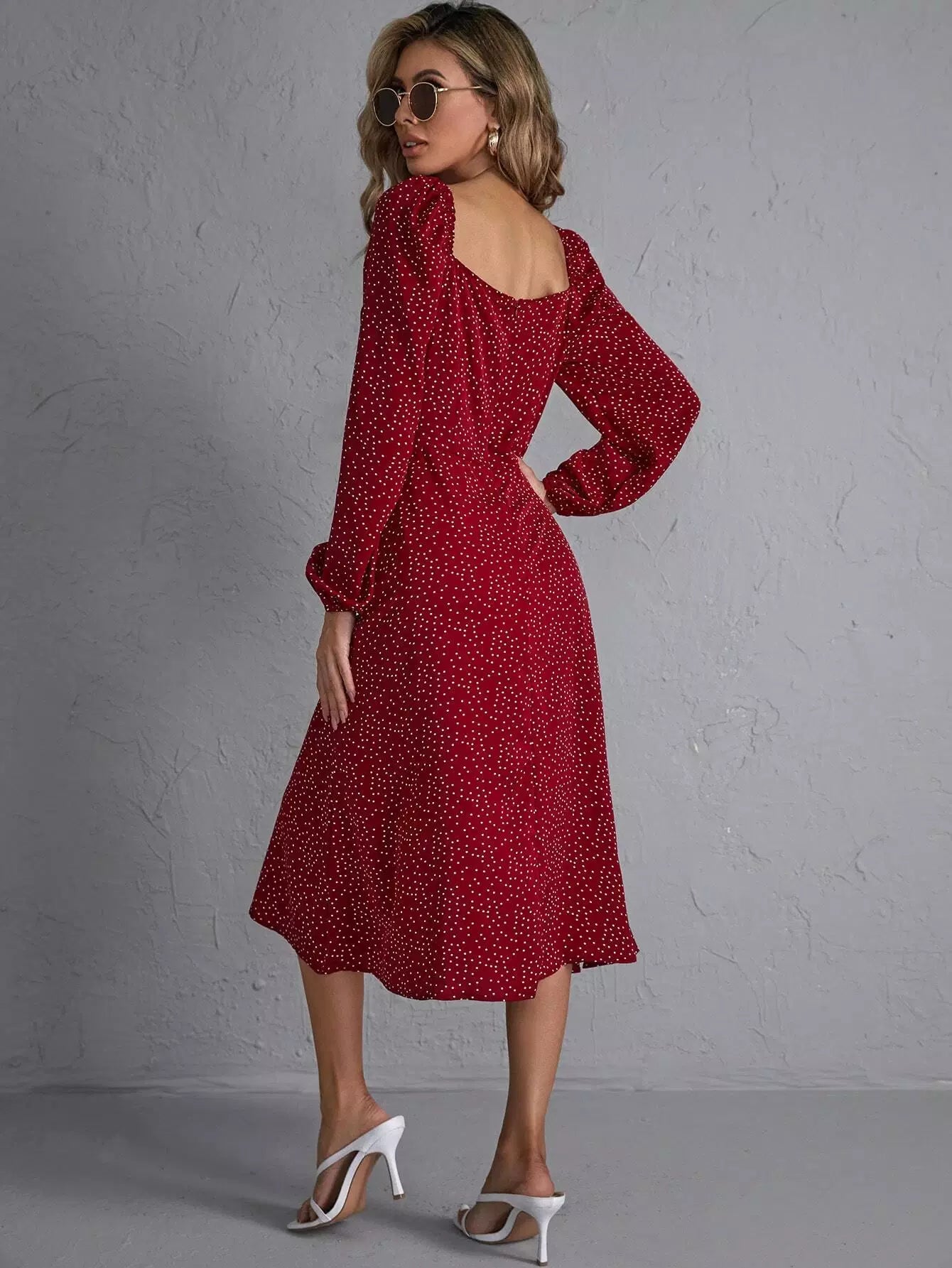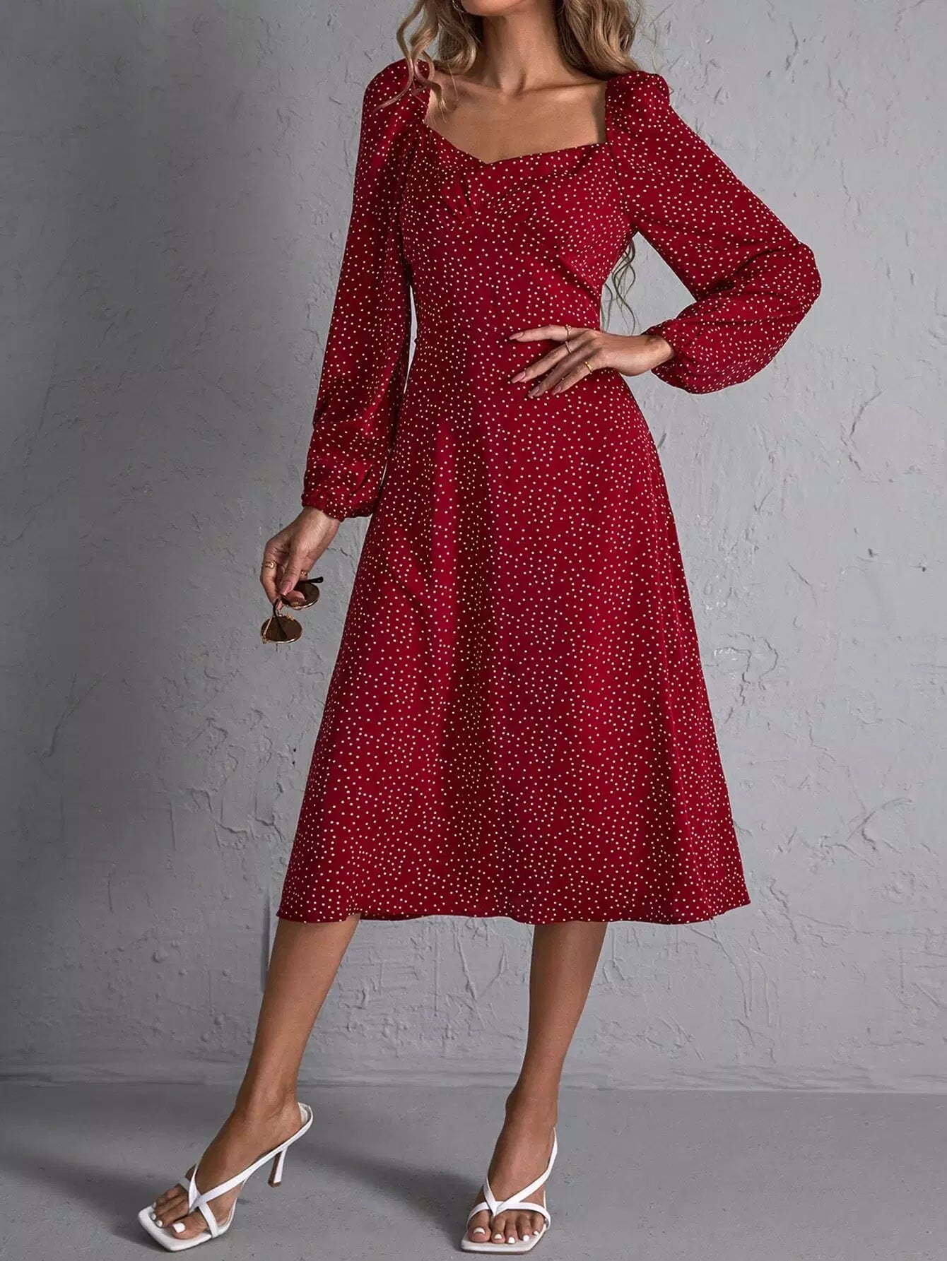 Polka Dot Sweetheart Neck Lantern Sleeve Dress