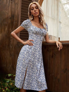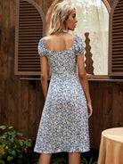 Women - Puff Sleeve Ruched Bust Ditsy Floral Milkmaid Dress